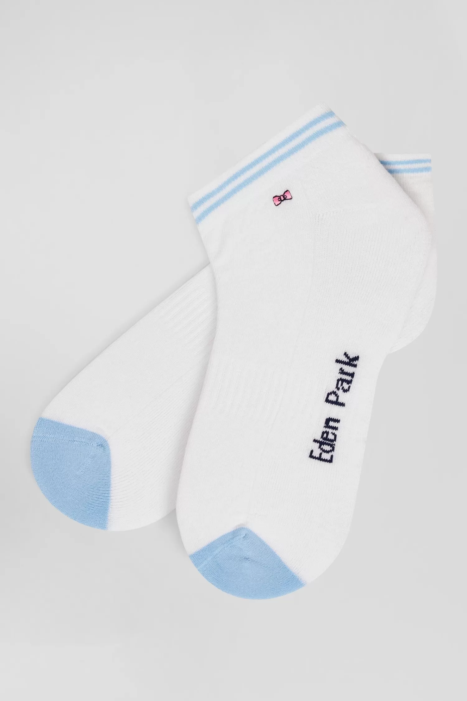 These low-cut socks stand out with their bow tie logo embroidery and striped finishes highlighted by the color tip. Offered in several colors, these mixed cotton socks complement all outfits.