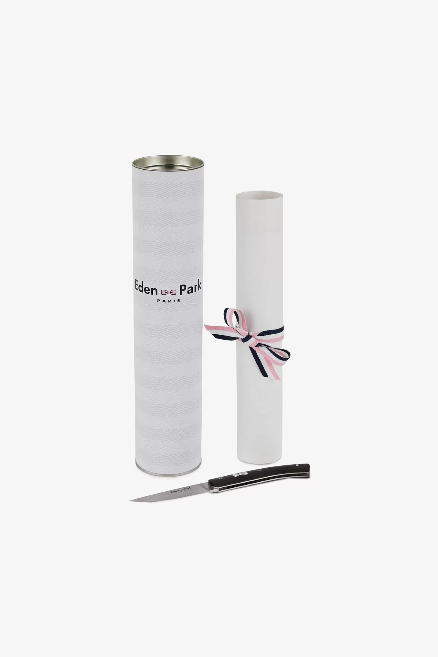 stainless steelStainless steel bladesEden Park printed on bladesSilver bow tie logo embossed on ha…
