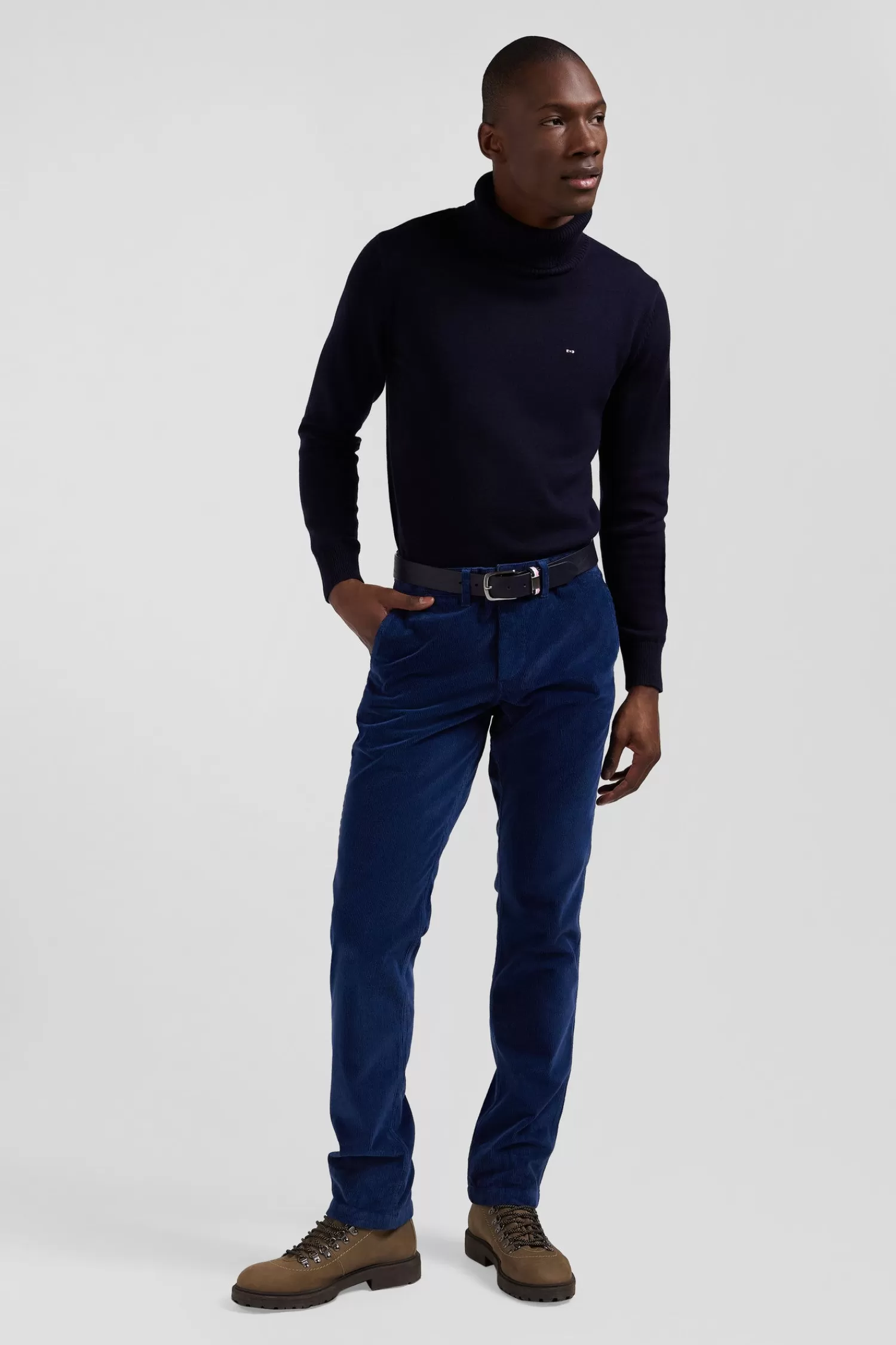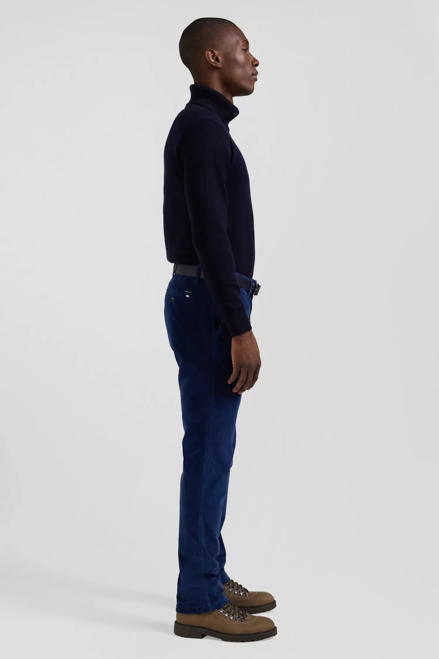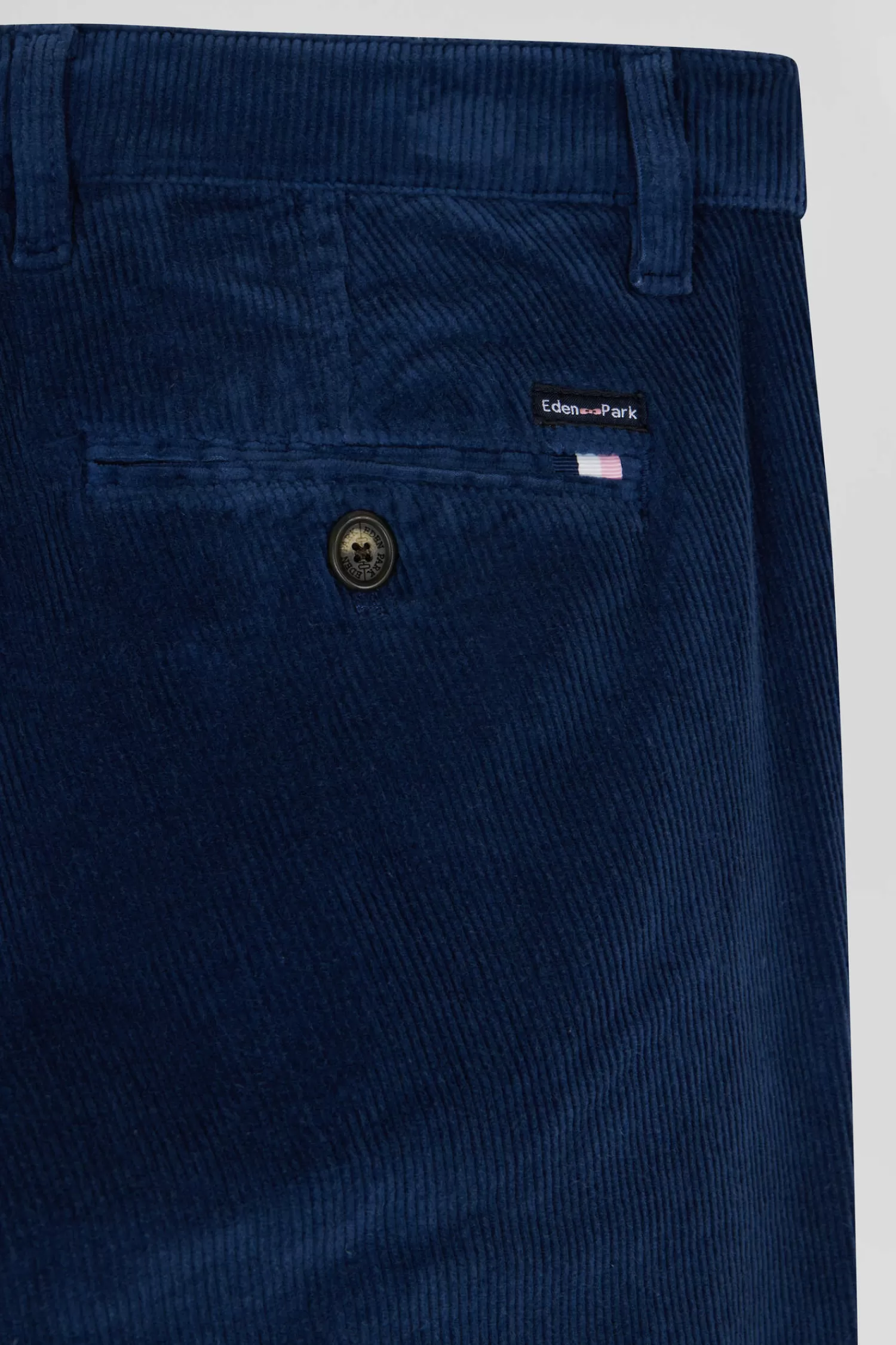 Eden Park Regular blue stretch cotton velvet chino trousers< Pants