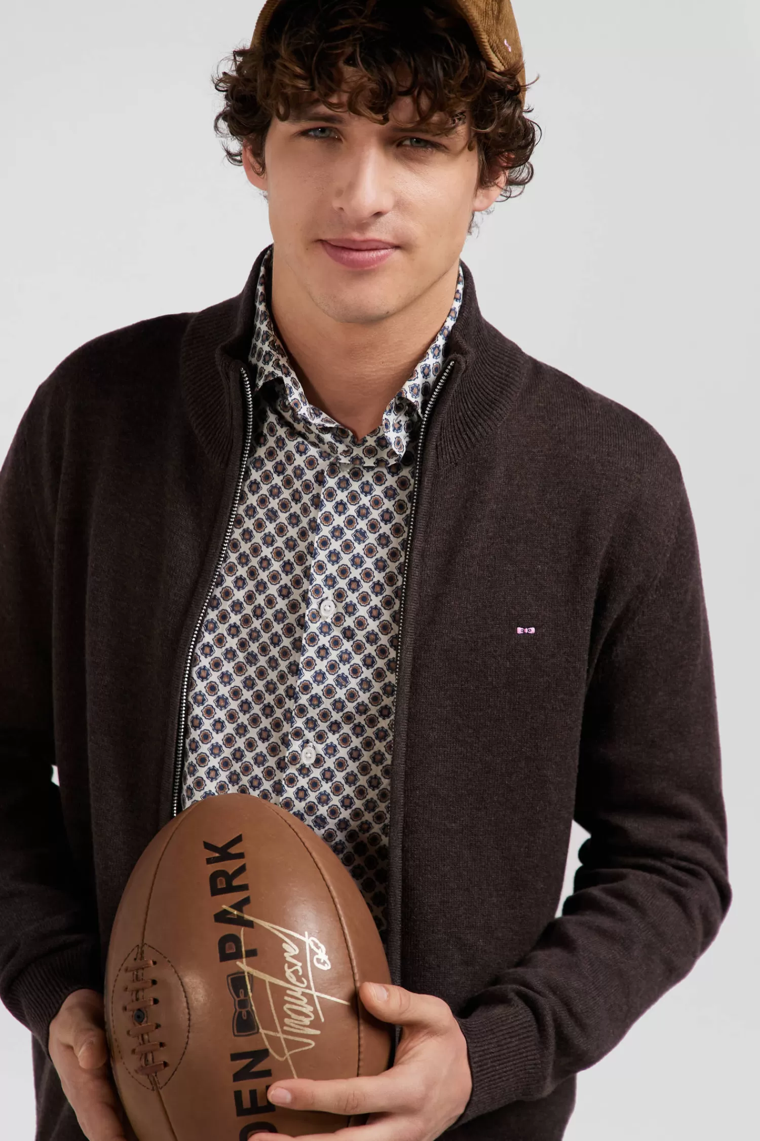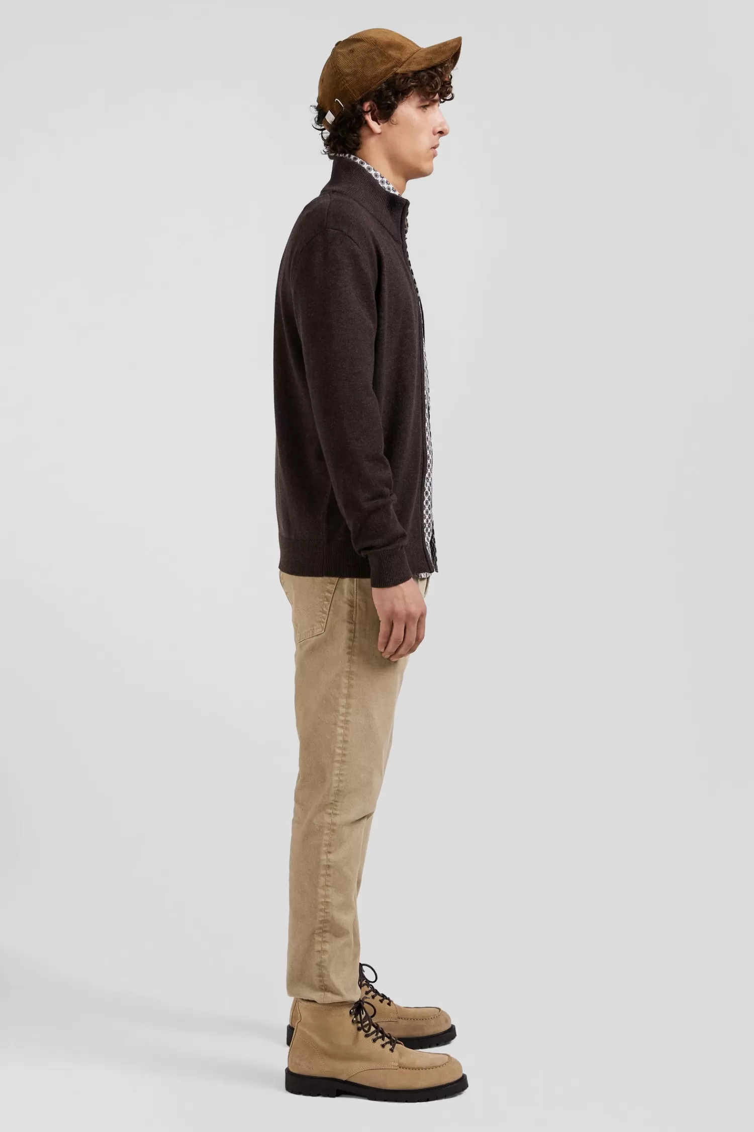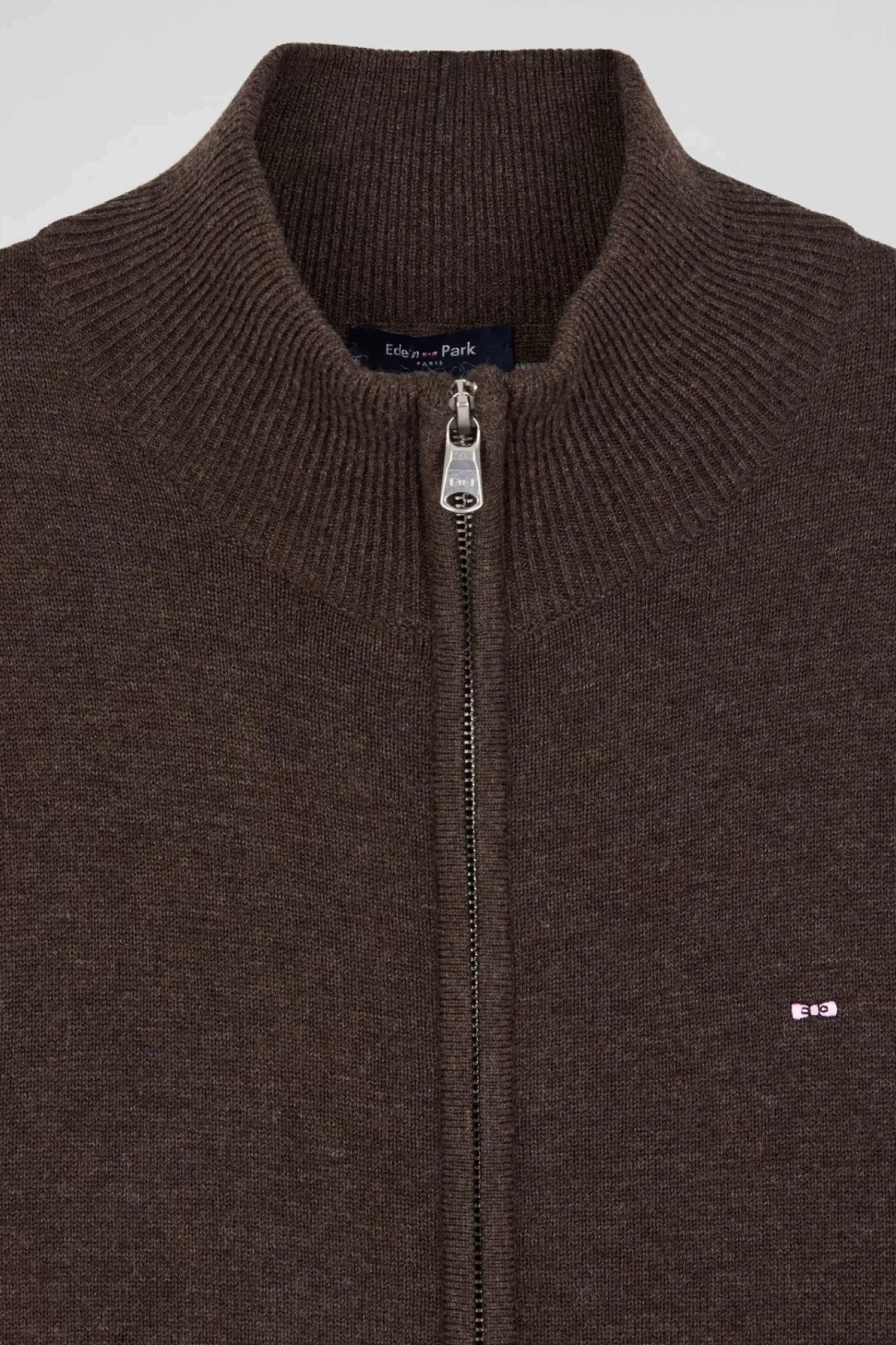 Eden Park Regular brown plain wool and cotton zipped cardigan< Cardigans
