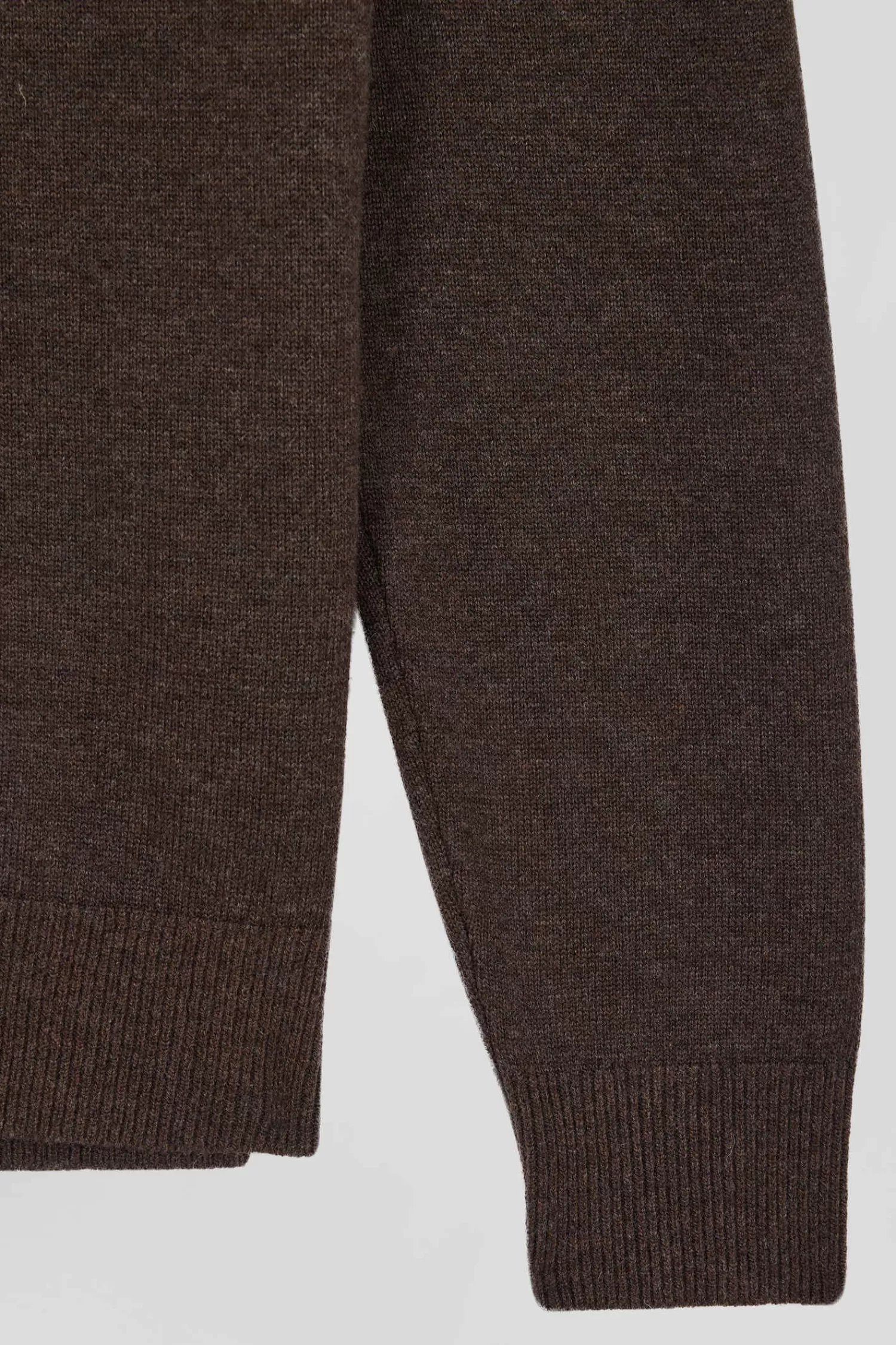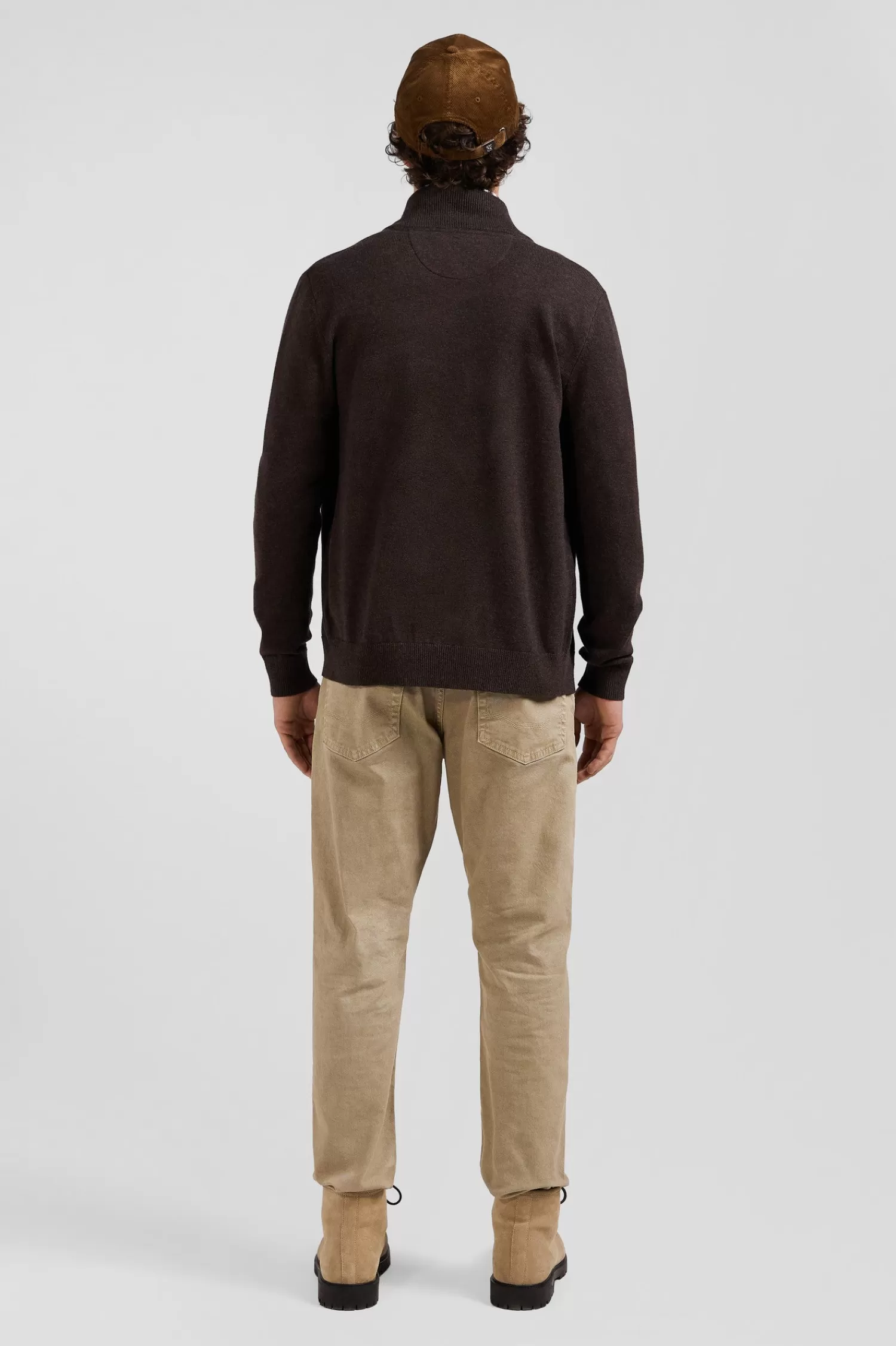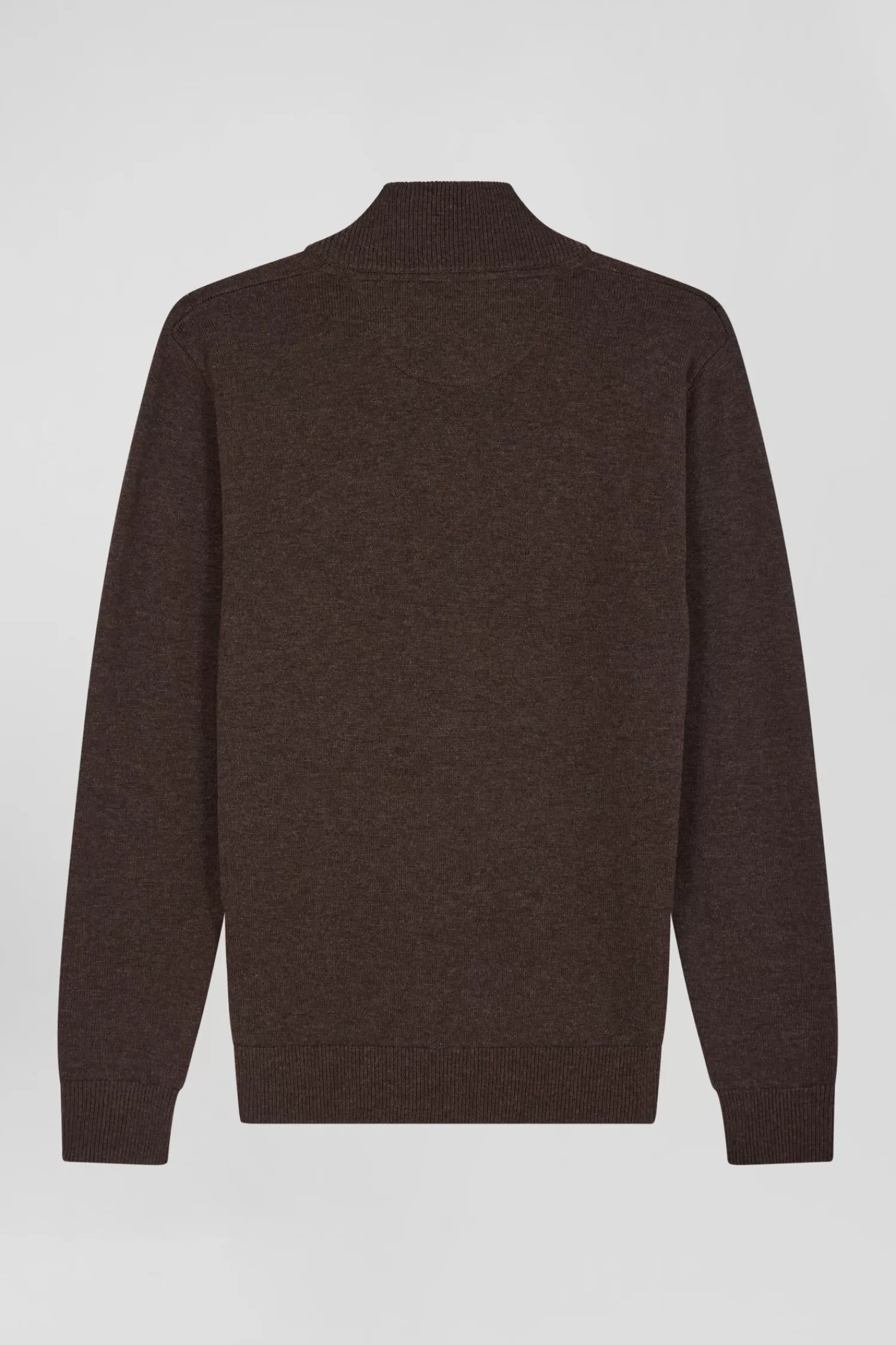 Eden Park Regular brown plain wool and cotton zipped cardigan< Cardigans
