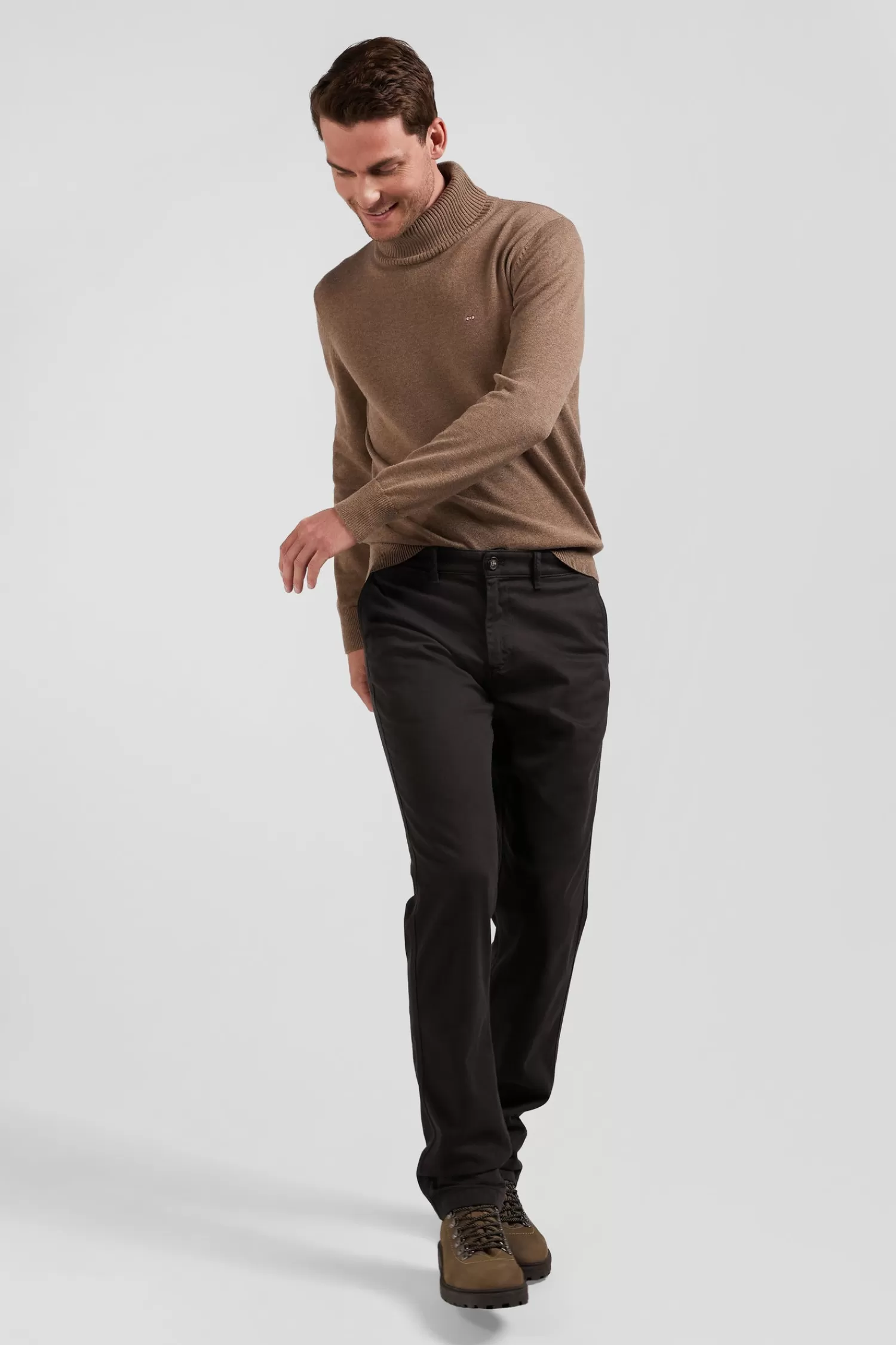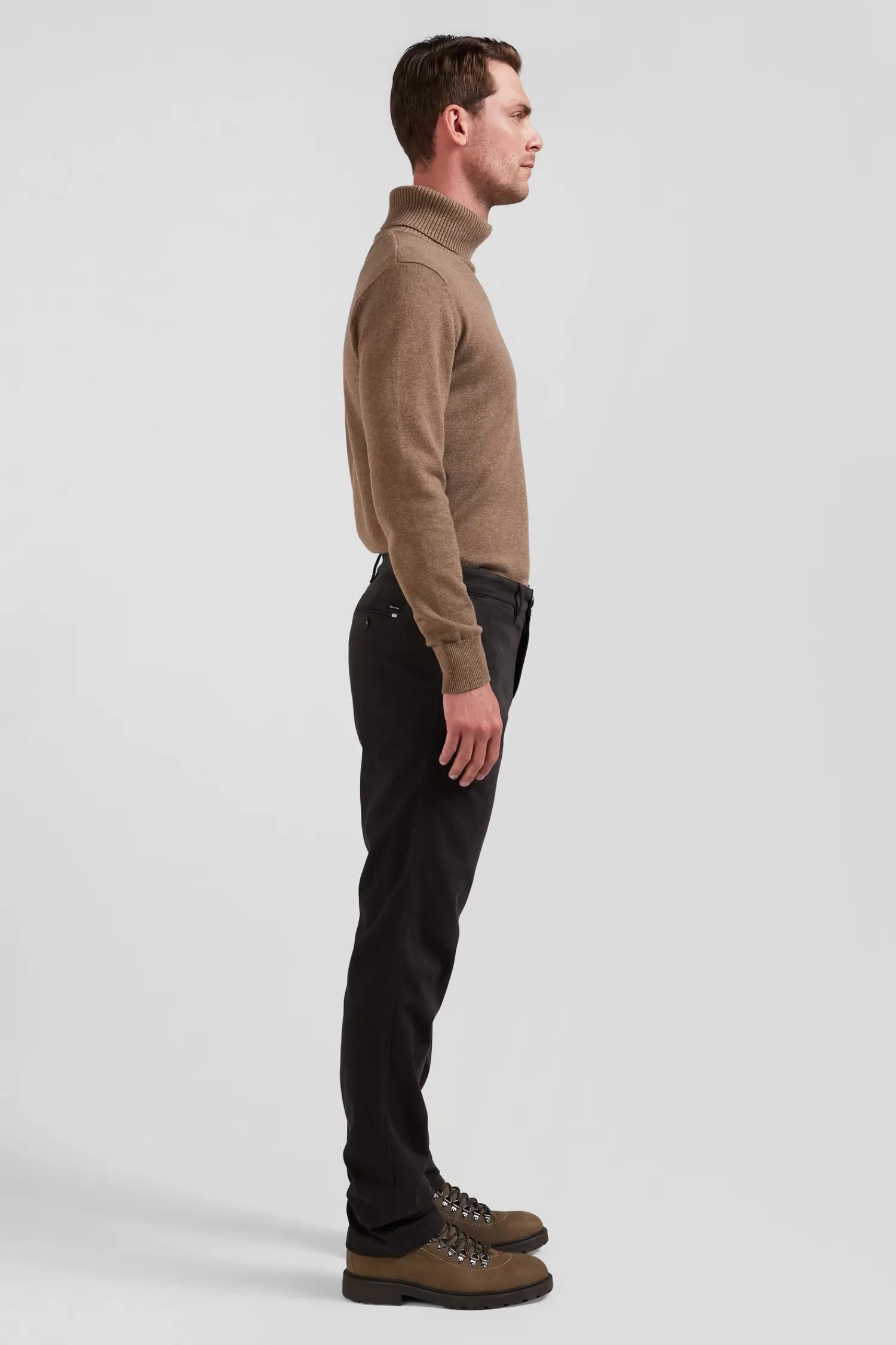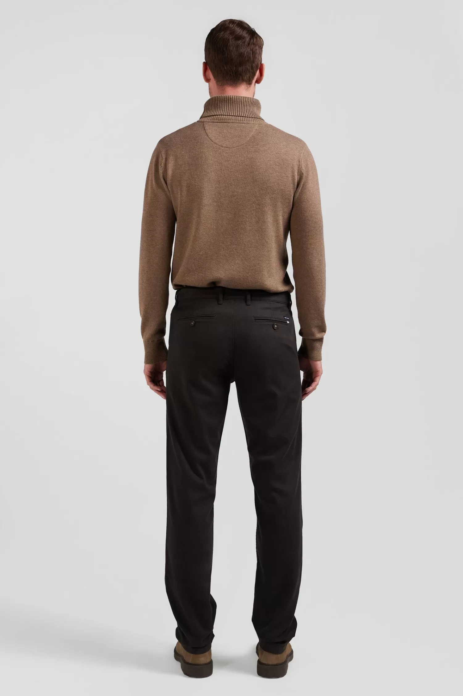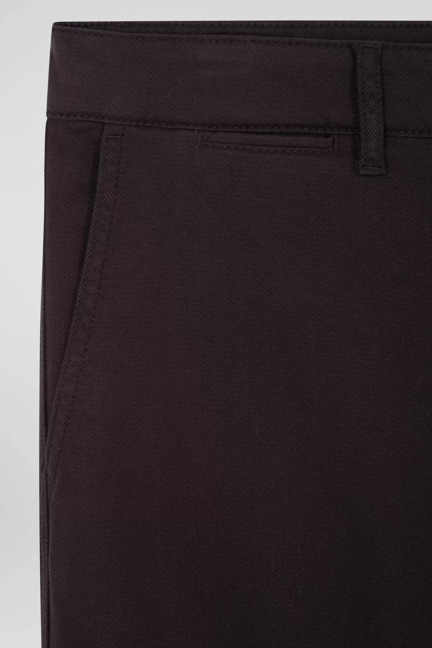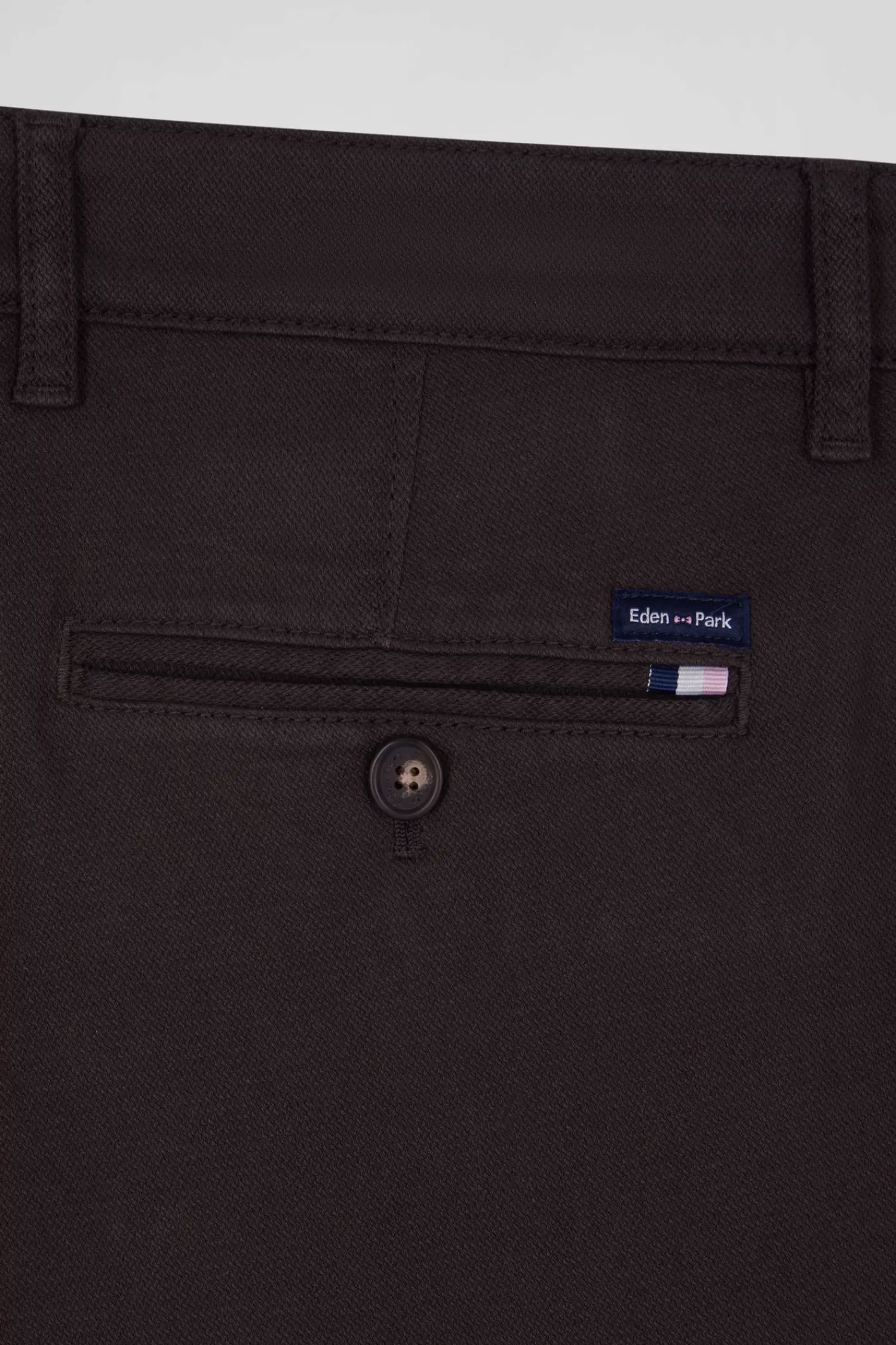 Easy to match with all your fall-winter outfits, our pleat-free chinos in cotton and modal stretch piqué offer comfort and elegance. Available in a wide palette of colors, these trousers in a regular straight cut are distinguished by refined details like the tricolor ribbon and Eden Park branding on the back pocket.