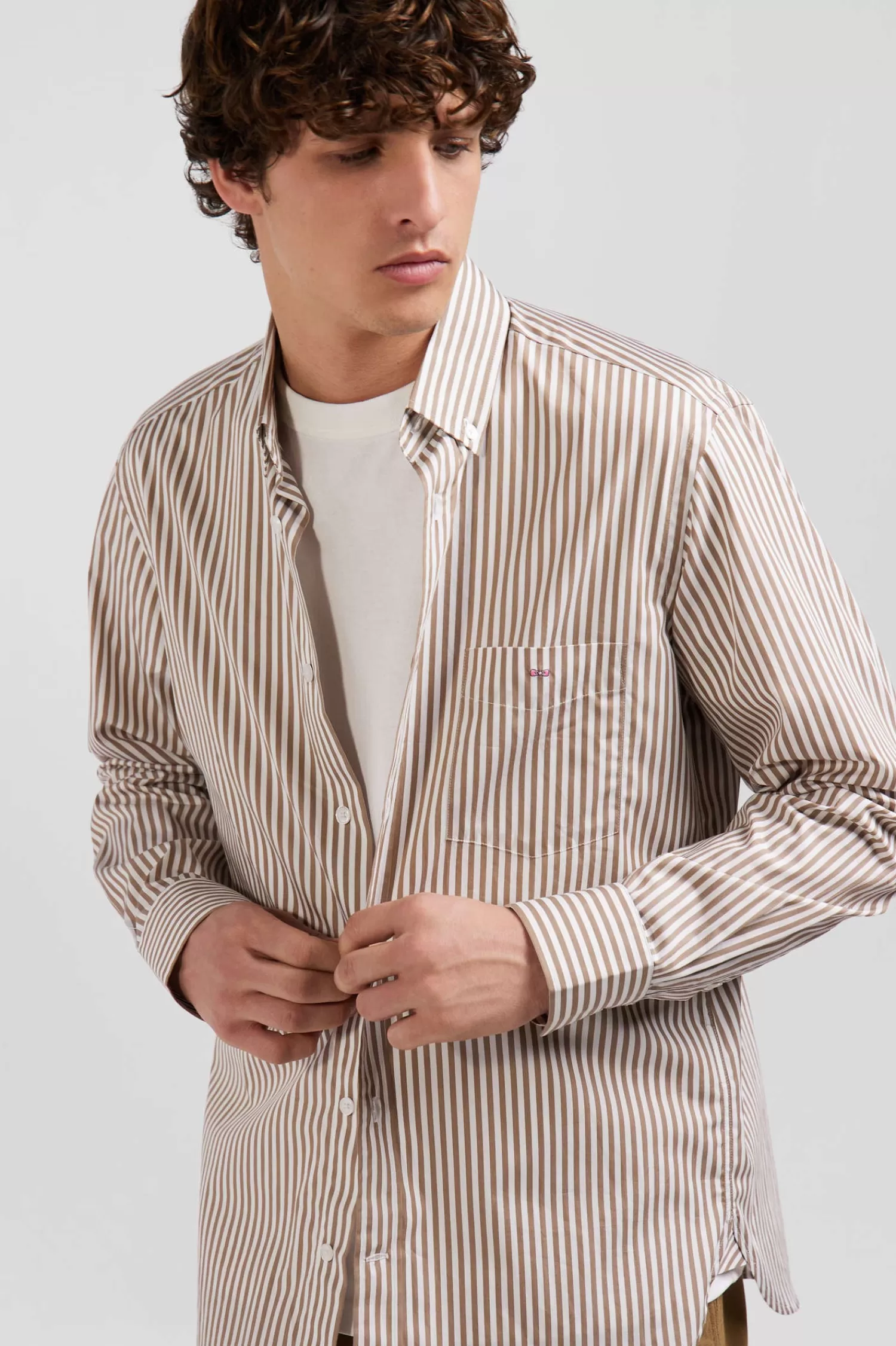 A staple of the men’s vestiaire, the striped cotton poplin shirt is essential. In addition to timeless blue or navy, our Maison offers this season a colorful interpretation, always distinguished by its Eden Park’s meticulous finishes.