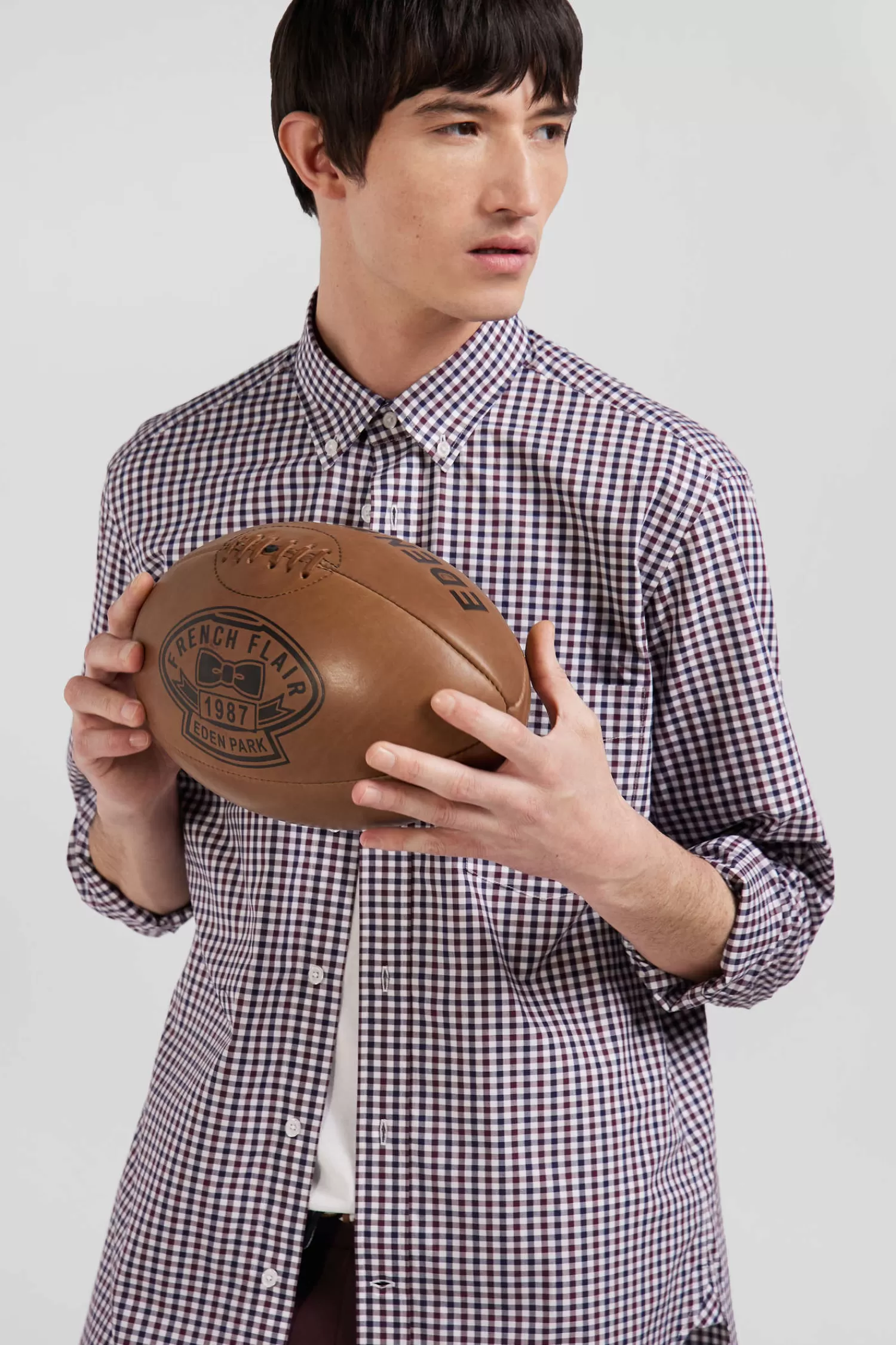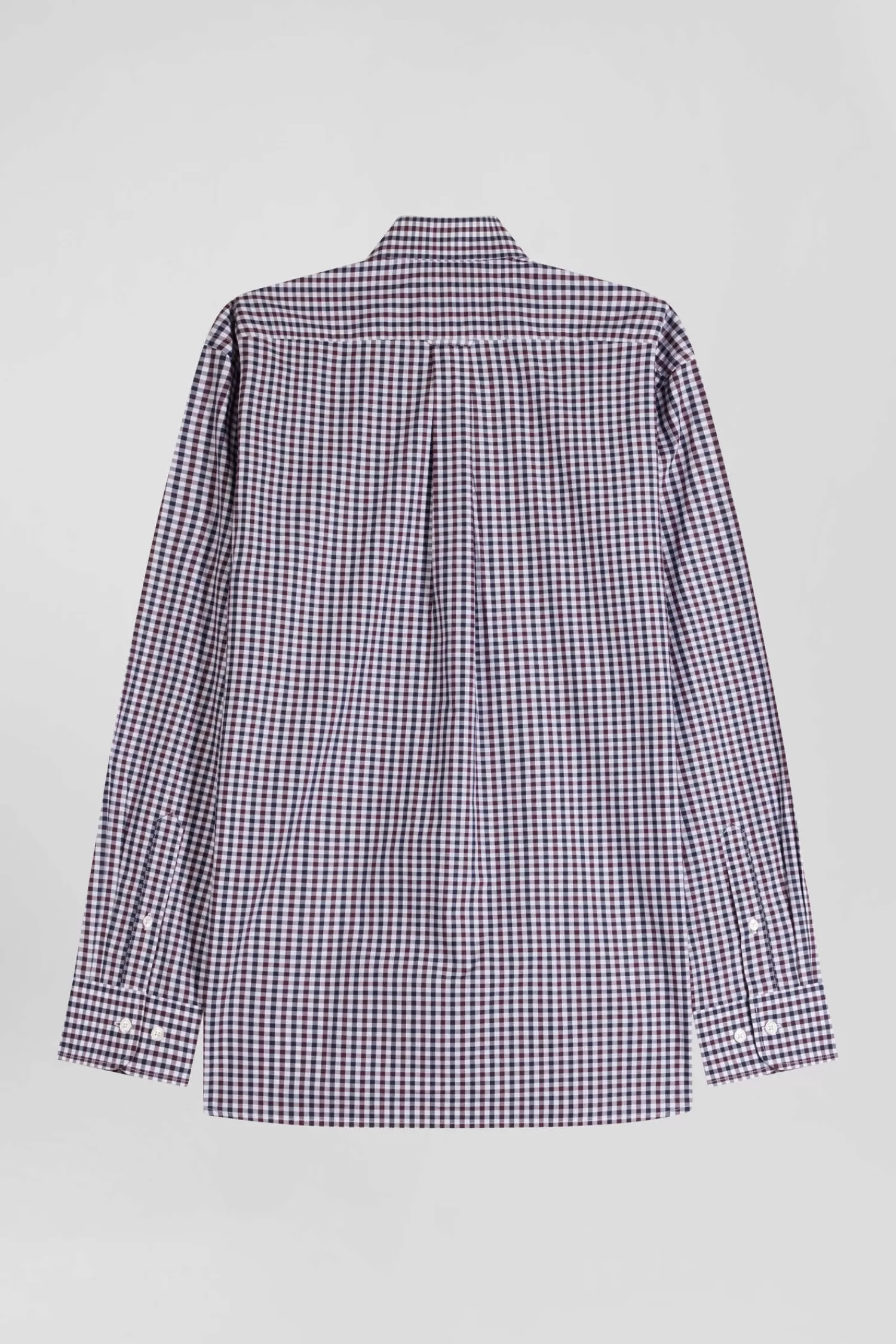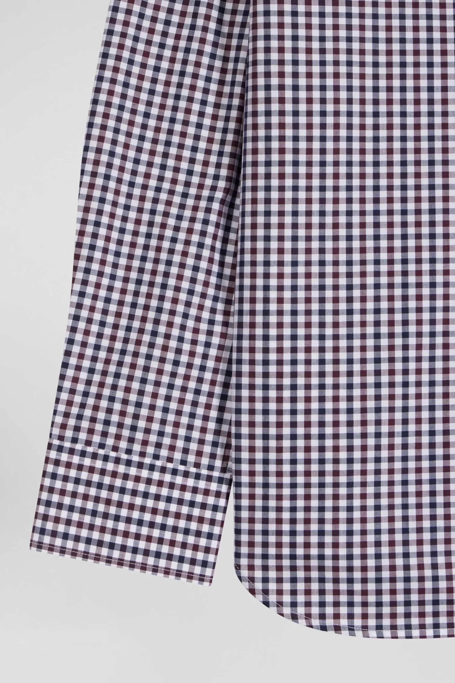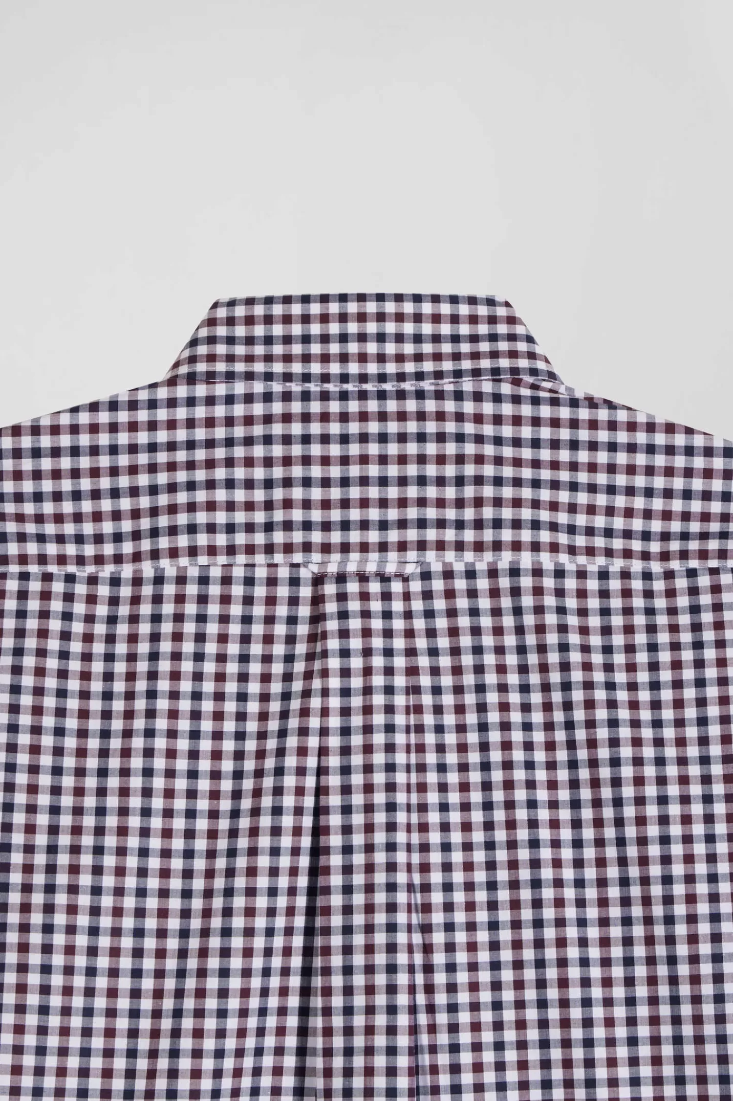 Our men’s shirt in soft cotton poplin is enhanced with bicolor checks. The straight Regular fit ensures optimal comfort while the structured chest pocket enhances its structure. This bicolor check shirt offers a perfect blend of relaxation and sophistication for a boldly distinctive look.