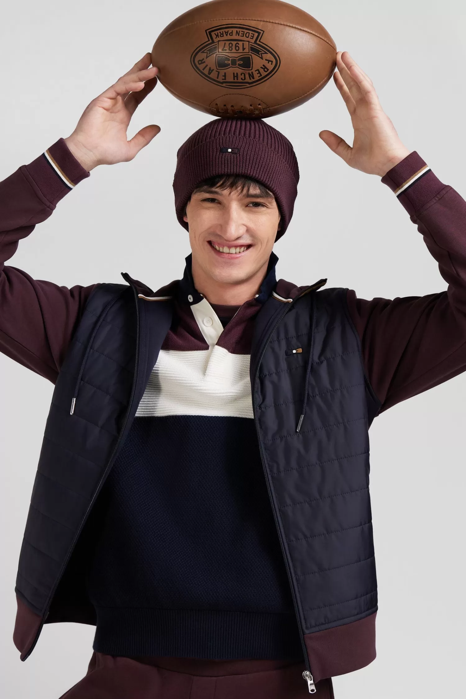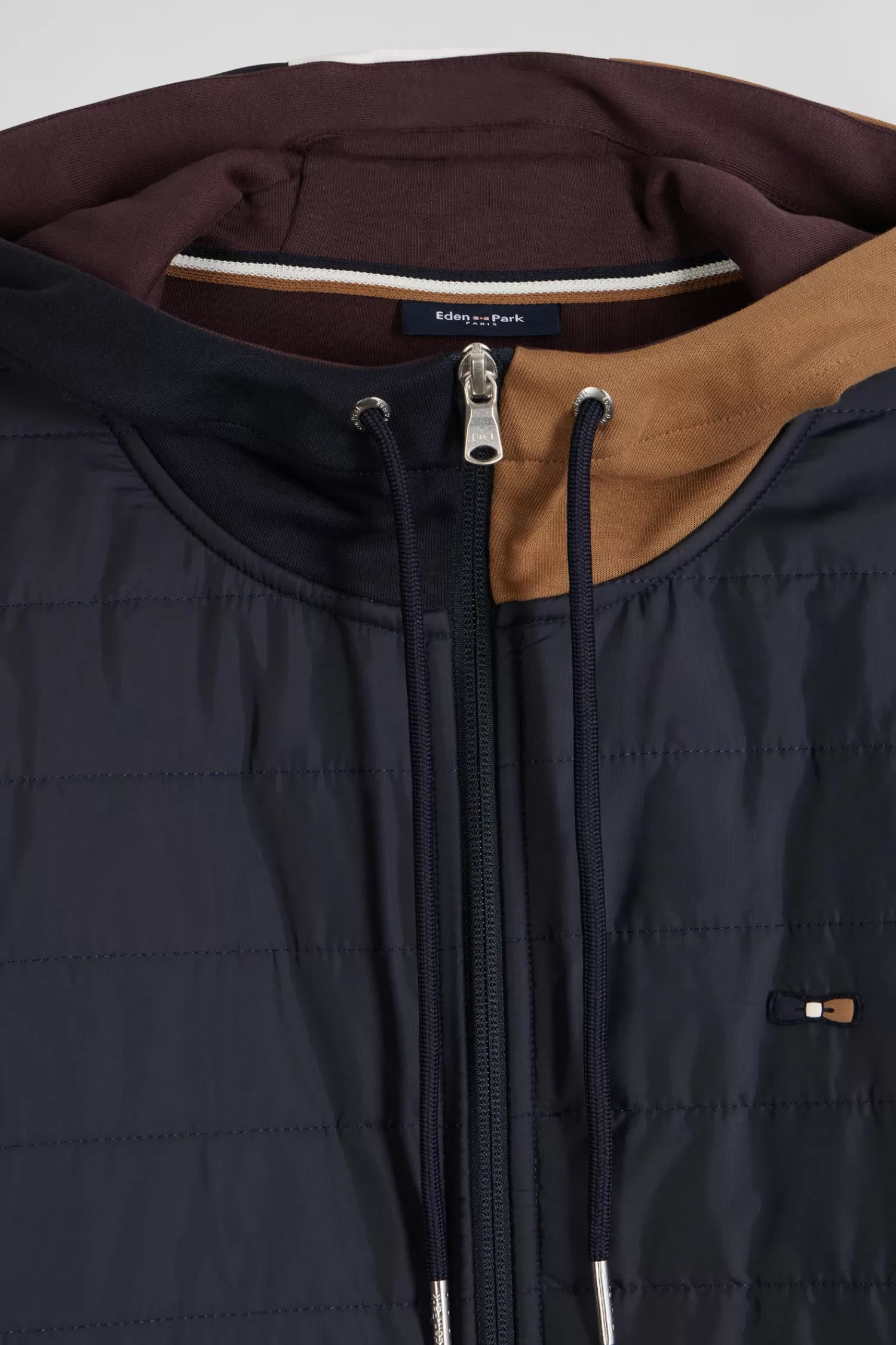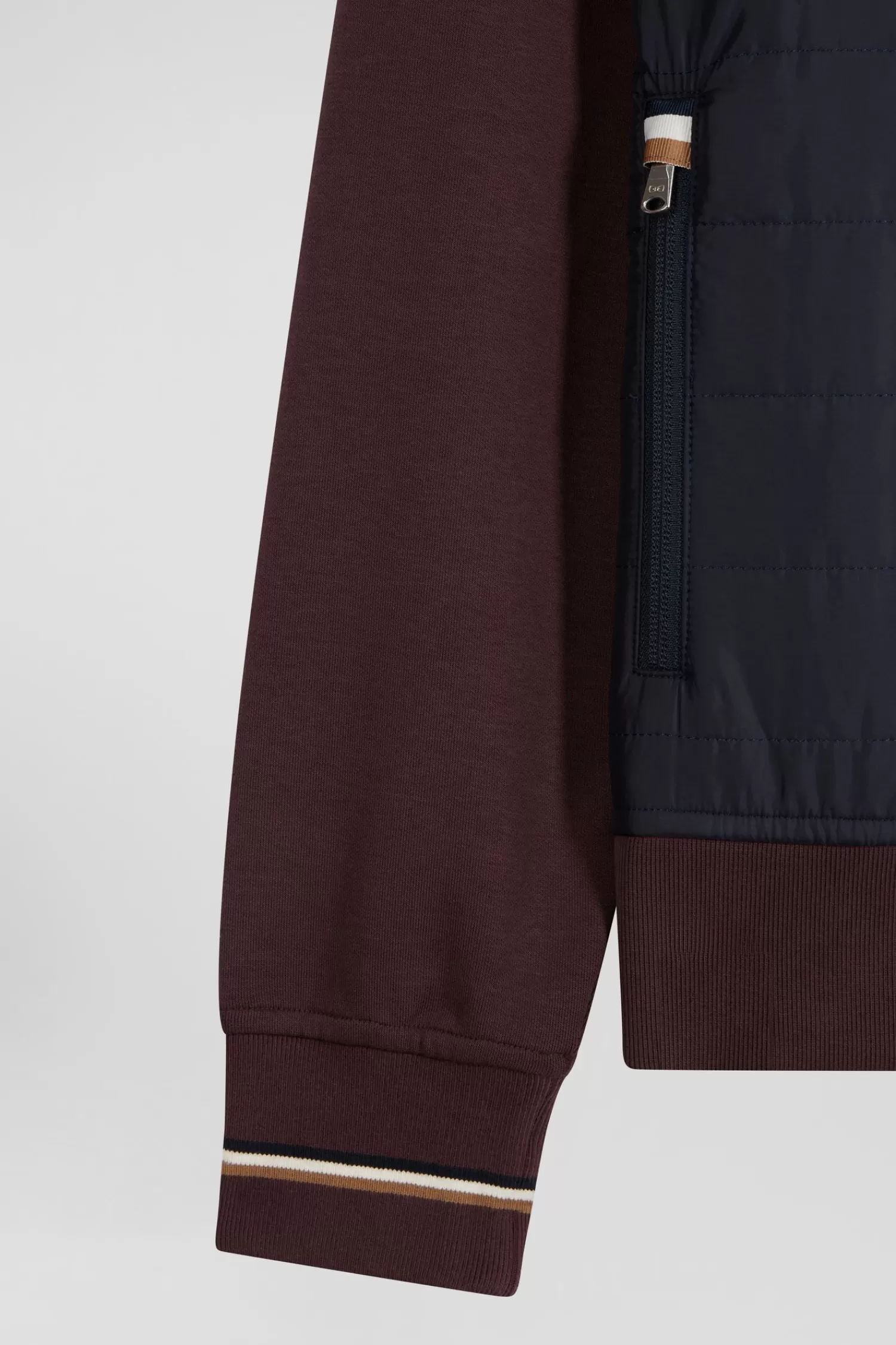 This zip-up bi-material sweatshirt, blending the warmth of fleece with the elegance of quilted padding, can be worn as both a sweatshirt and a mid-season jacket. Perfect for a sport-chic allure, its regular fit and contrasting colors offer a sophisticated finish.