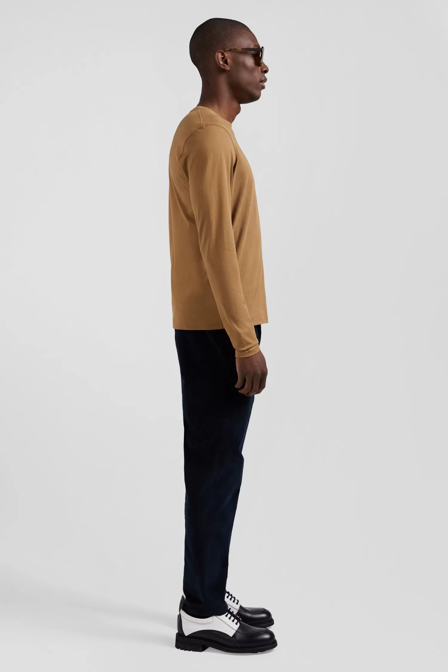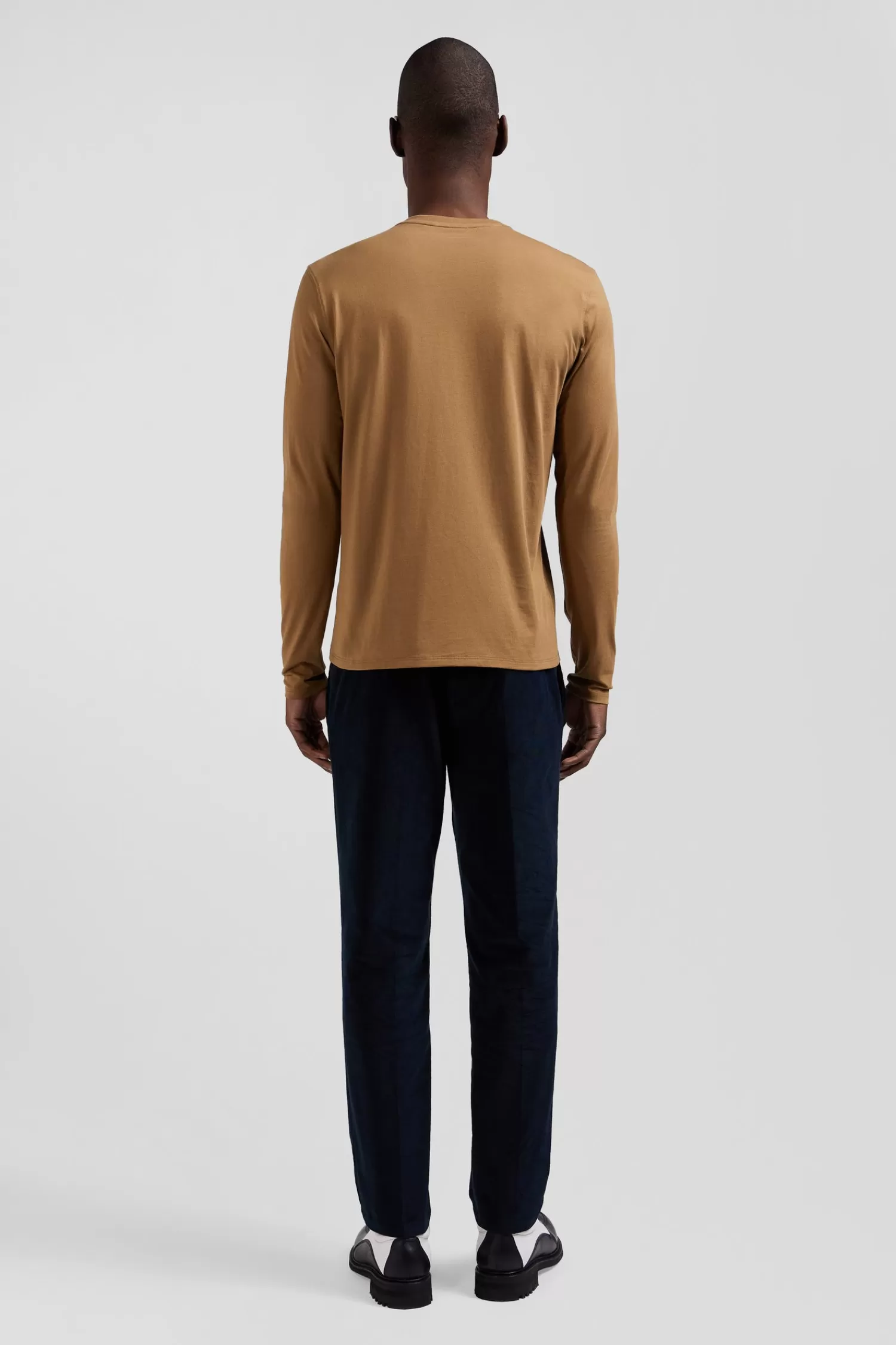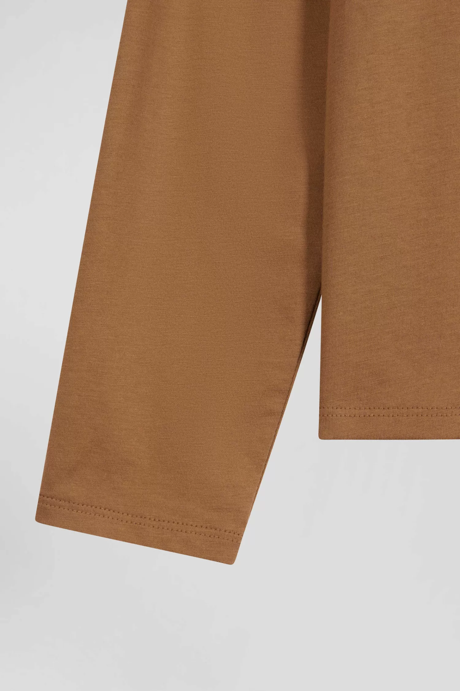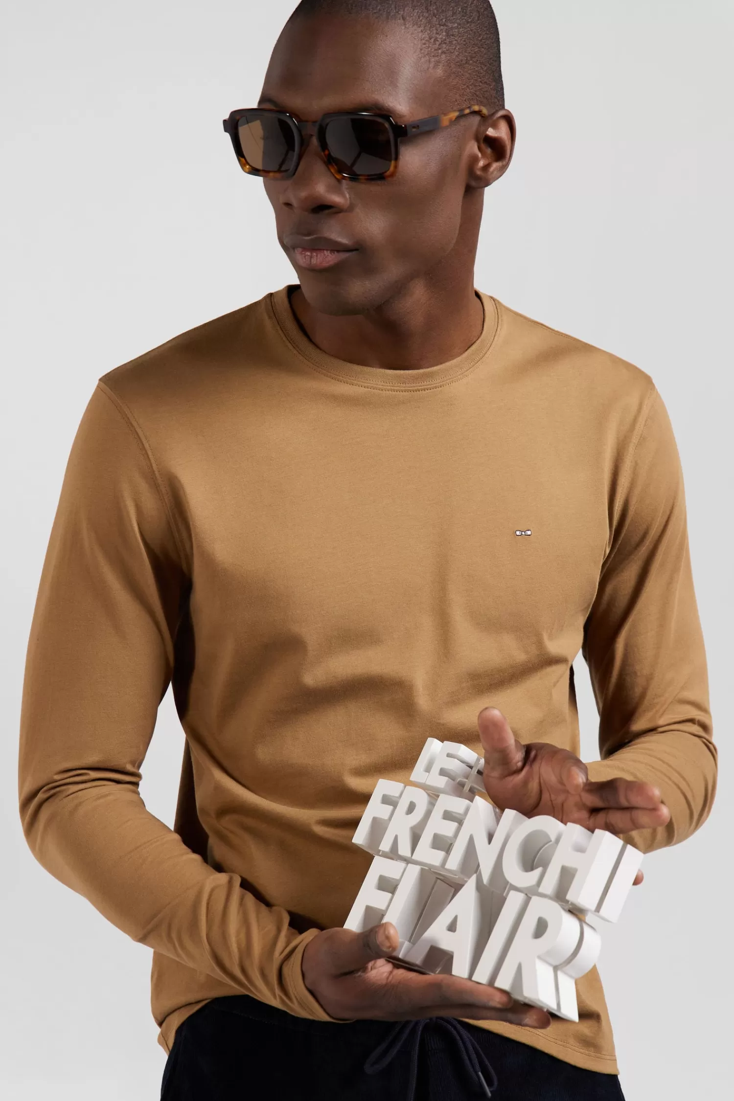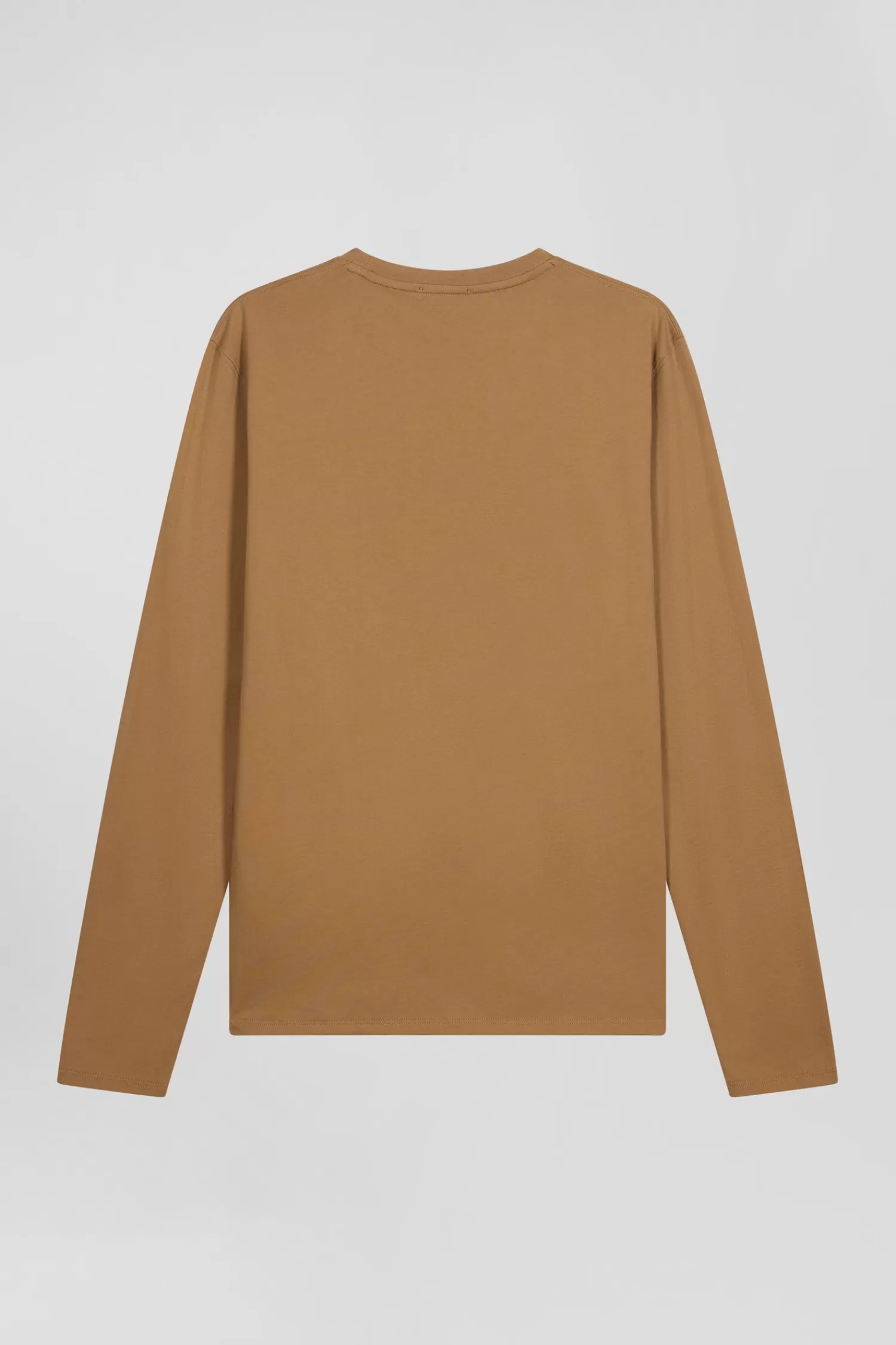 Eden Park Regular camel long-sleeved cotton T-shirt< T-shirts