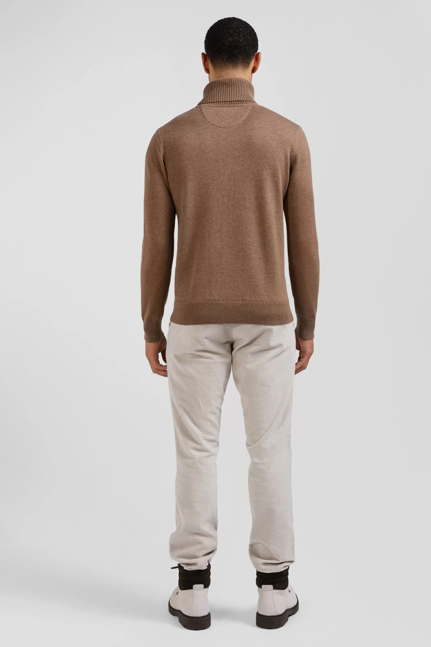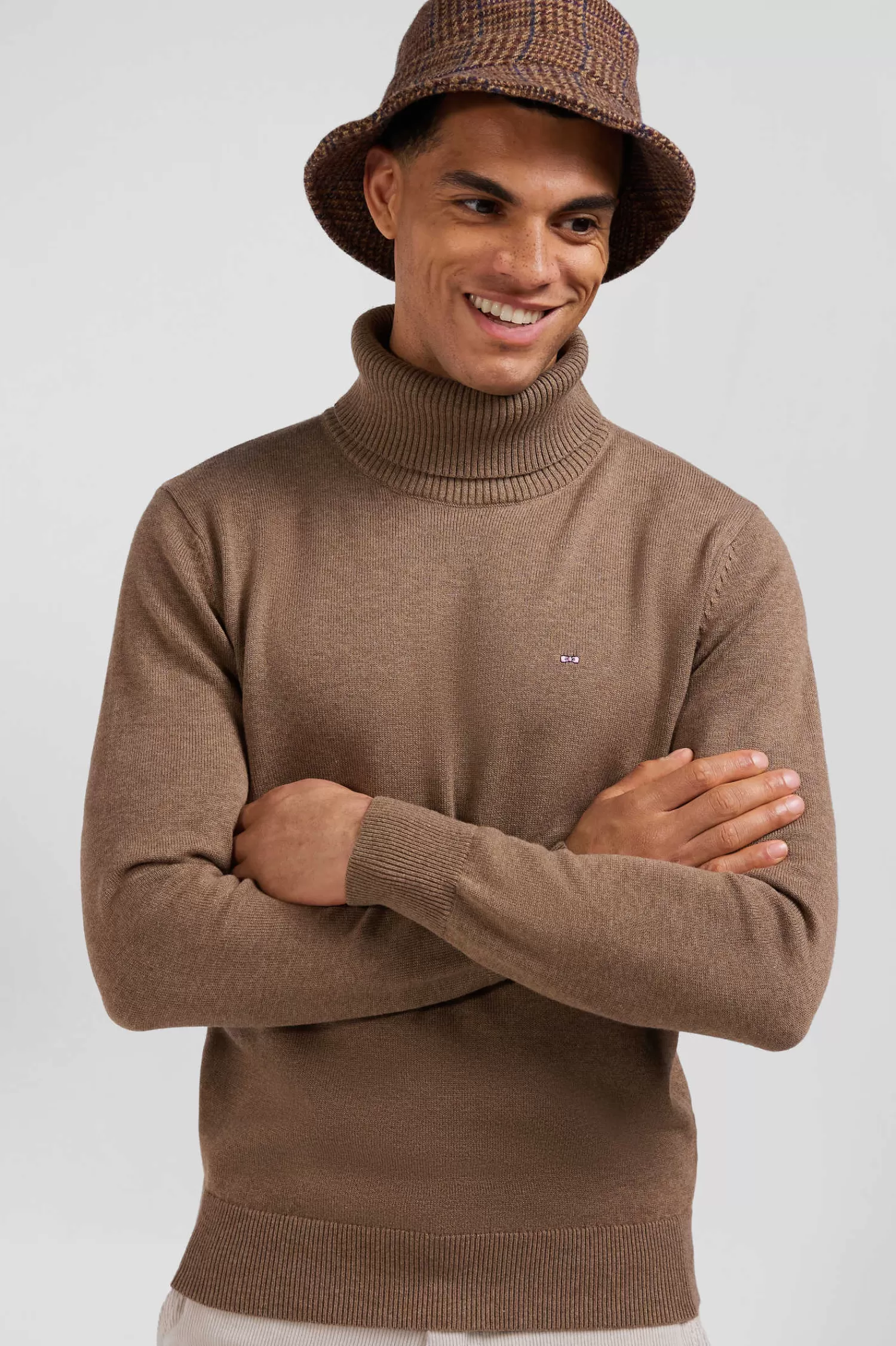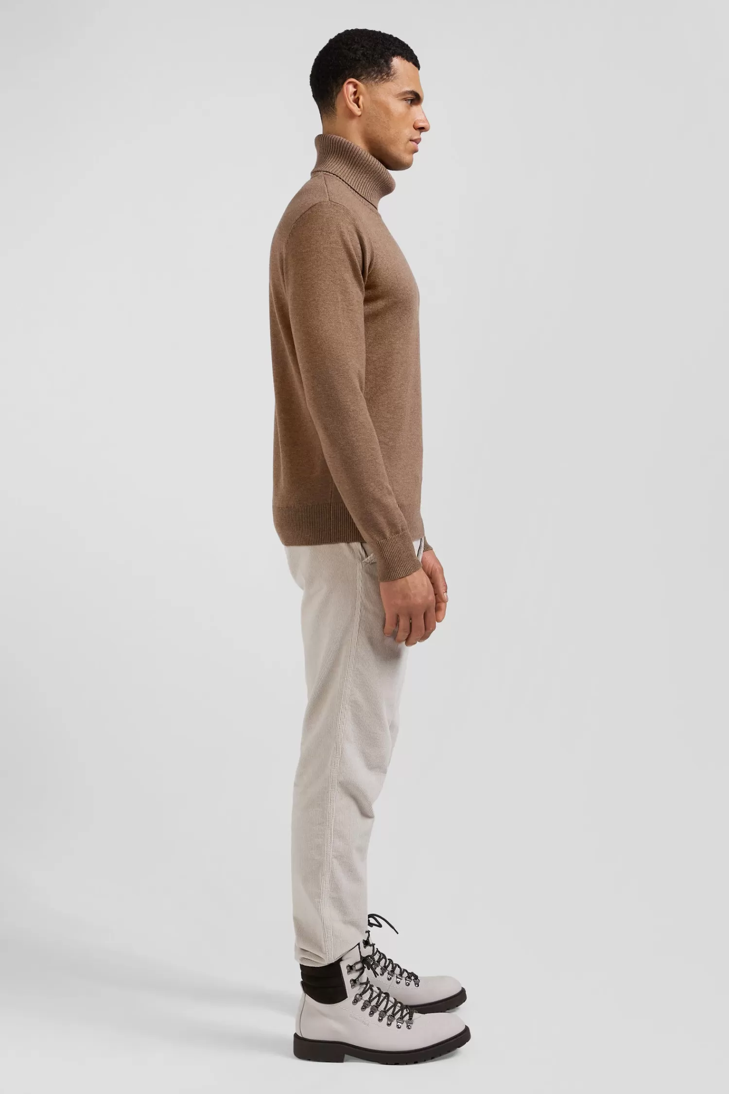 Warmth and style meet in this turtleneck jumper, an essential timeless piece for any wardrobe. Crafted from a noble blend of wool and cotton, it provides softness and comfort throughout the day. The subtle contrast of its striped inner half-moon adds a discreet and elegant signature to this turtleneck offered in a wide range of colors.