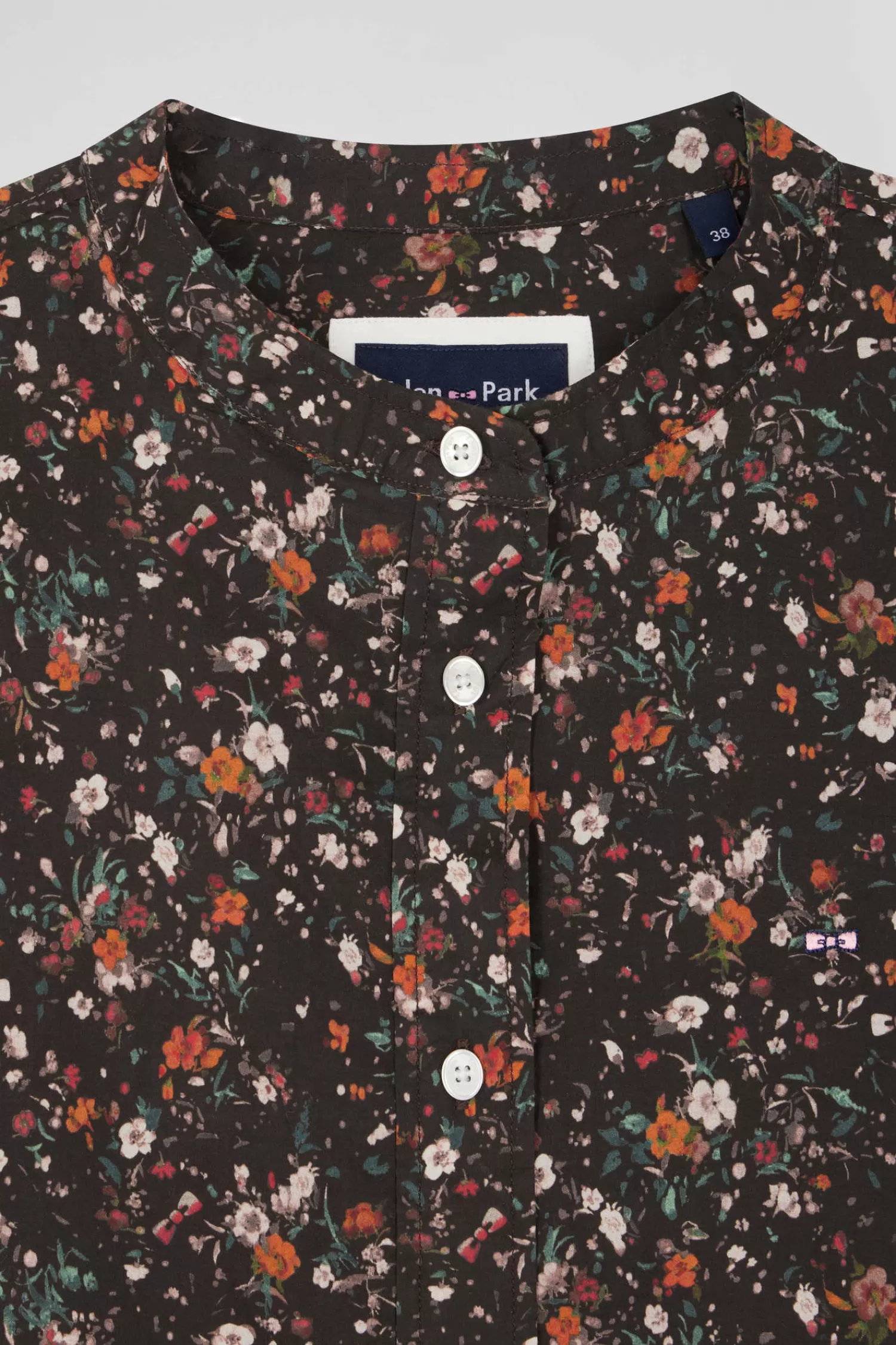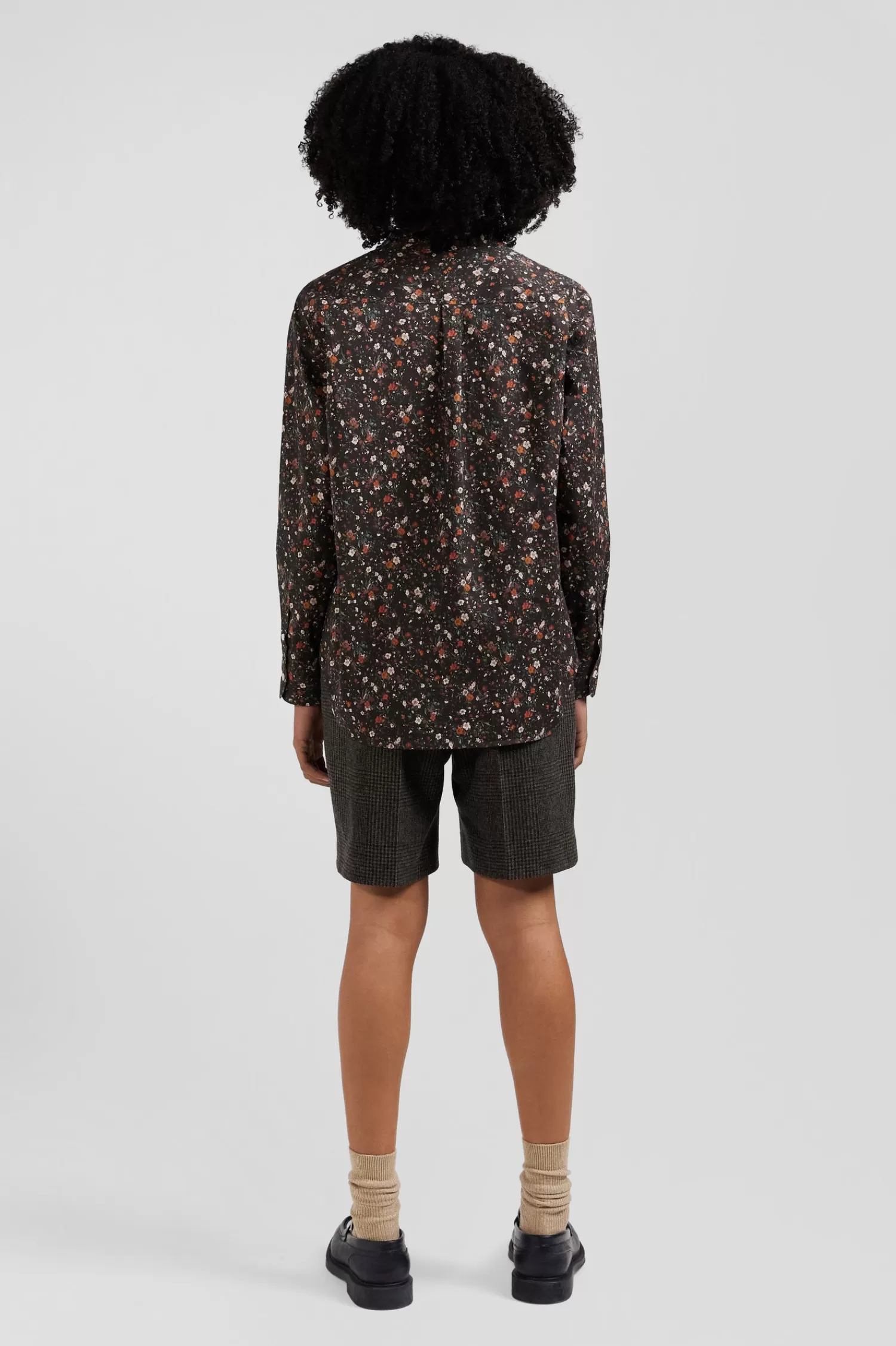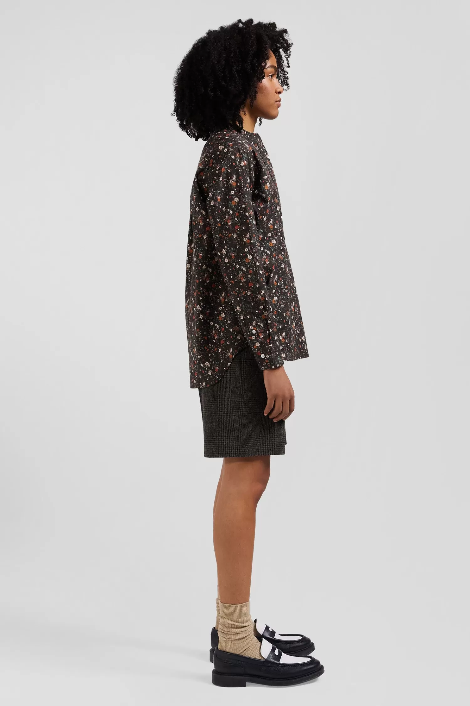 This feminine and poetic shirt is made from a lightweight cotton poplin that is soft to wear. Its floral micropattern exclusively designed for our Maison gives it a romantic and modern touch thanks to its play of contrasts. Its straight cut and its absence of collar elevate the allure. For a feminine autumn-winter outfit, why not pair this shirt with our beige corduroy suit?