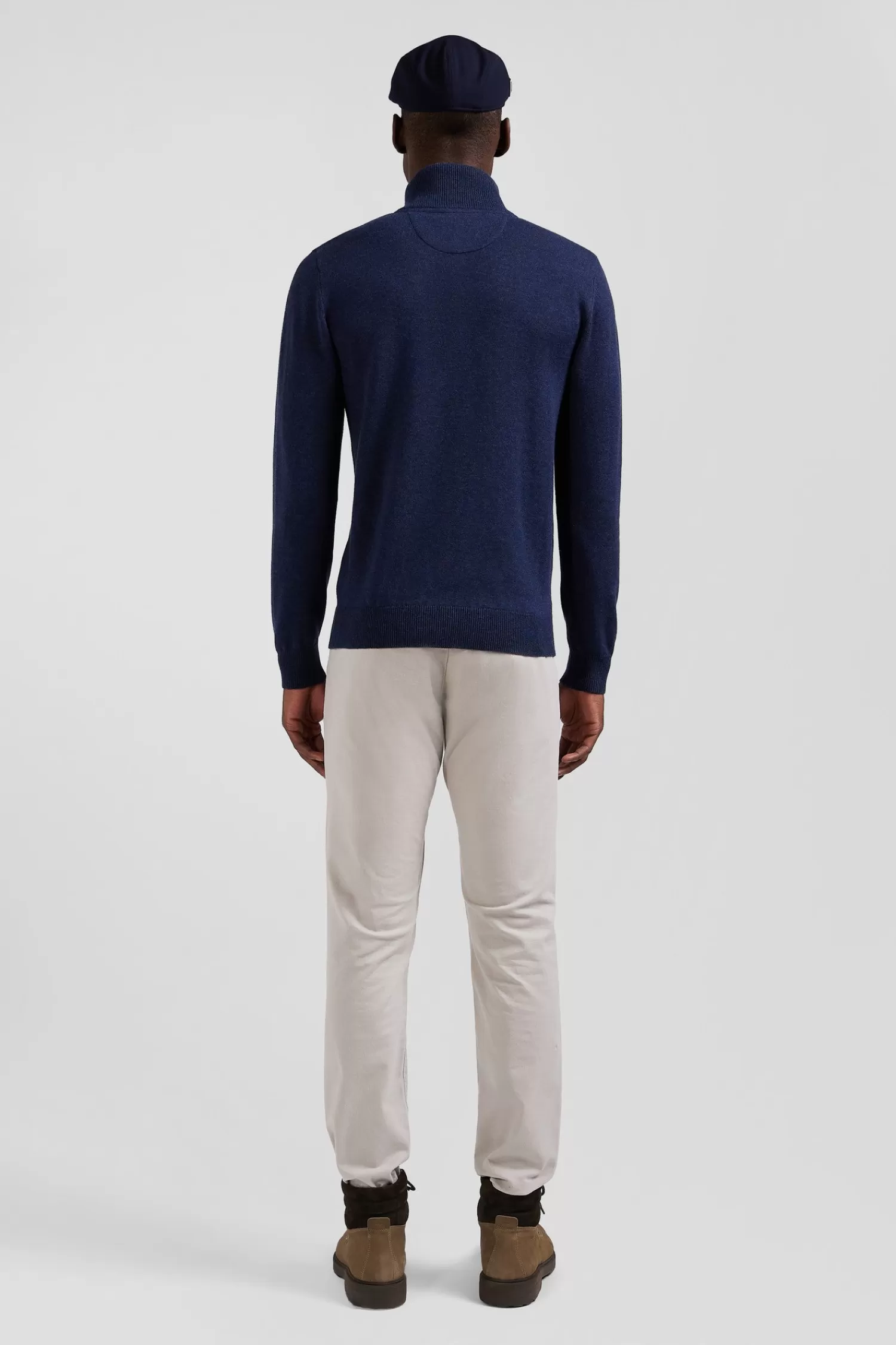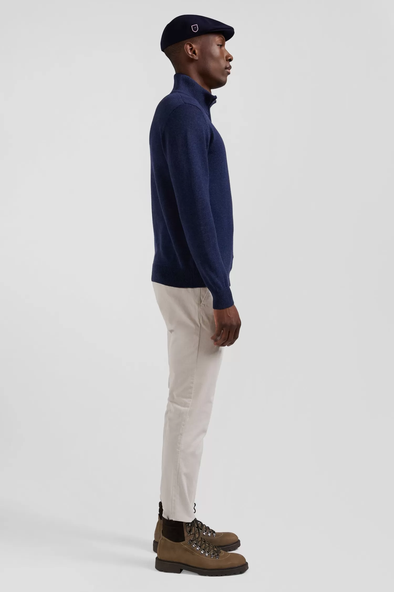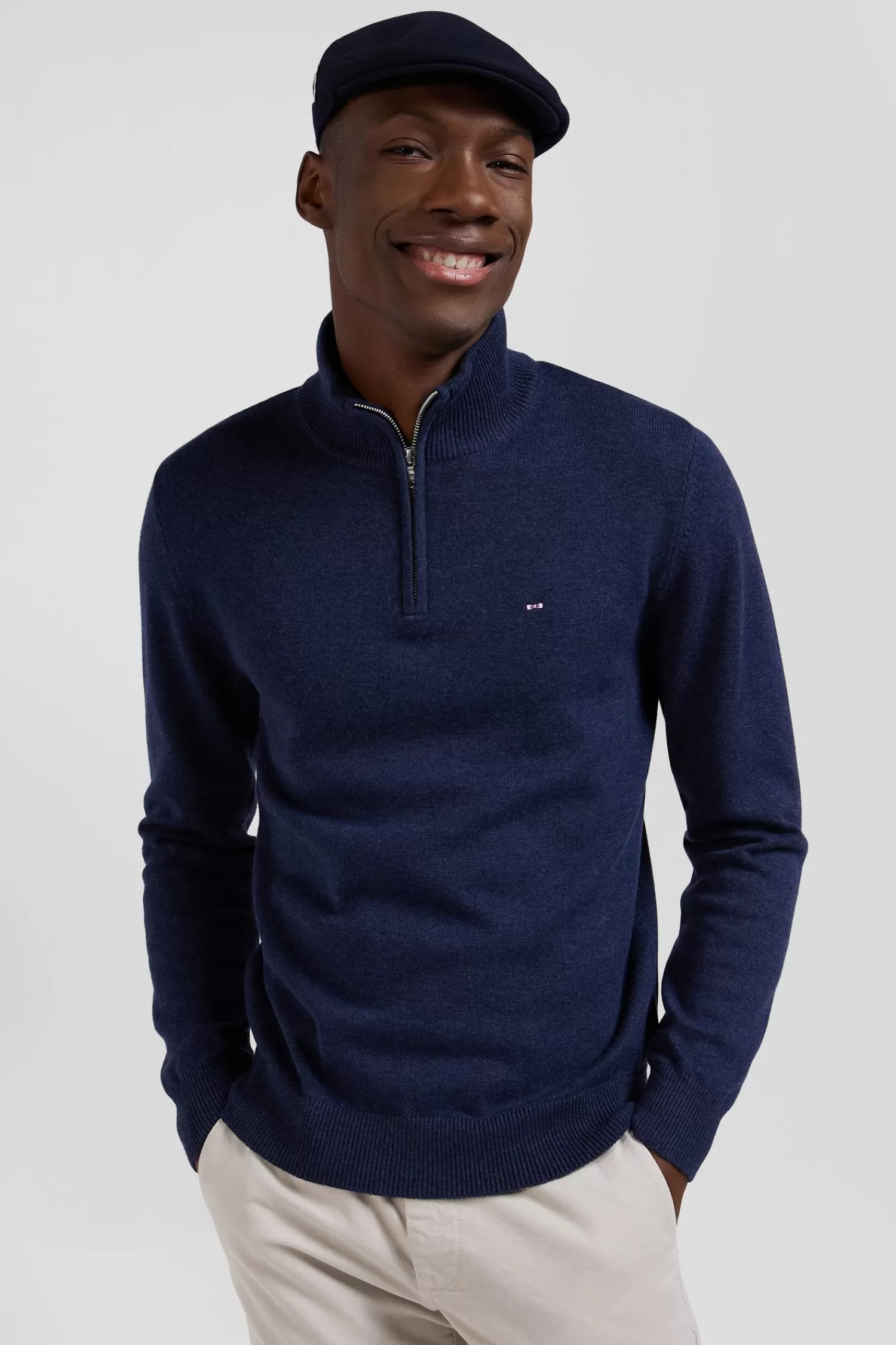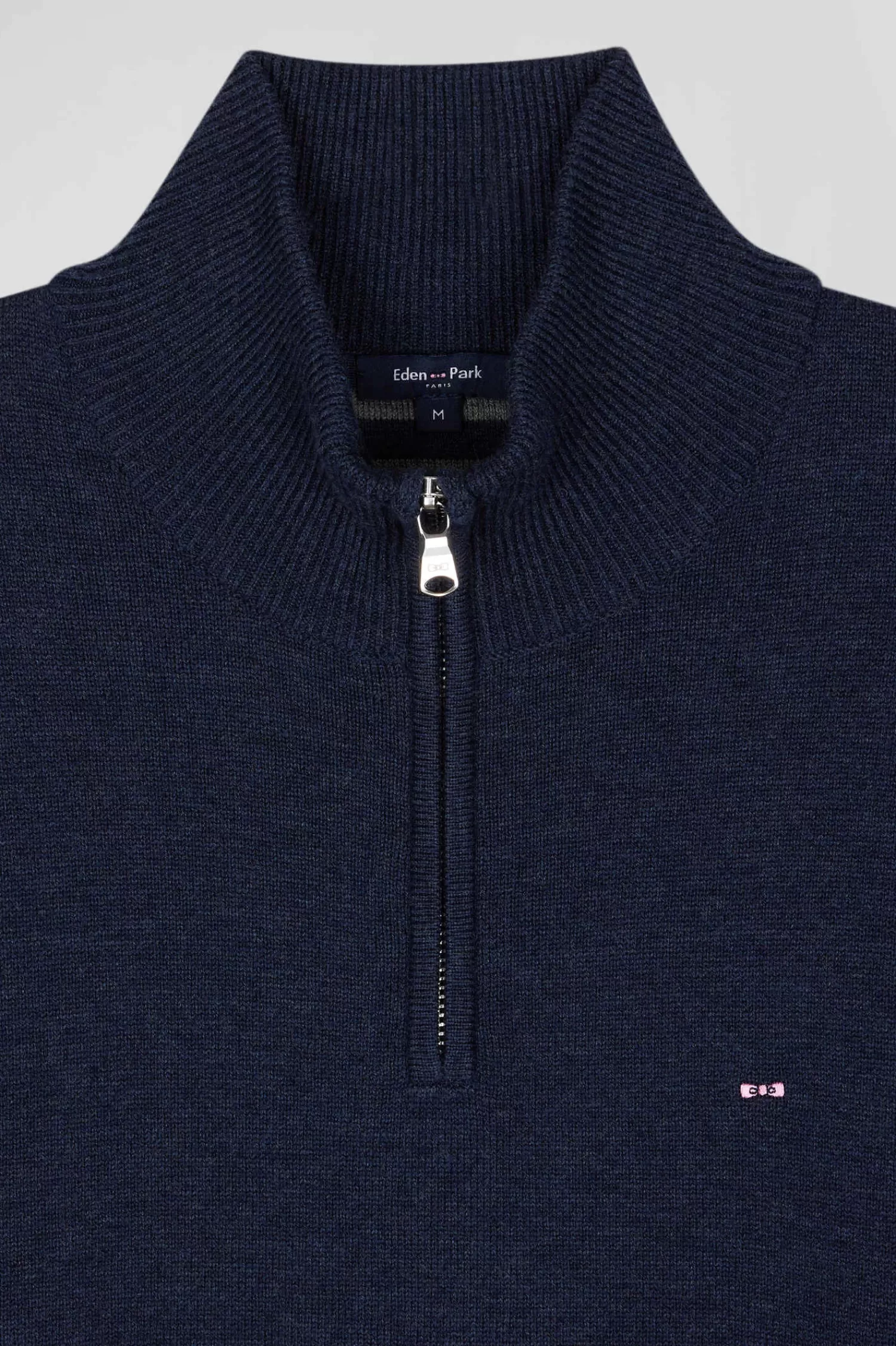 Eden Park Regular dark blue semi-zipped wool and cotton jumper< Sweaters