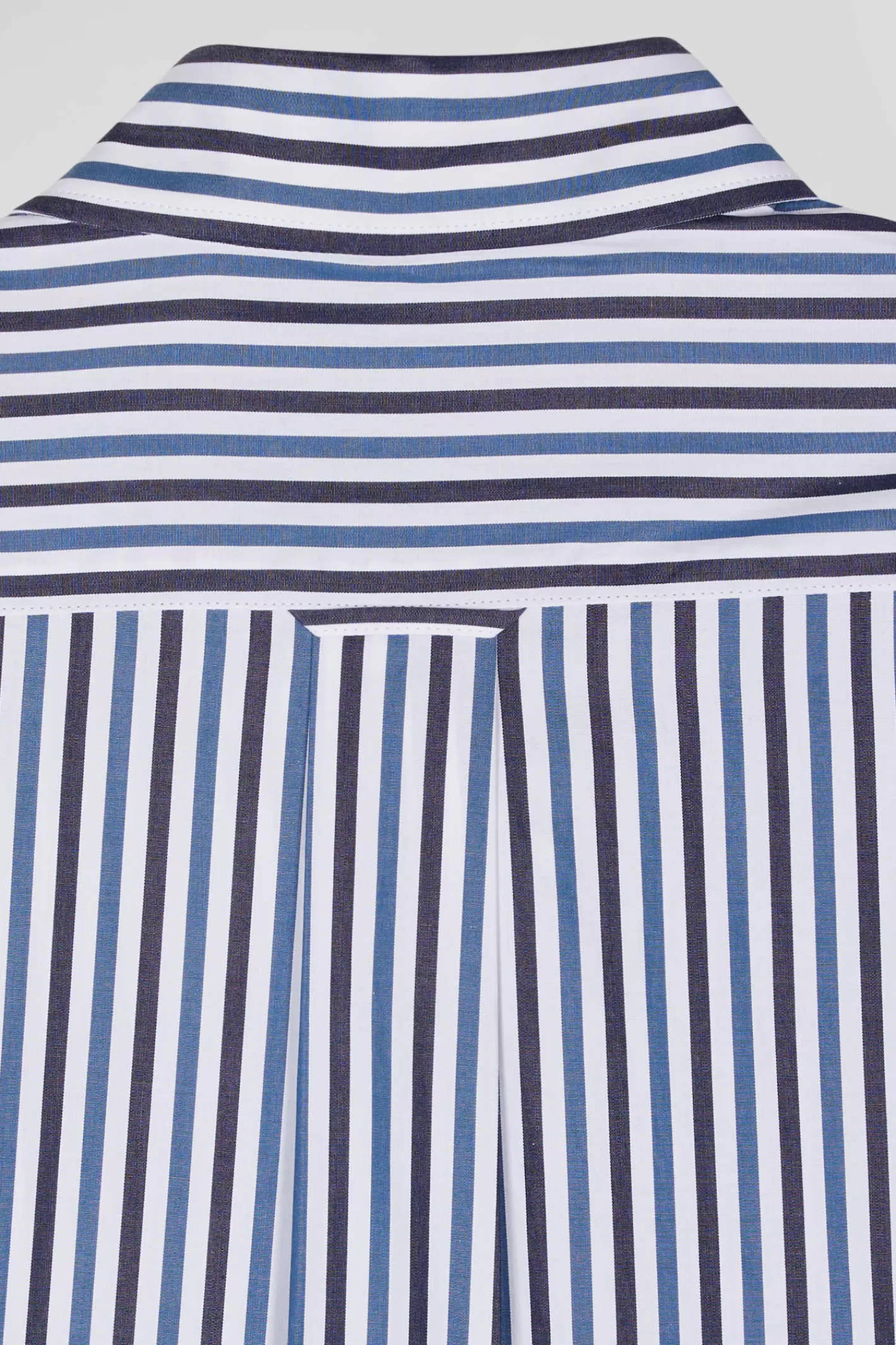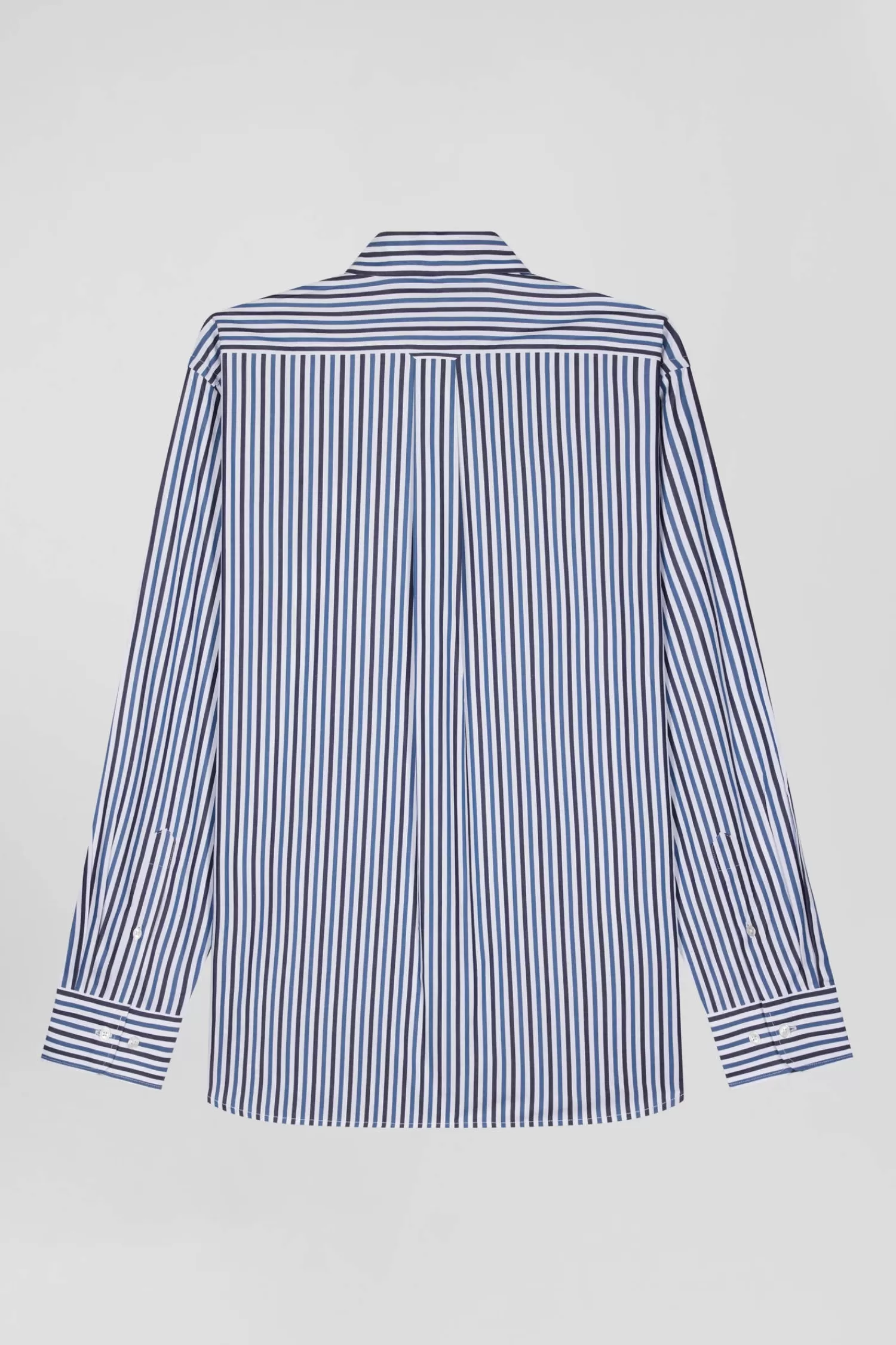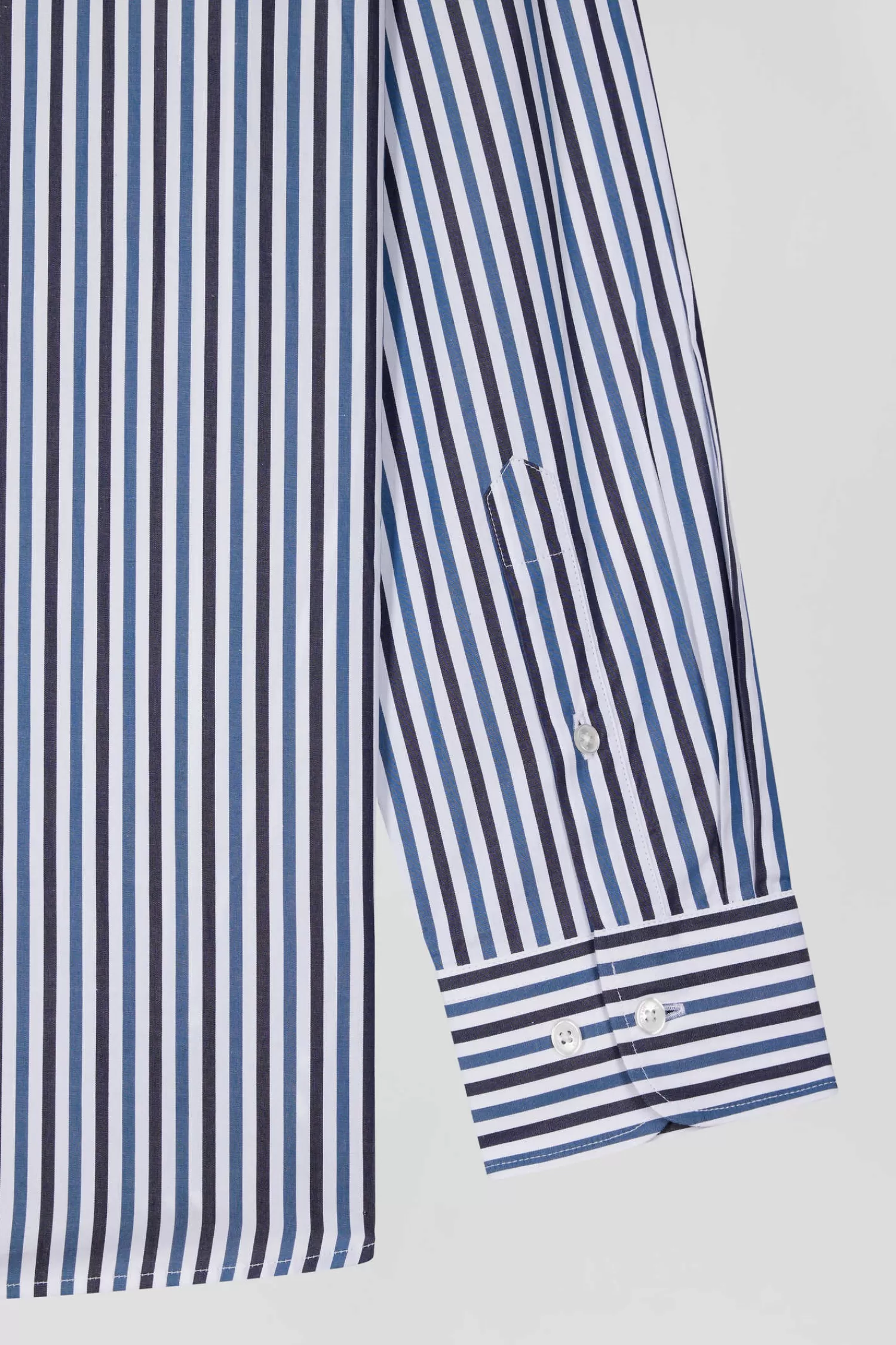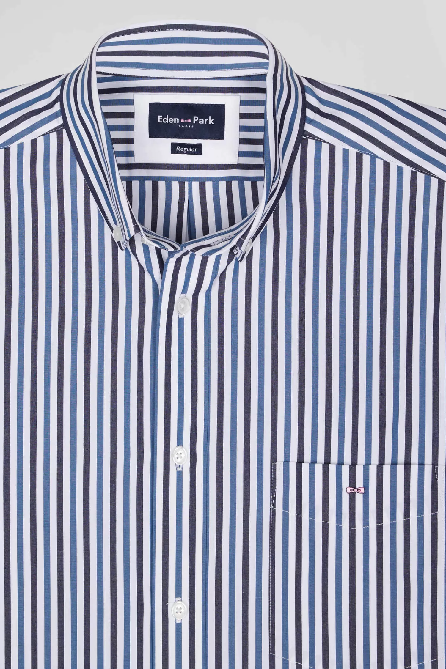 Our striped cotton poplin shirt is designed to fit all silhouettes thanks to its straight Regular fit. Its two-tone stick stripes will add a touch of dynamism to your outfit. The button-down collar ensures a snug fit, while the back pleat allows you to enjoy extra ease. Its bow tie embroidery on the chest pocket gives this men’s shirt a subtle touch of elegance. This modern classic is available for the season in a wide range of colours and can be paired with our chinos as well as straight jeans.
