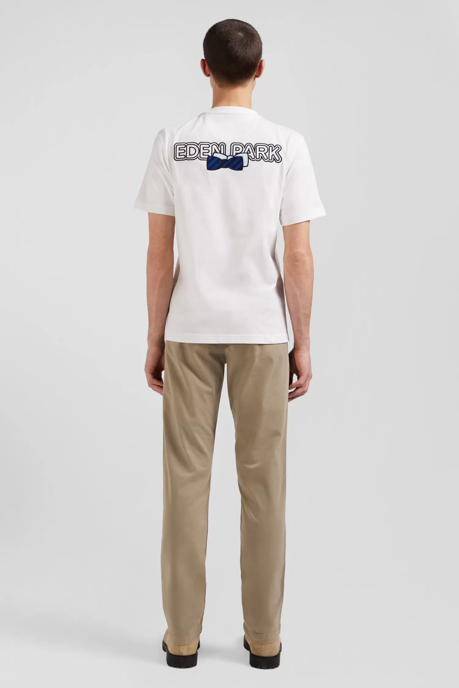 Eden Park Regular ecru short-sleeved cotton T-shirt with back embroidery< T-shirts