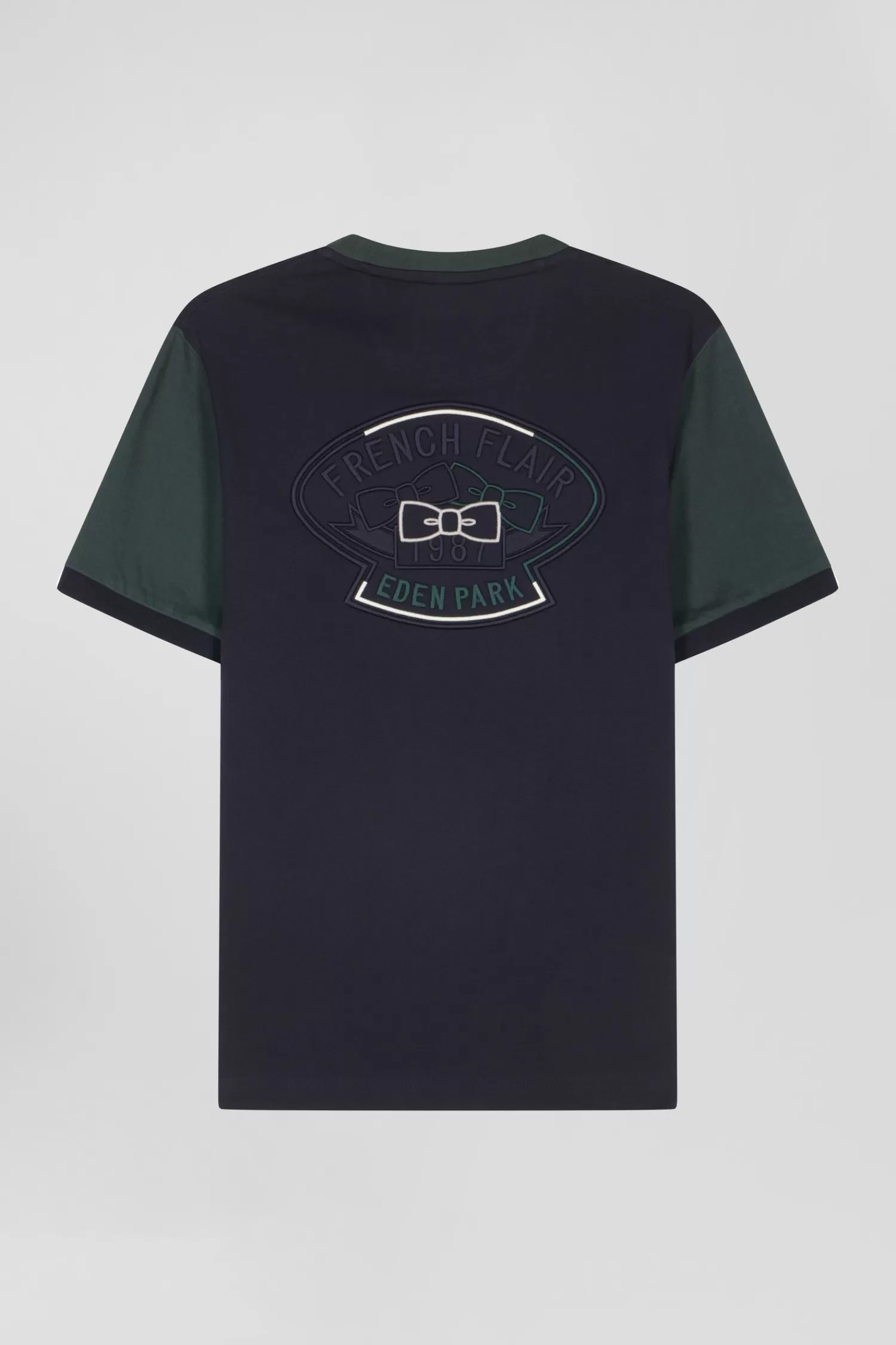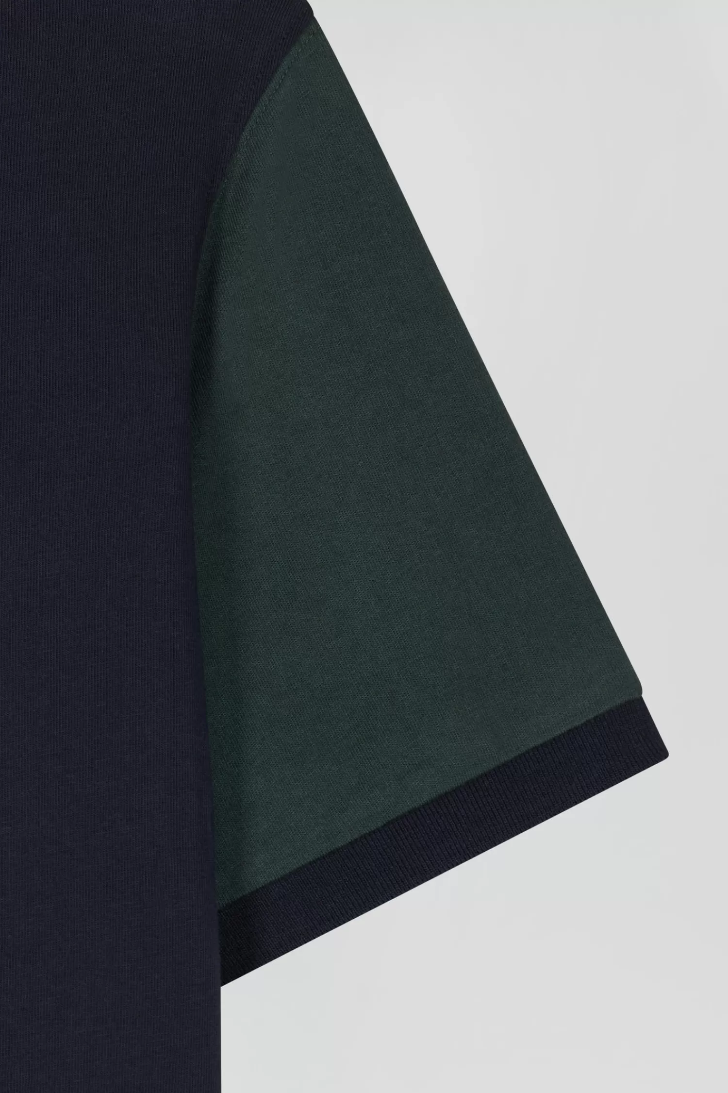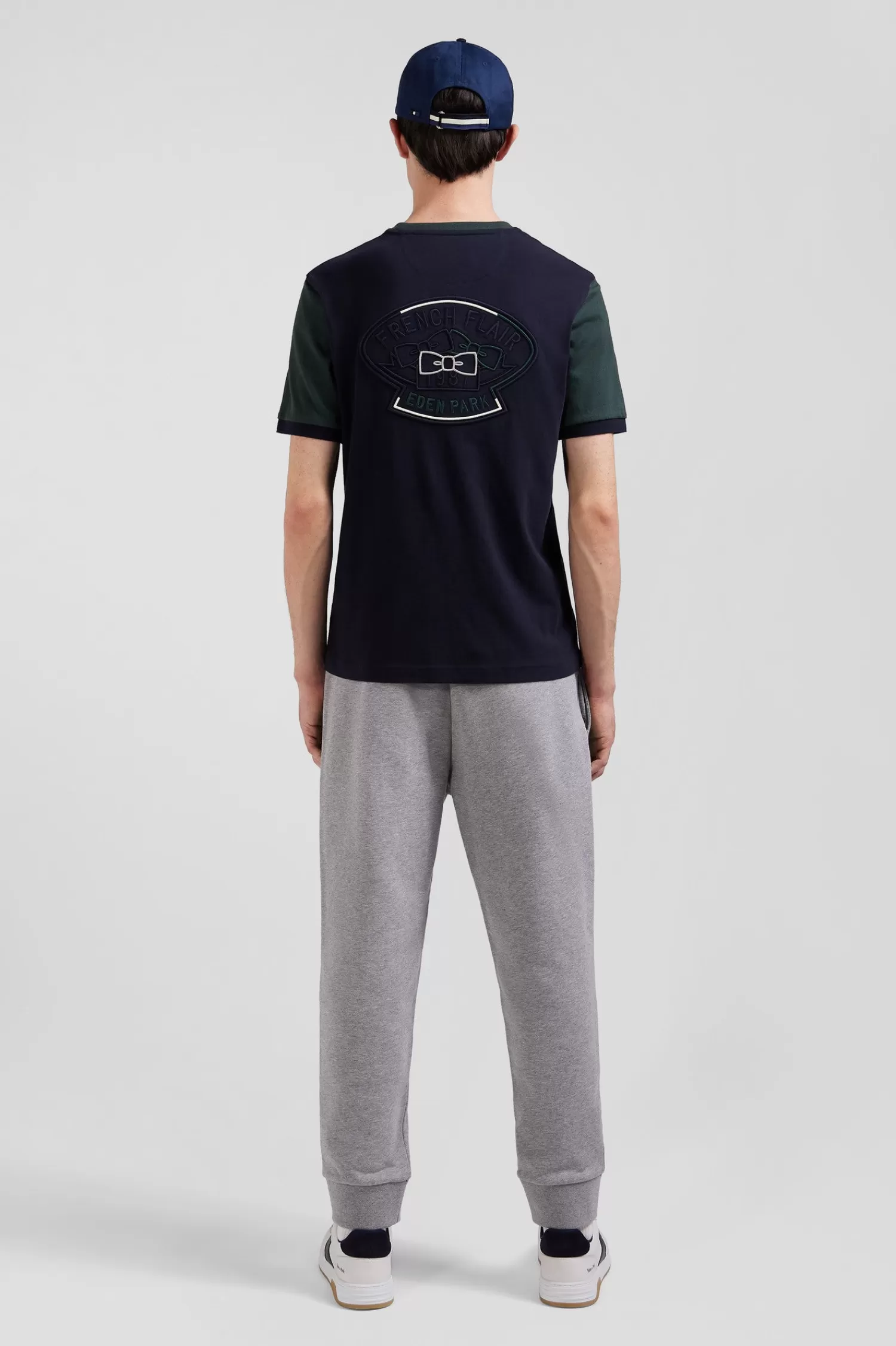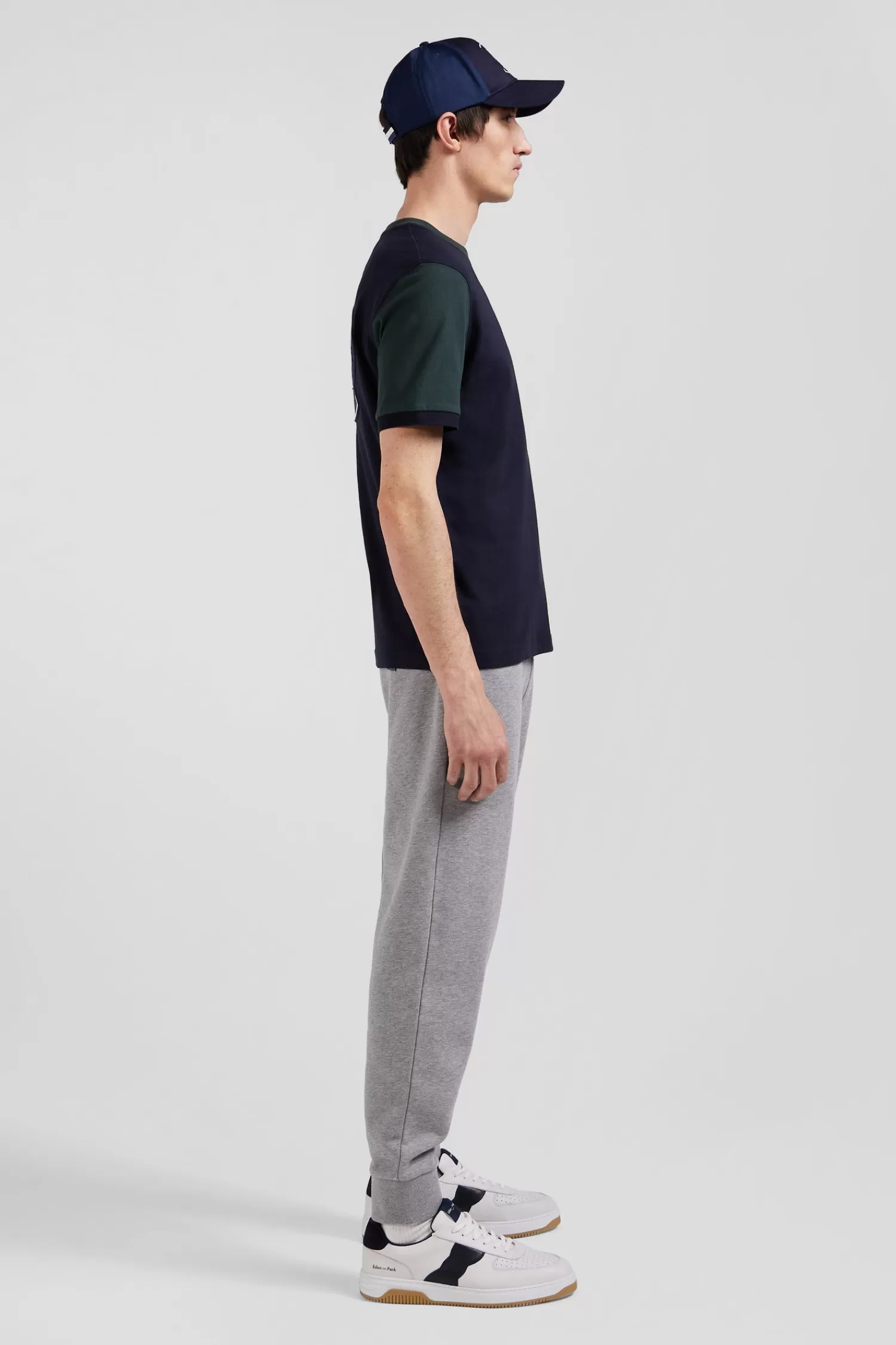 Our high-quality cotton men’s T-shirt is enhanced with iconic elements of our Maison, assembled into a detailed back embroidery. For a graphic touch, this bicolor T-shirt features contrasted sleeves inspired by athletic wear.