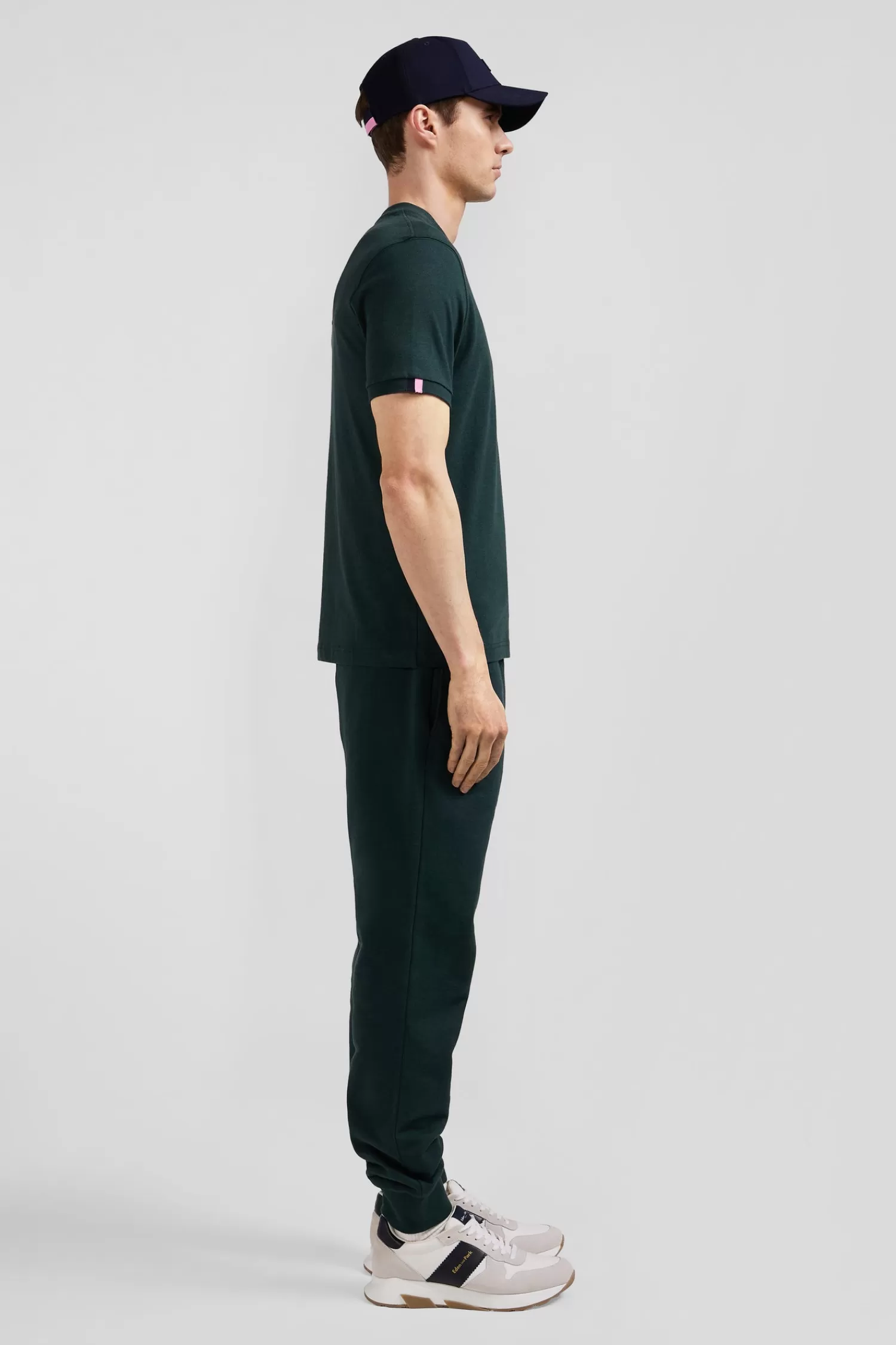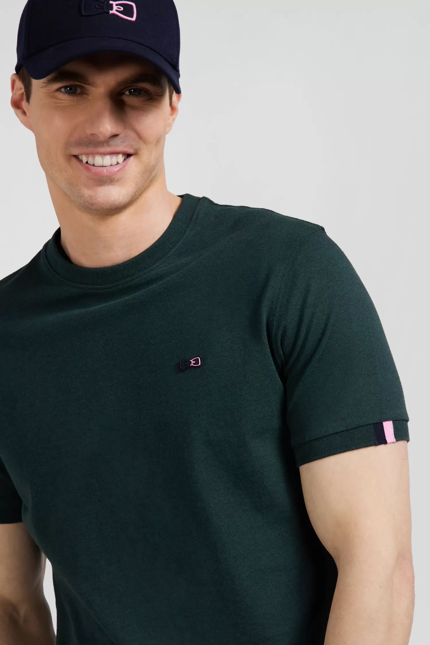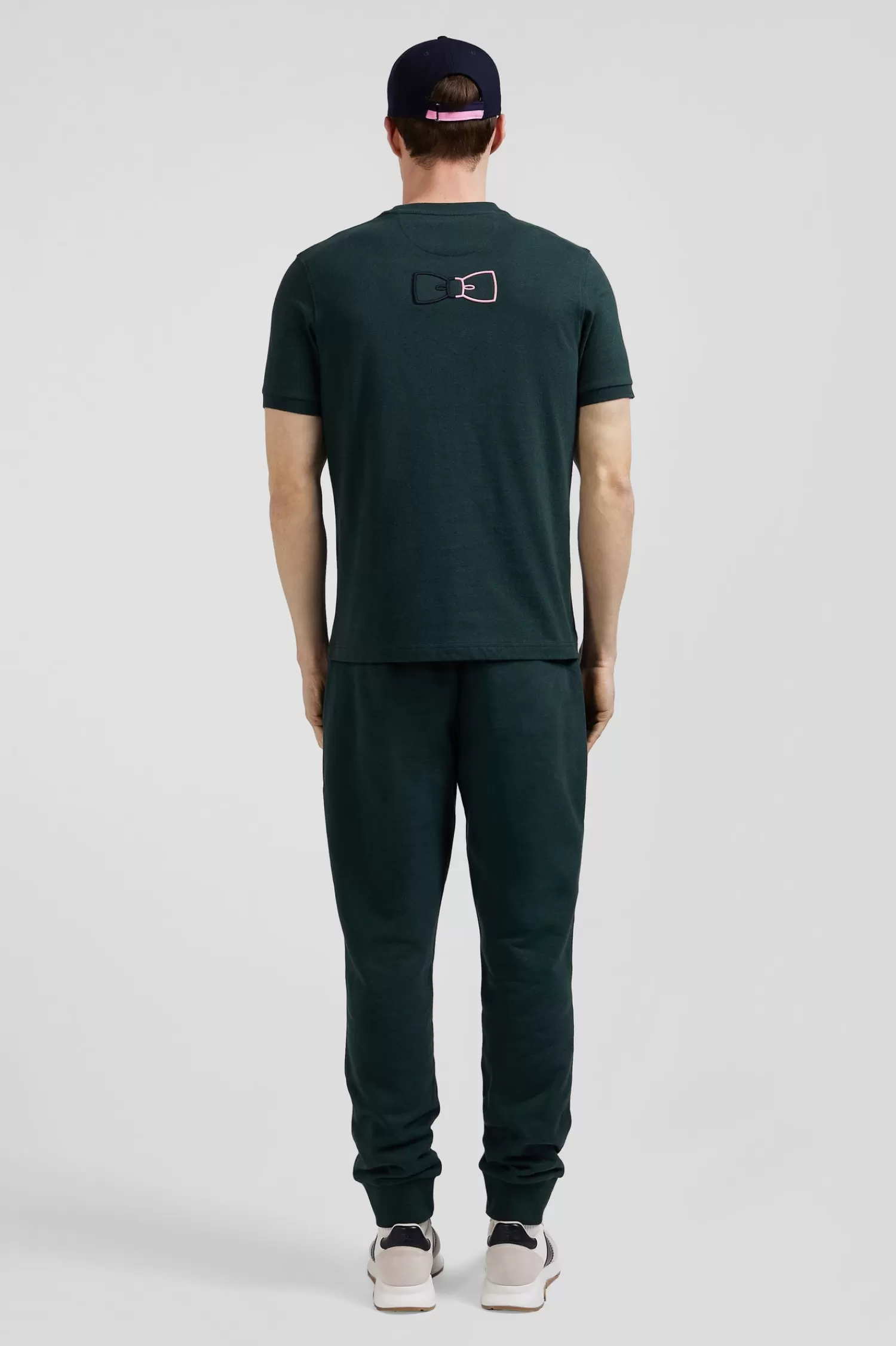 Eden Park Regular green short-sleeved cotton T-shirt with emblem embroidery< T-shirts