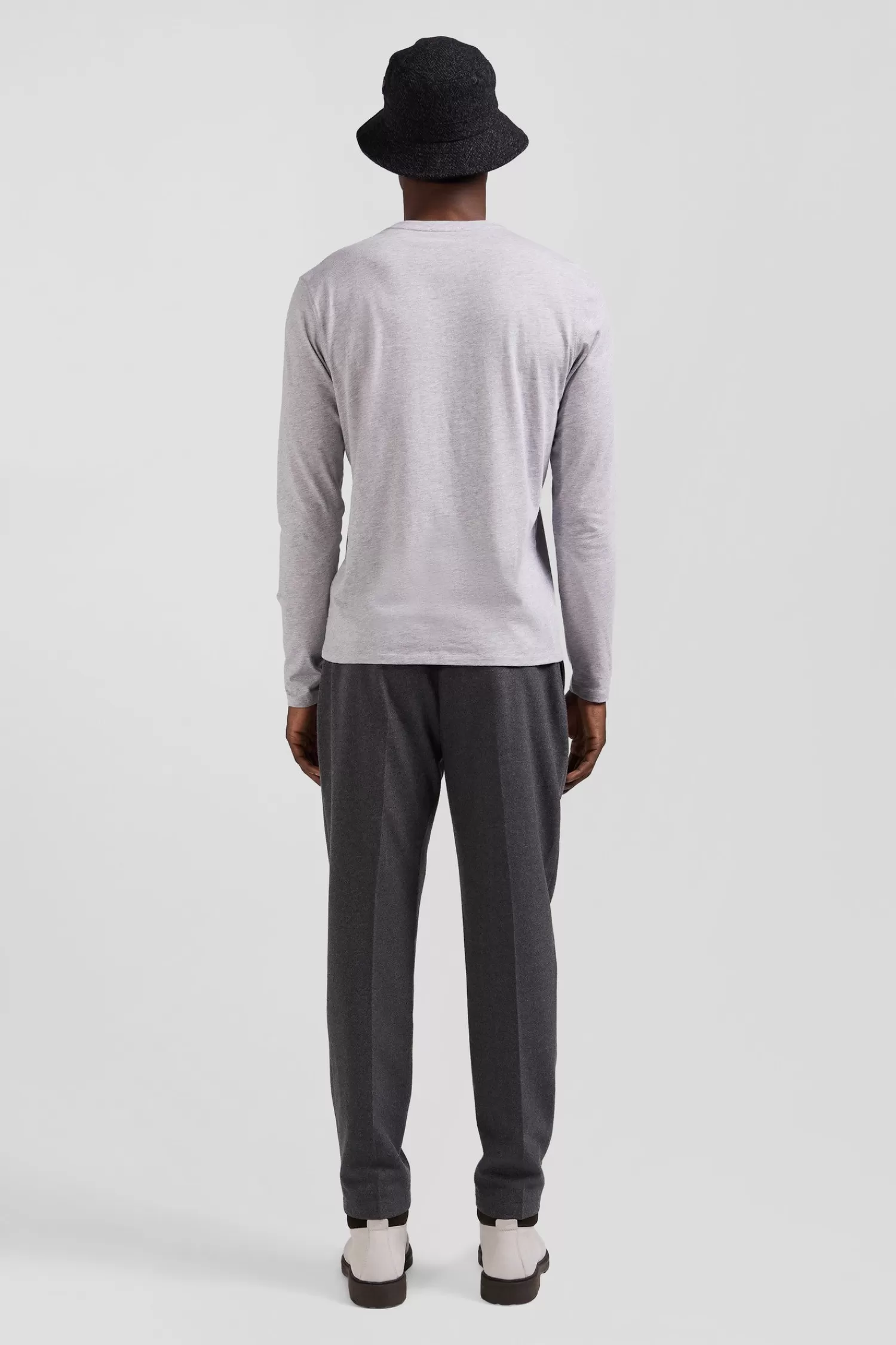 Appreciate the timeless elegance of this long-sleeve men’s T-shirt in soft cotton jersey. Its pastel color palette offers a touch of gentleness while its classic straight fit ensures everyday comfort. A staple for your autumn-winter vestiaire.