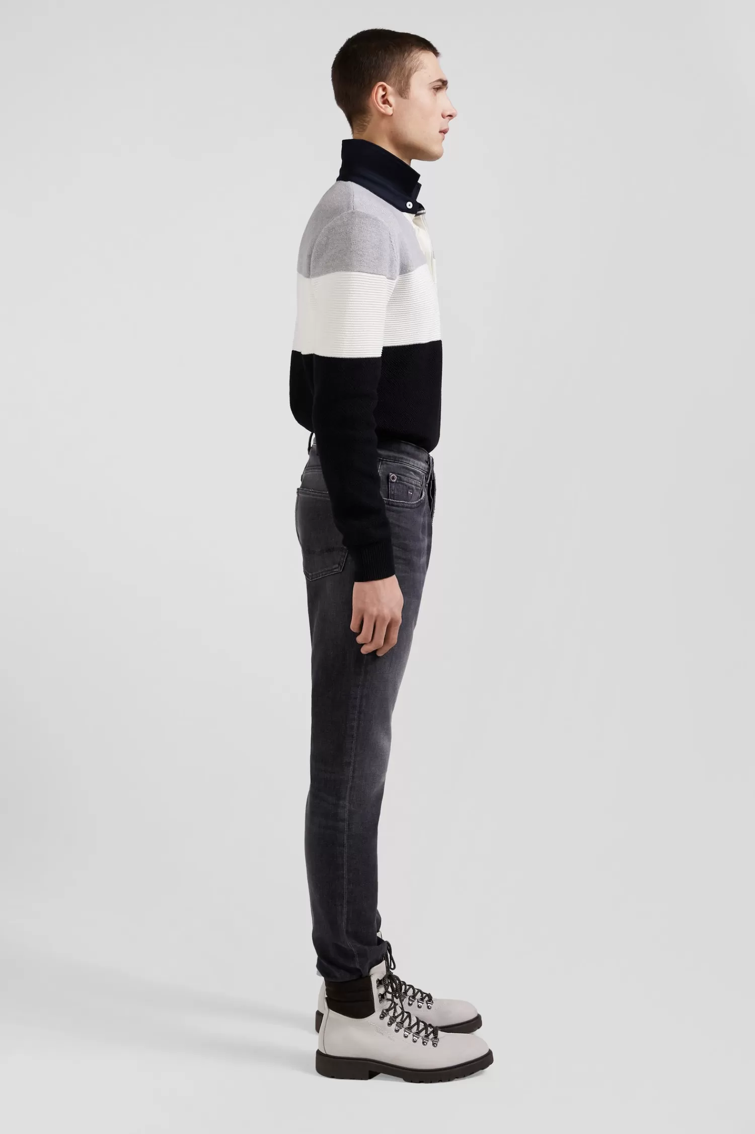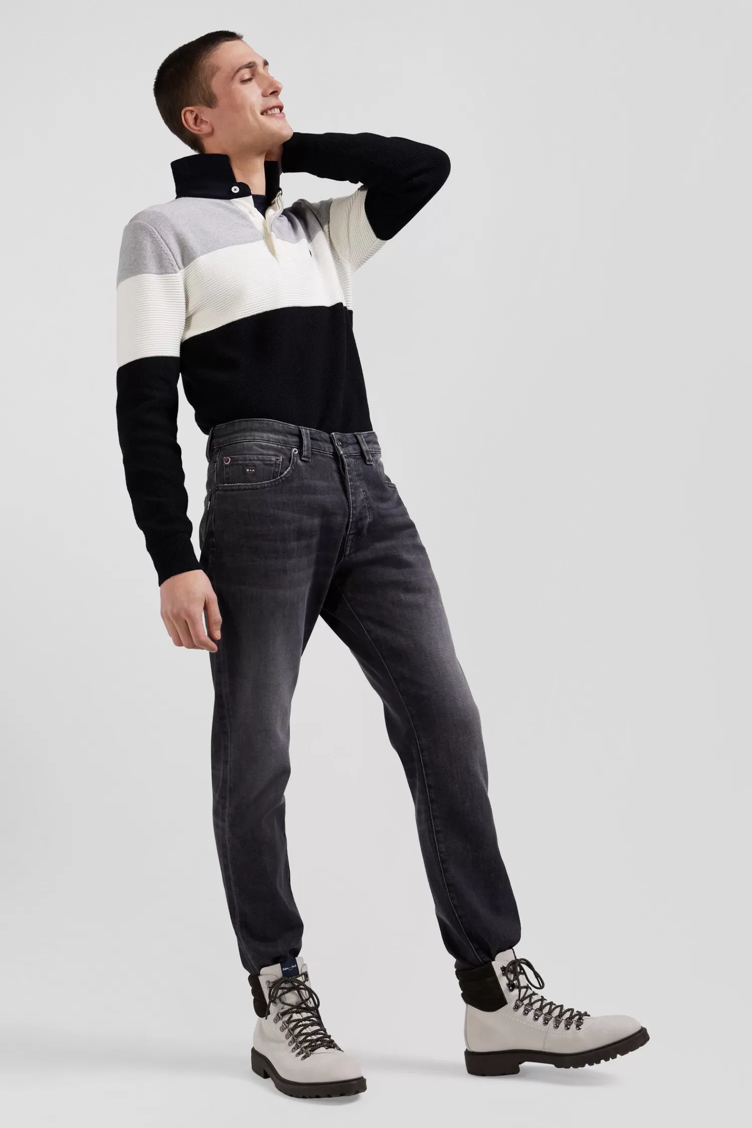 Eden Park seasonal 5-pocket jeans in a versatile shade of gray stretch cotton are designed to adapt to your everyday needs. This men’s jeans offer a straight Regular fit that combines ease and elegance. The well-placed pockets ensure a flattering fit for these gray jeans as well as functionality. This denim trouser is ideal for men seeking a piece that is both trendy and timeless.