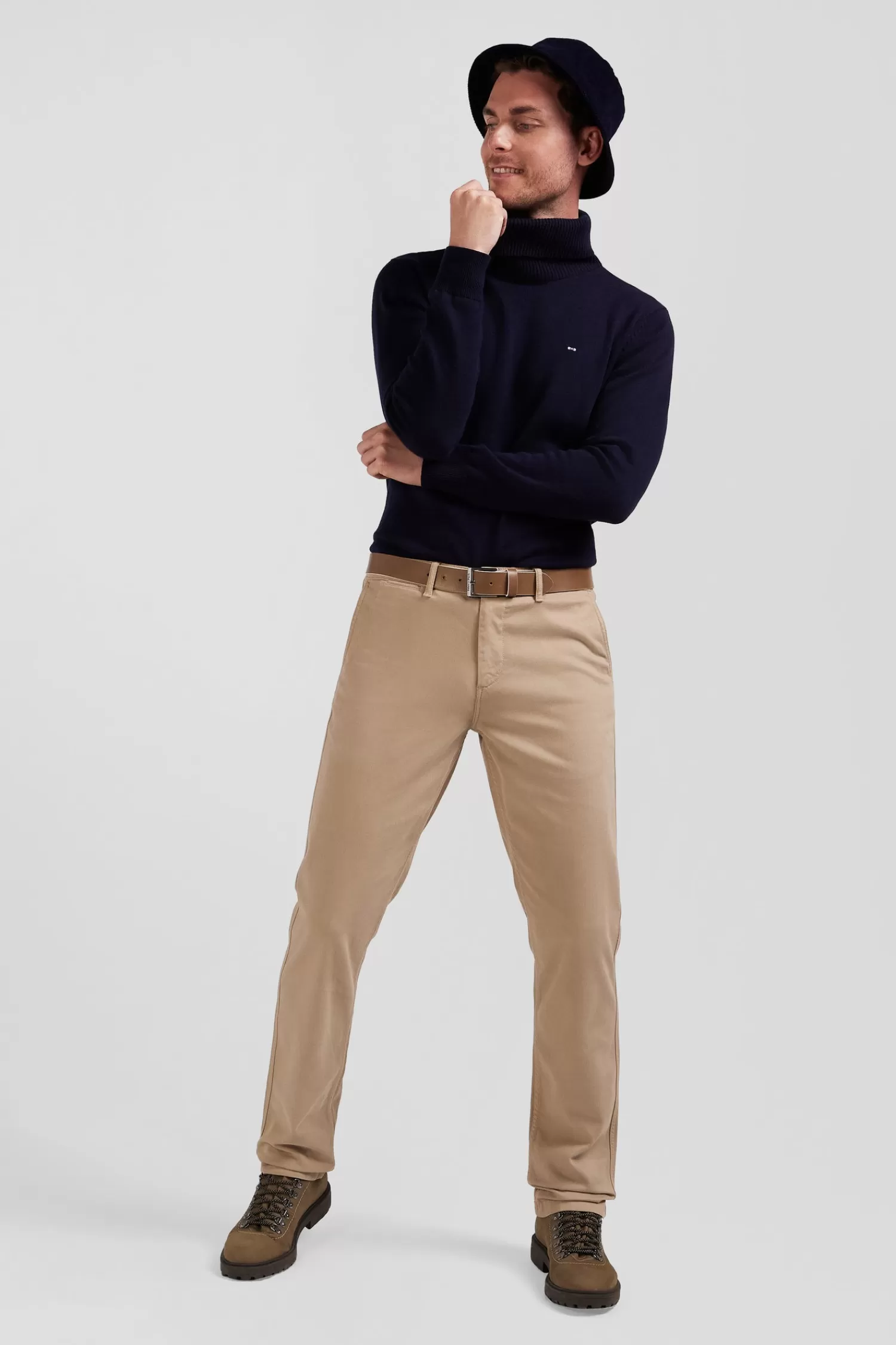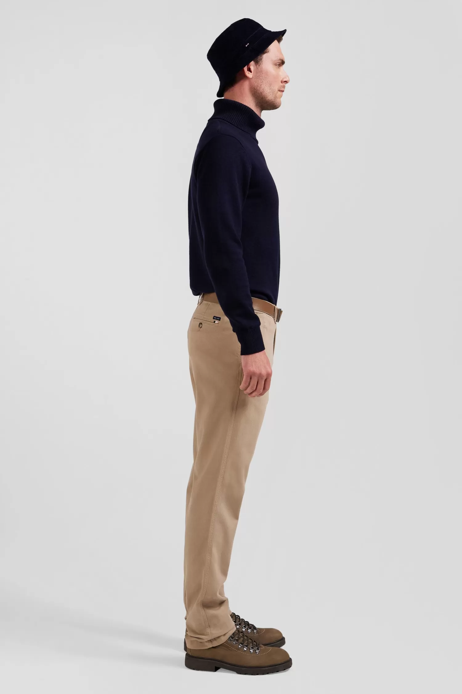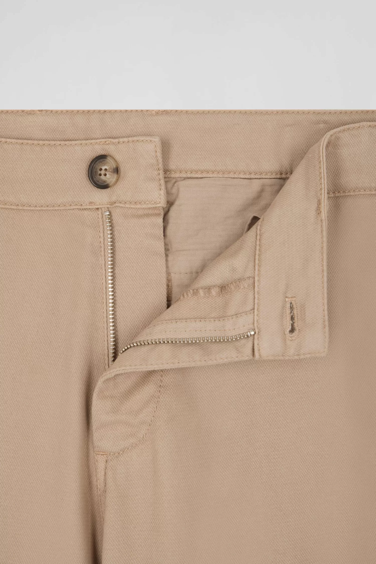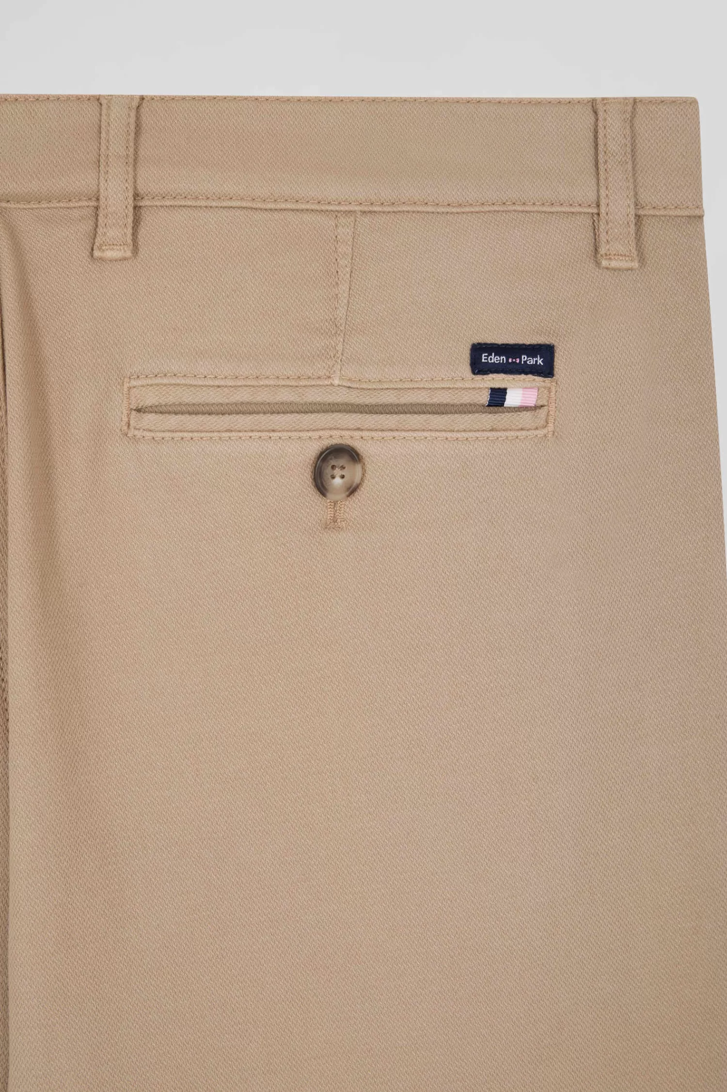 Eden Park Regular hemp-coloured stretch cotton piqué and modal chino trousers< Pants