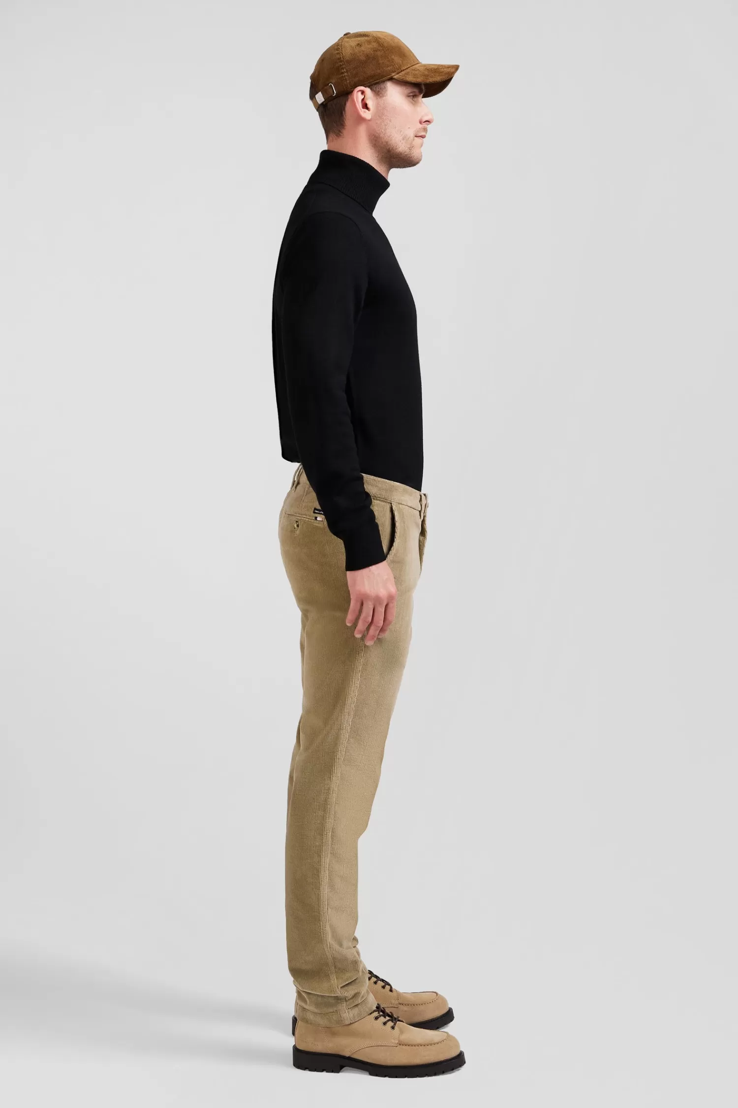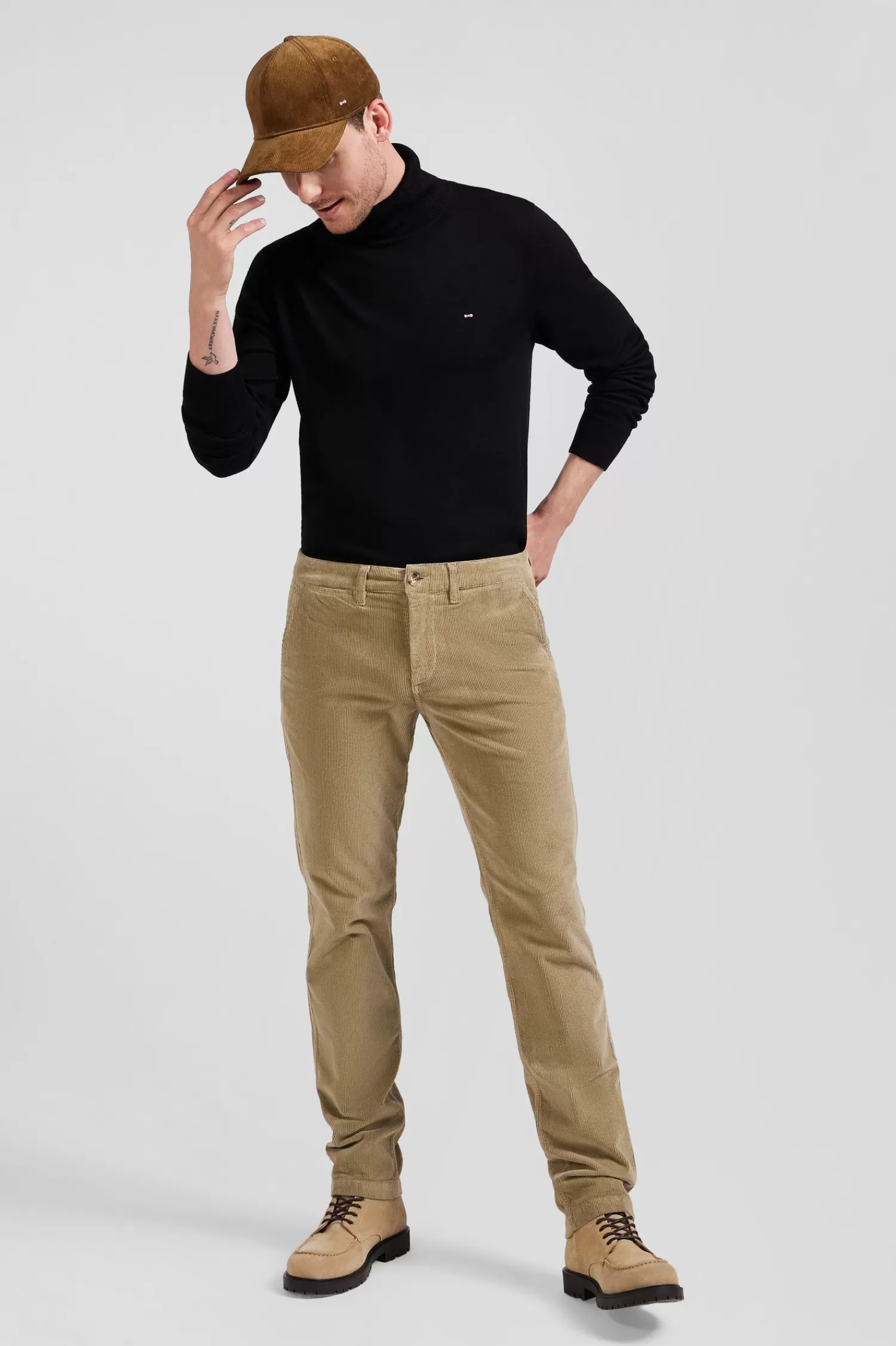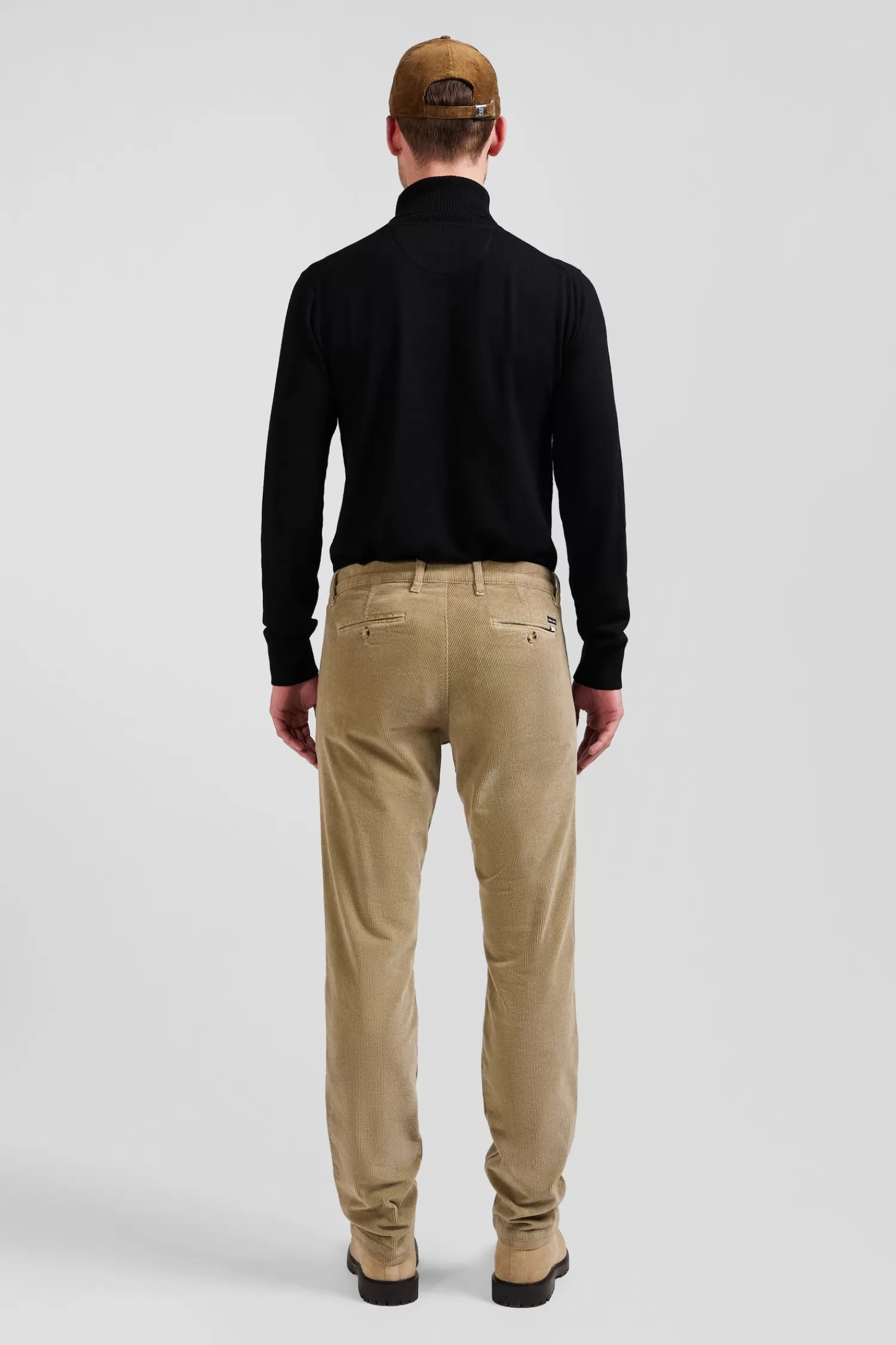 Our pleat-free chino trousers in a regular straight cut are available for the upcoming autumn-winter season in 9 colors. The back pocket is adorned with a tricolor ribbon and the branding of our French Maison, details that lend a touch of understated elegance.