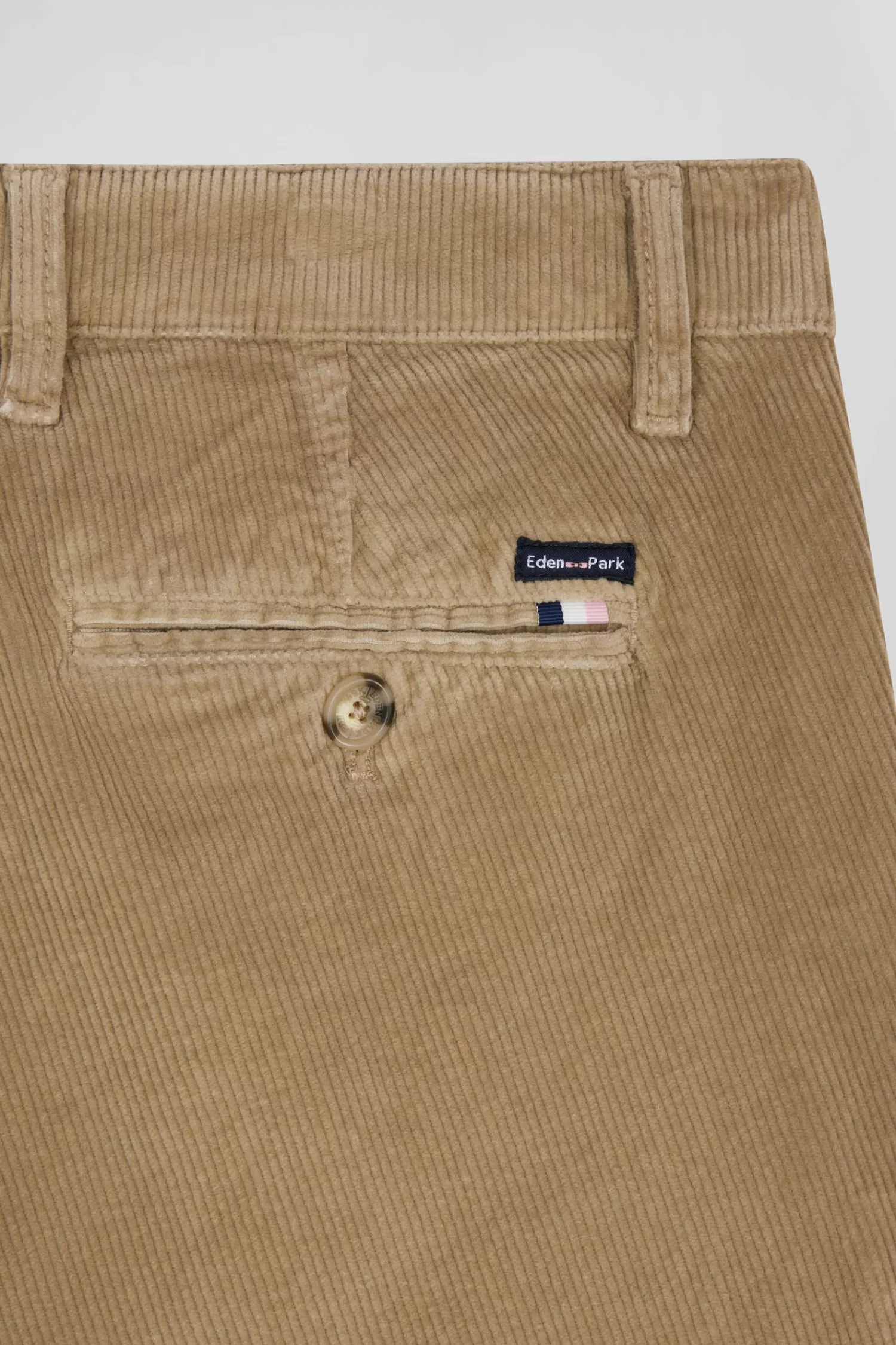 - Eden Park fabric above the back pocket with tricolor ribbon