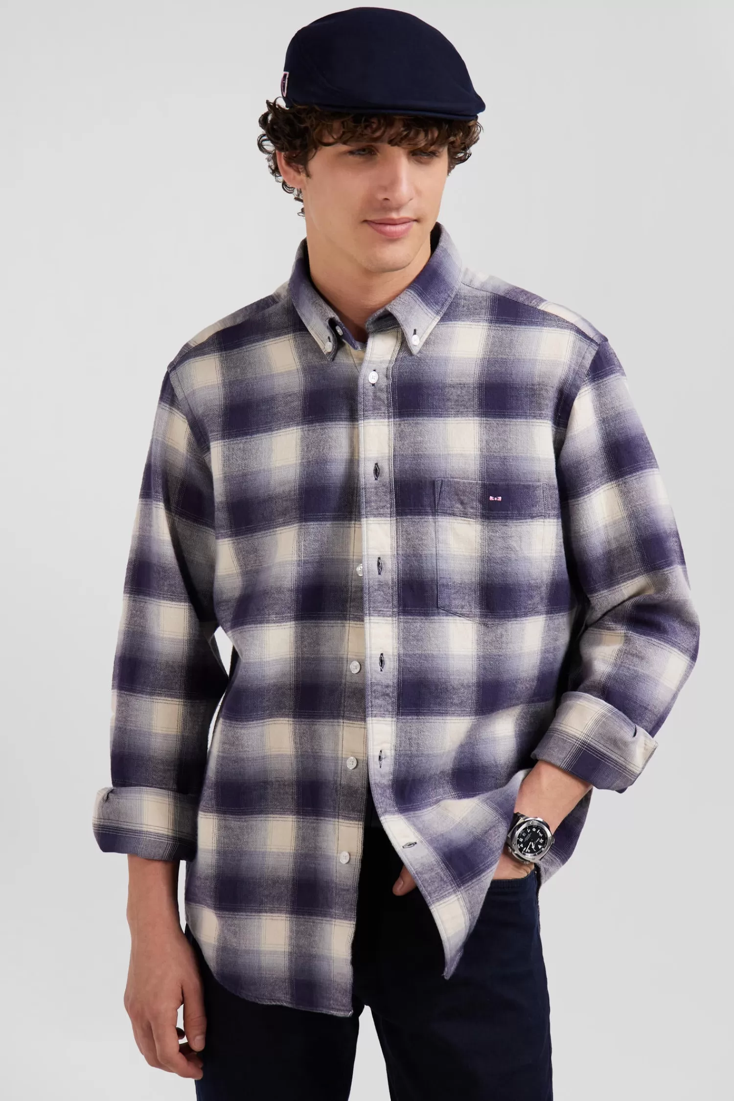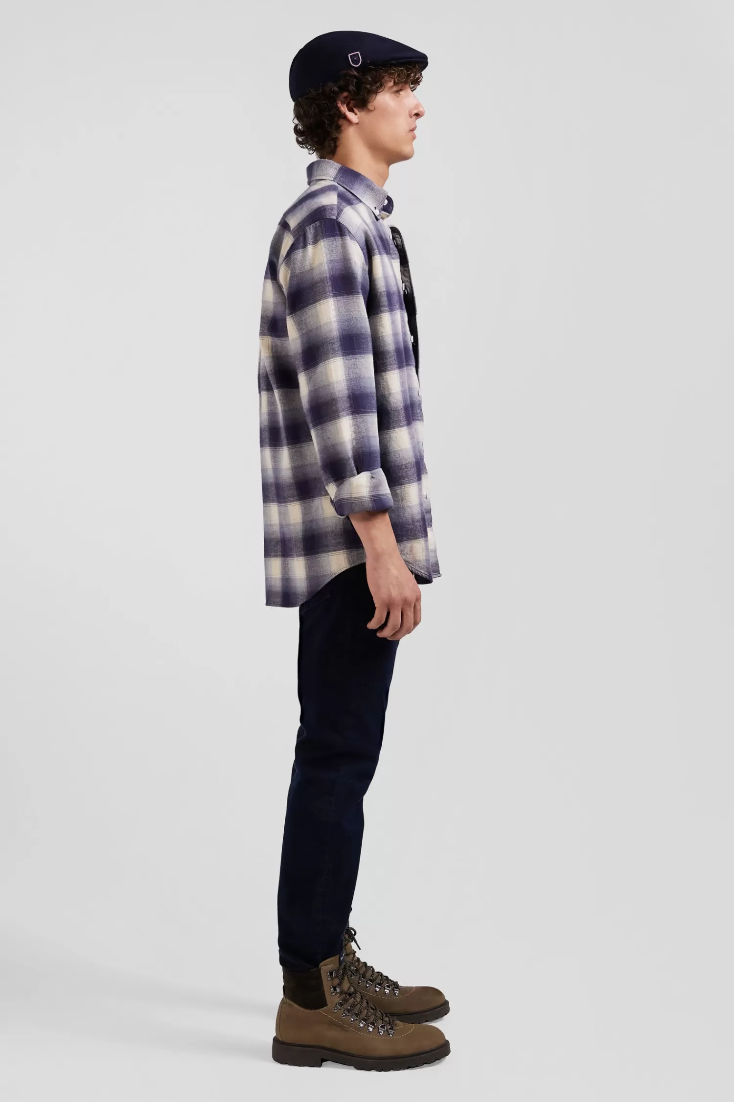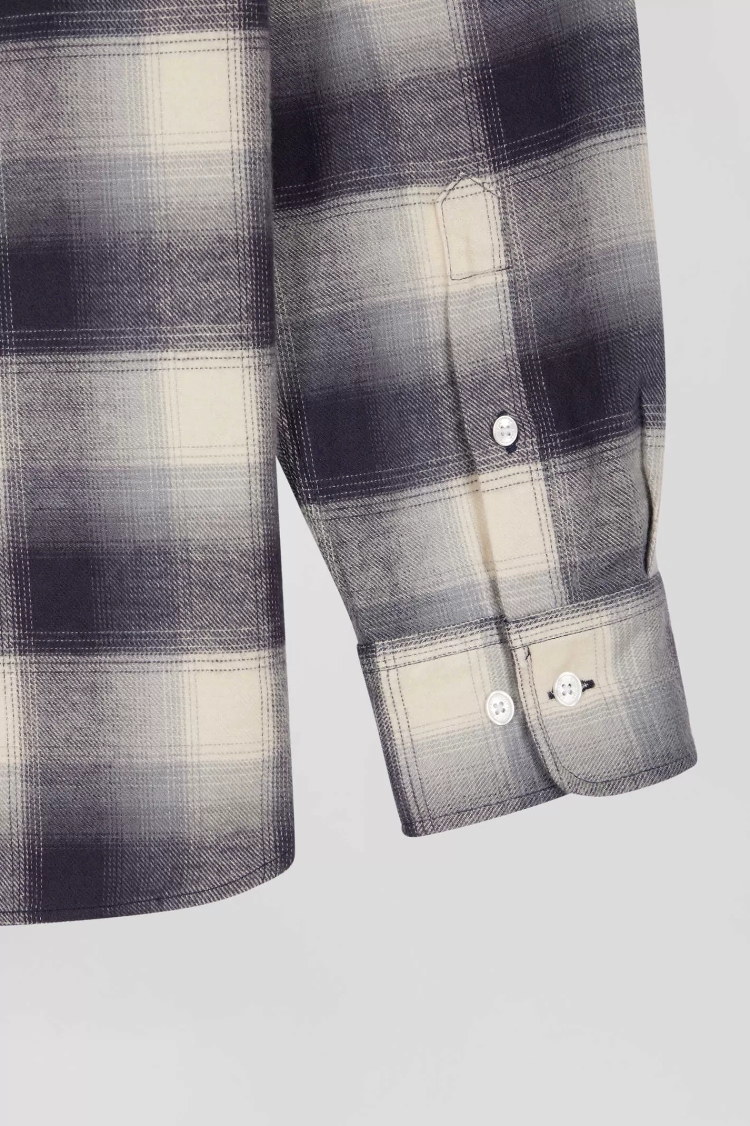 This indigo blue plaid shirt is perfect for an elegant and elevated casual style. Featuring a patch pocket and embellished with our iconic signature bow tie embroidery, this soft and comfortable men’s cotton shirt combines style and function for a modern look.