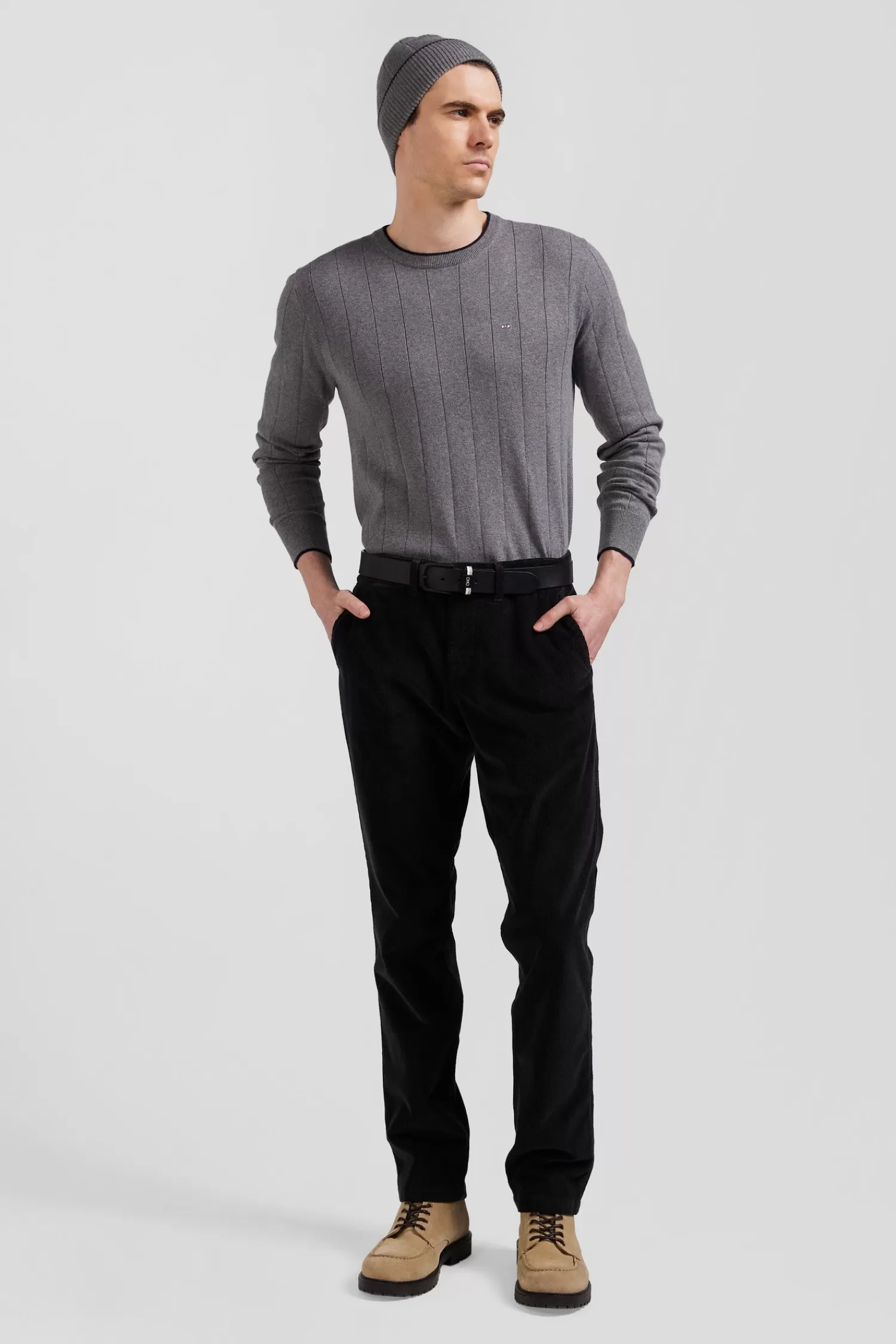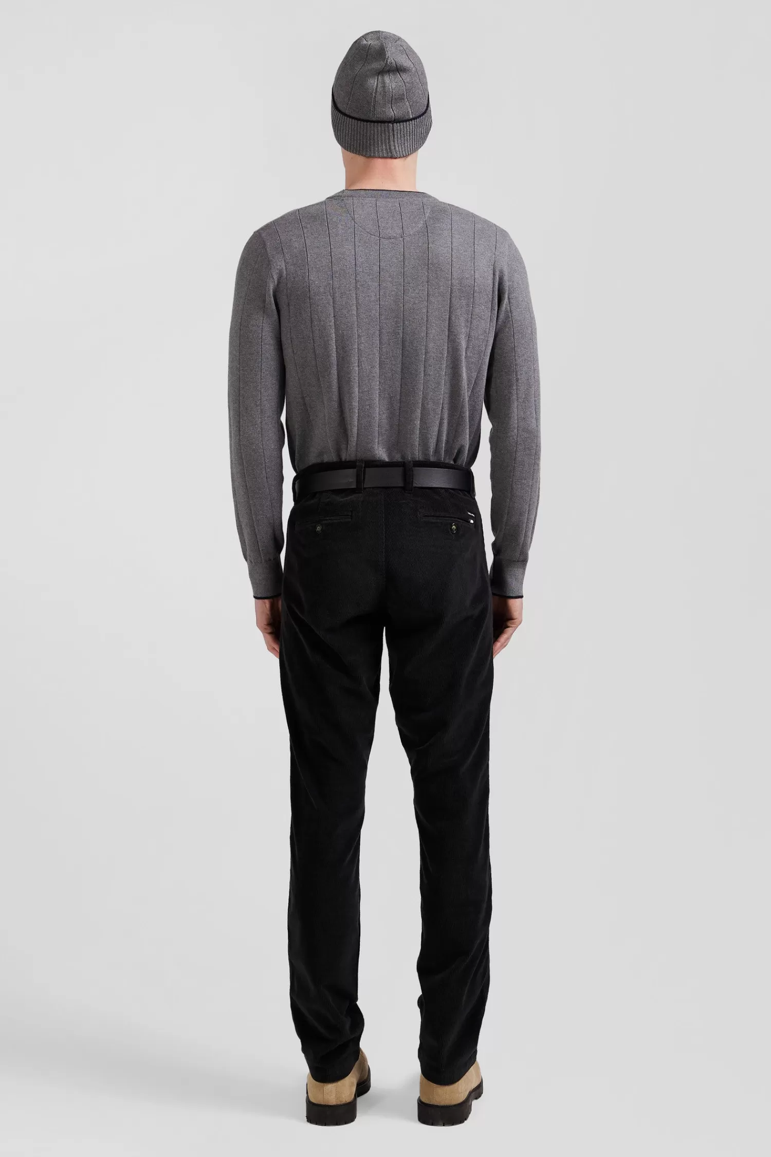 Our pleat-free chino trousers in a regular straight cut are available for the upcoming autumn-winter season in 9 colors. The back pocket is adorned with a tricolor ribbon and the branding of our French Maison, details that lend a touch of understated elegance.