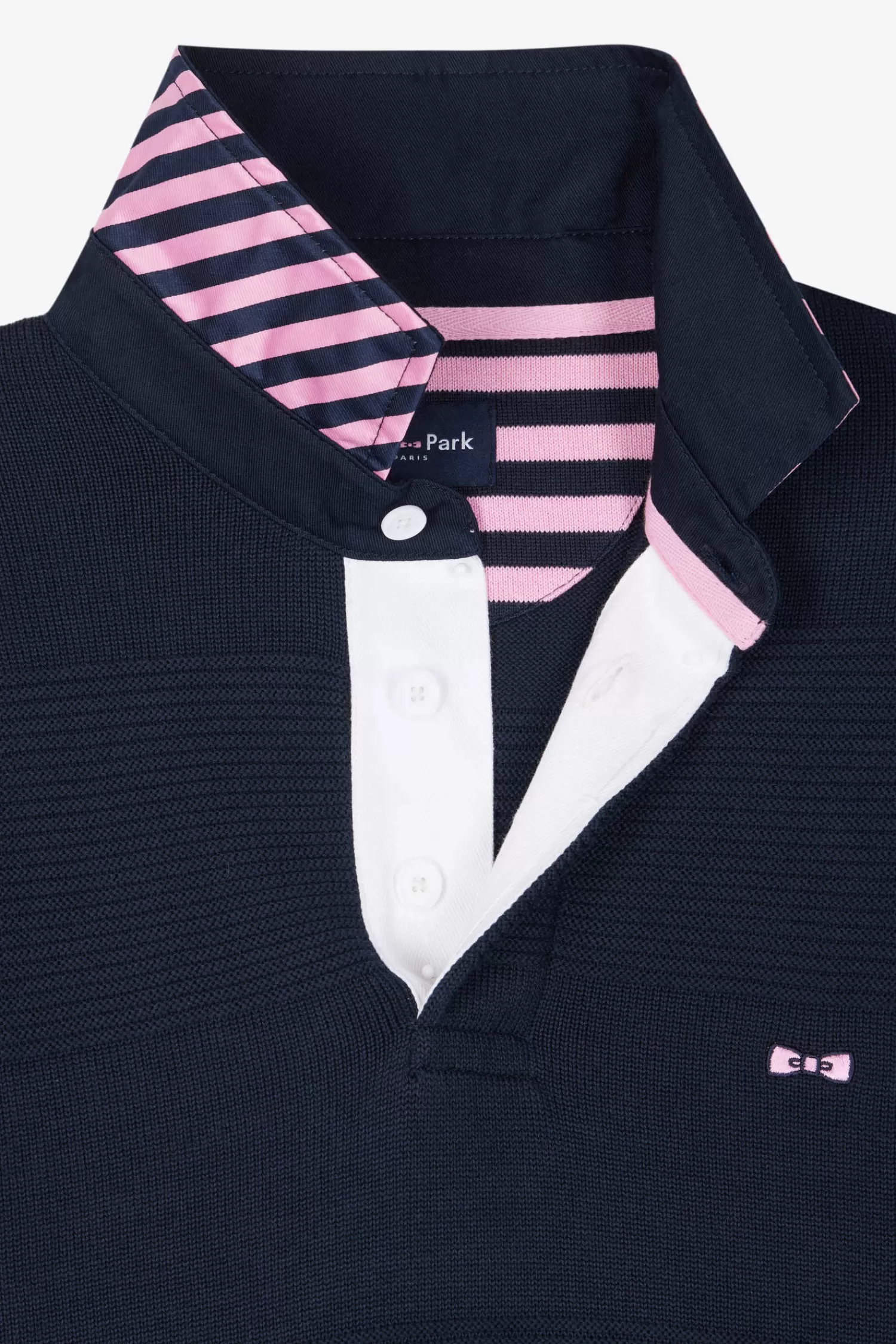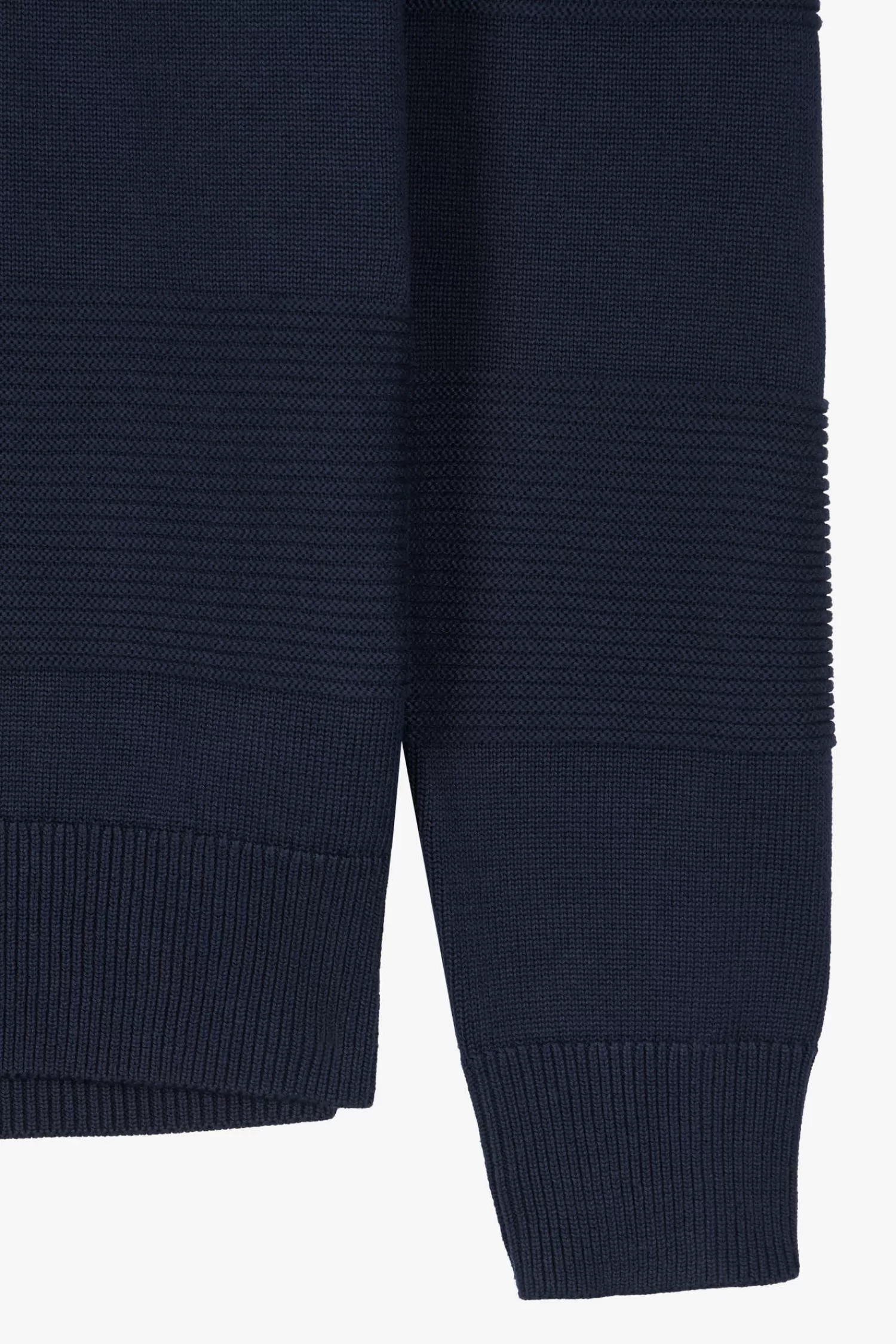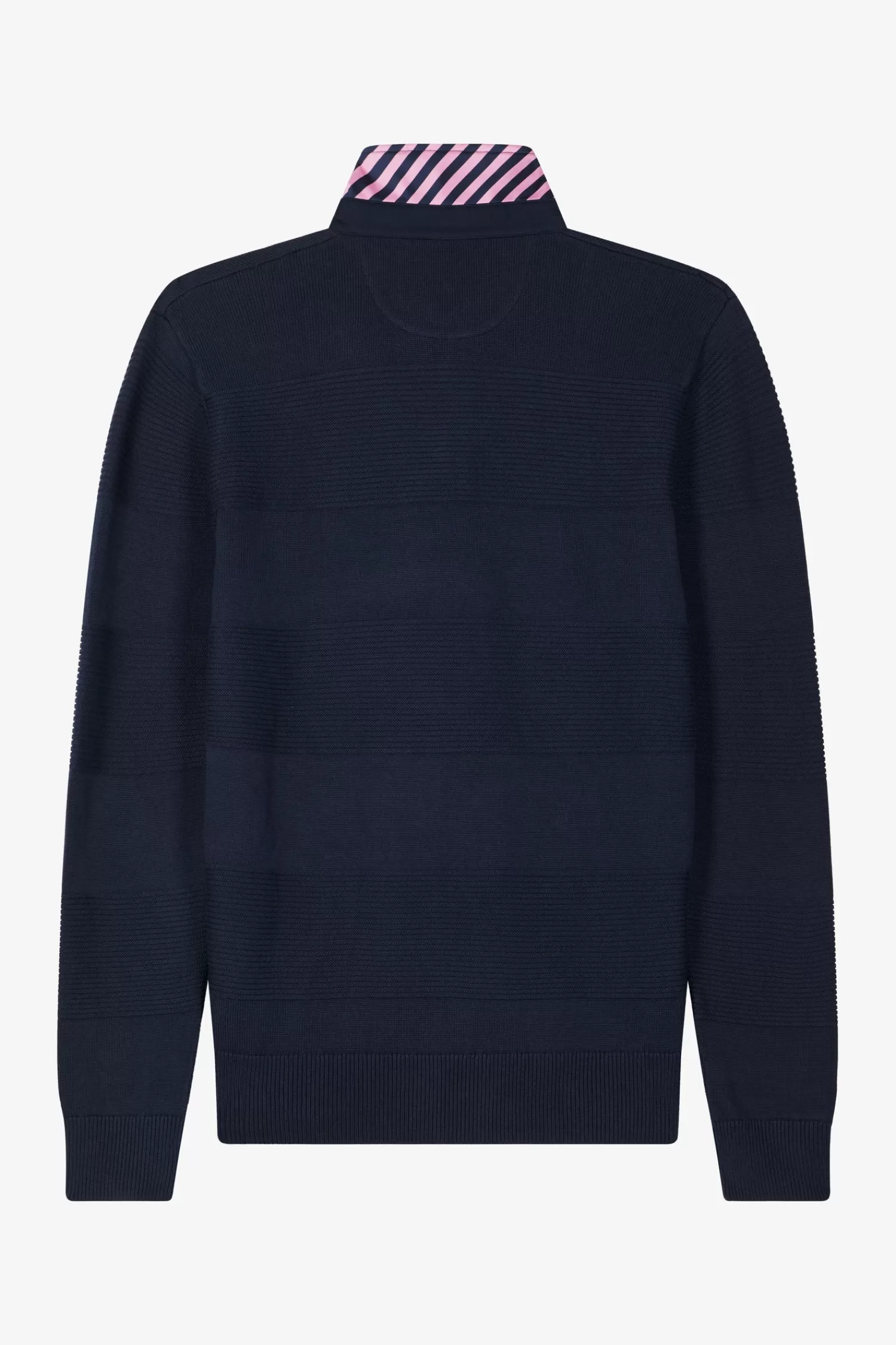 Face cool days in style in this cotton polo-neck jumper, featuring a white button placket underlay. Designed for comfort and style, this men’s sweater is crafted from quality cotton knitted in varied reliefs, inspired by the striping of rugby jerseys.