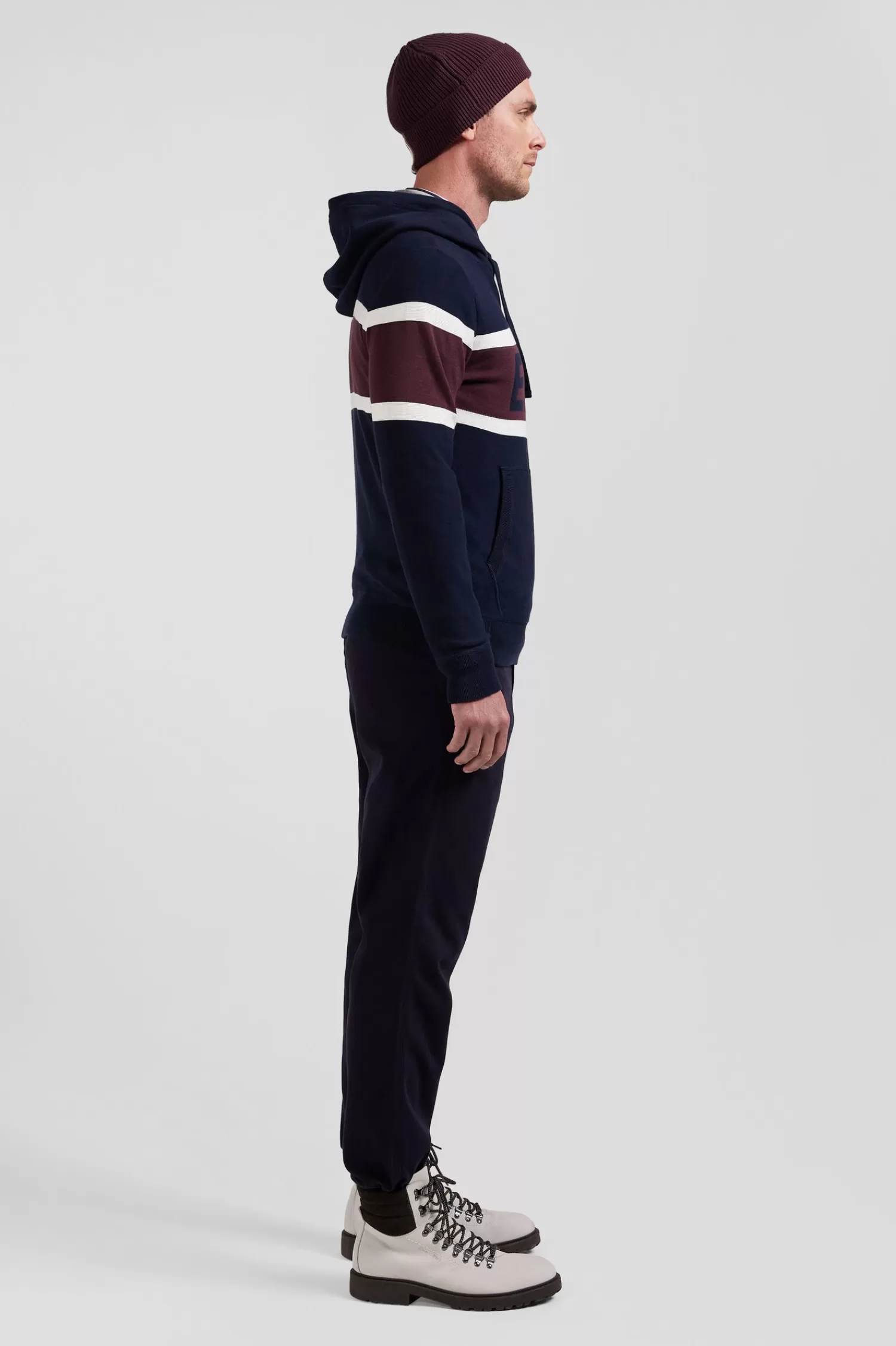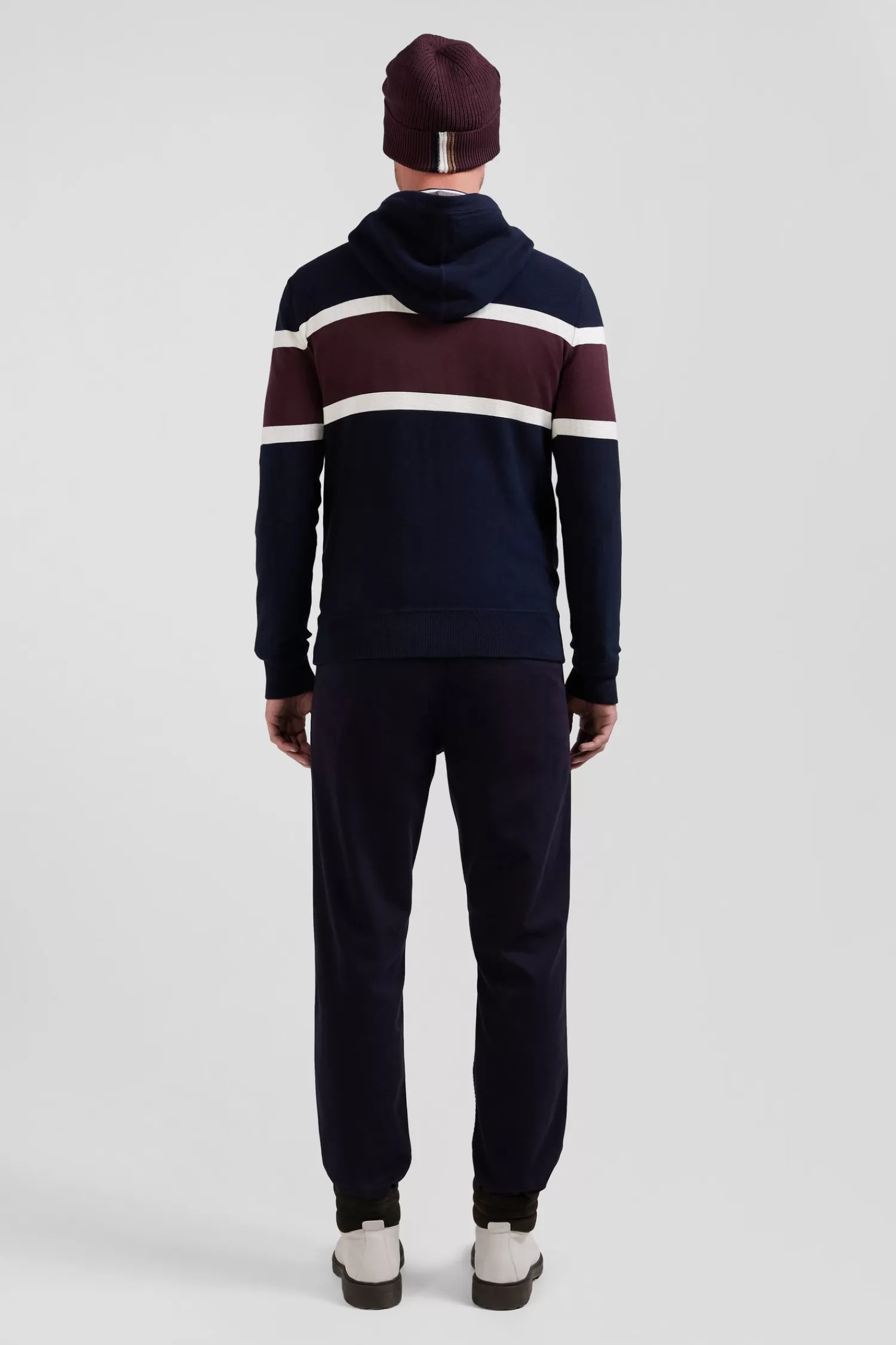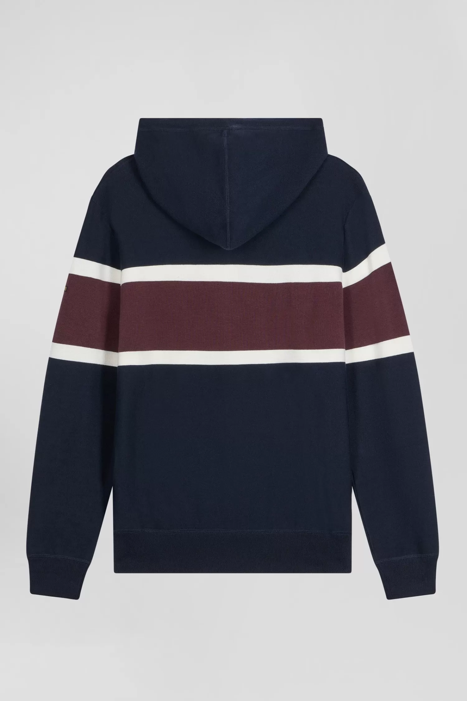 Elevate your casual outfits with this hooded jumper, which skillfully blends contrasting knit patterns for a dynamic visual effect. A jacquard band on the chest highlights the EP 10 logo. Inspired by sweatshirts, it features ribbed finishes, an integrated hood, jersey body, and reverse rugby shirt half-moon, merging style and comfort perfectly.