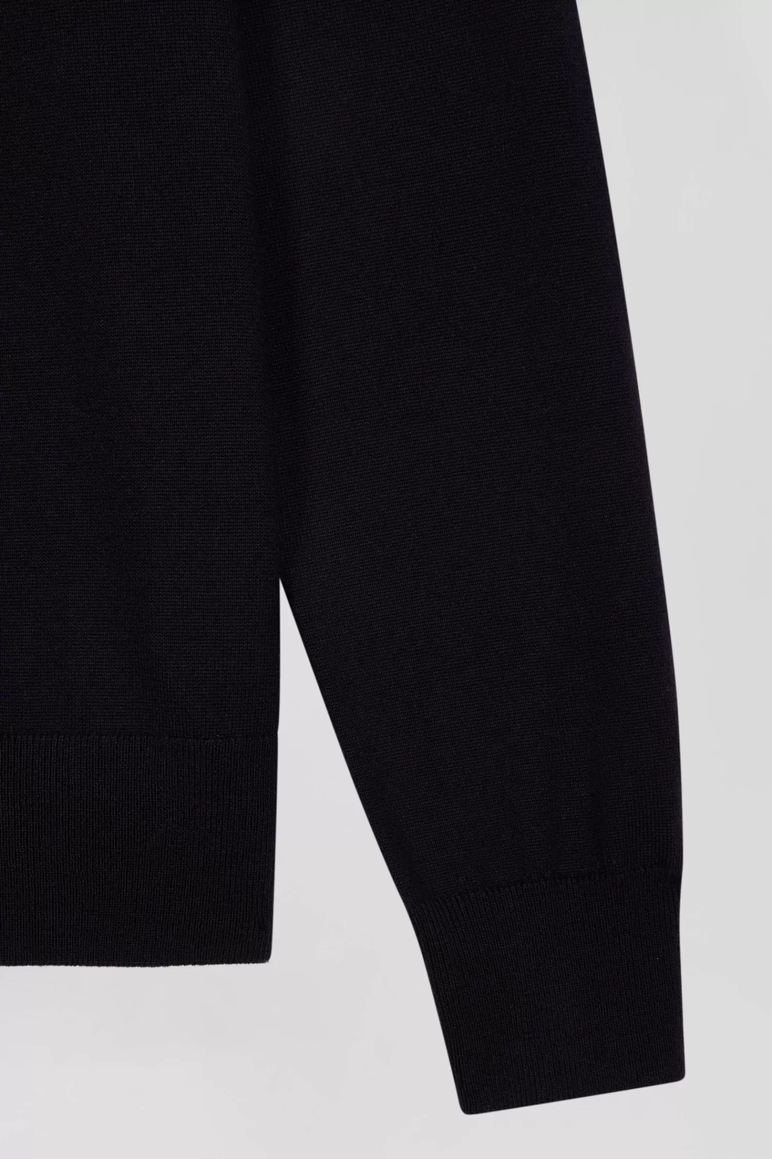 This luxurious merino wool jumper, a noble natural fiber with many properties, is highlighted by jersey knitting for a clean and elegant style. Featuring a V-neck for a classic silhouette, this plain jumper will quickly become a staple in your vestiaire.