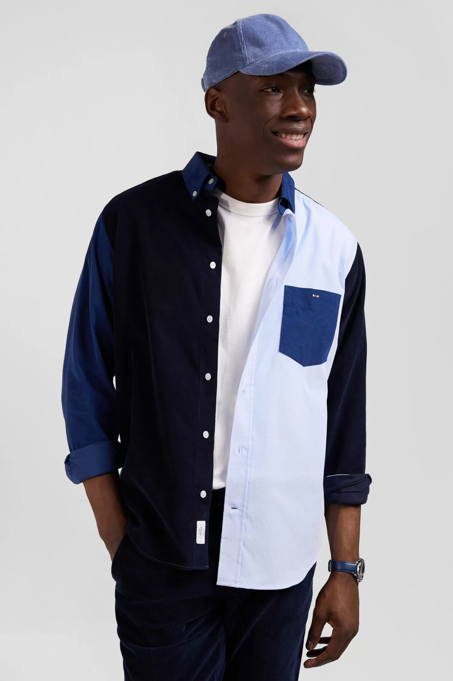 The timeless men’s shirt is now crafted in a comfortable Regular fit. For a neat appearance and graphic color and material plays, this tricolor men’s shirt features a velvet patched pocket. This model is offered in 3 trendy colors.