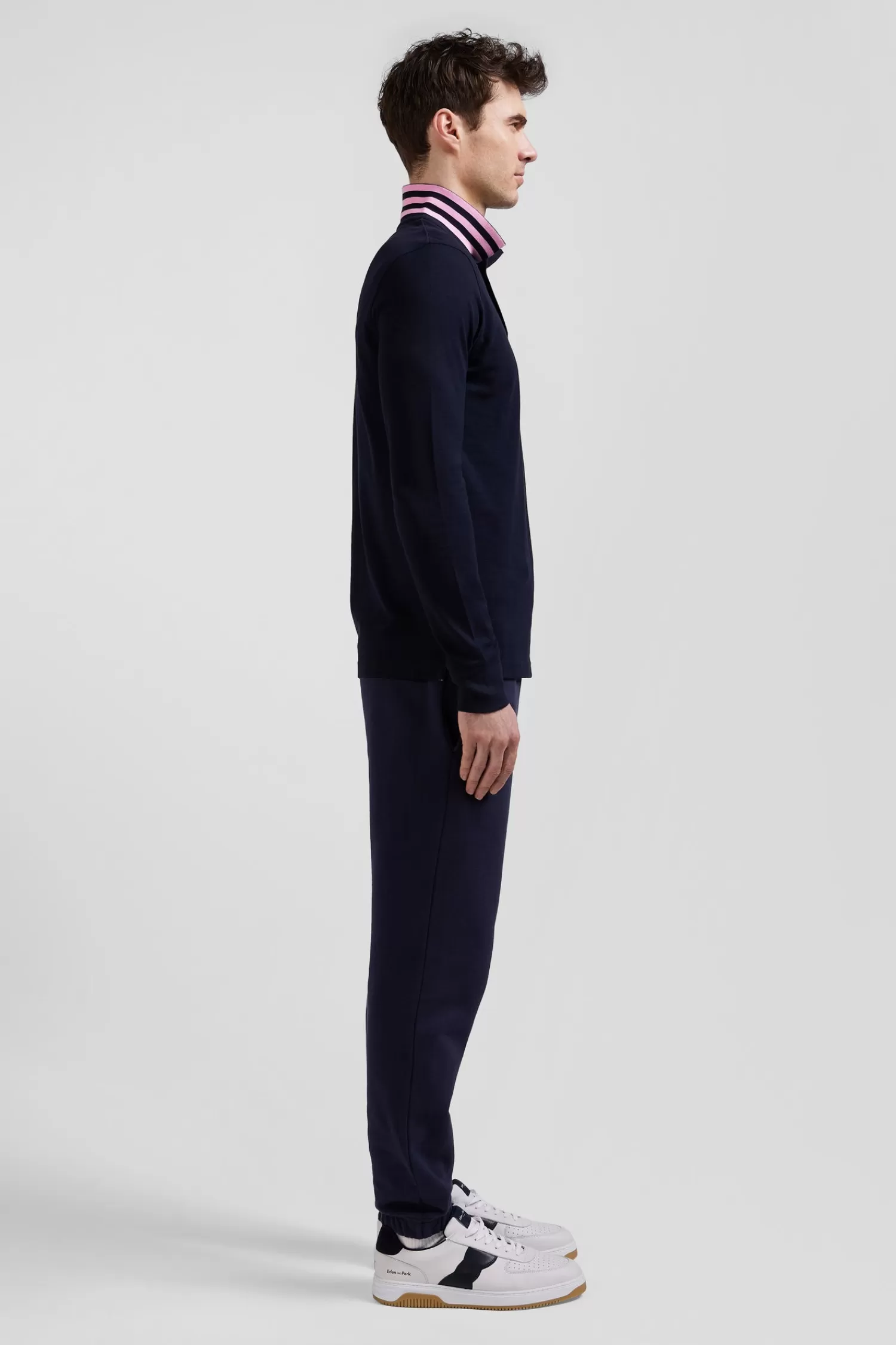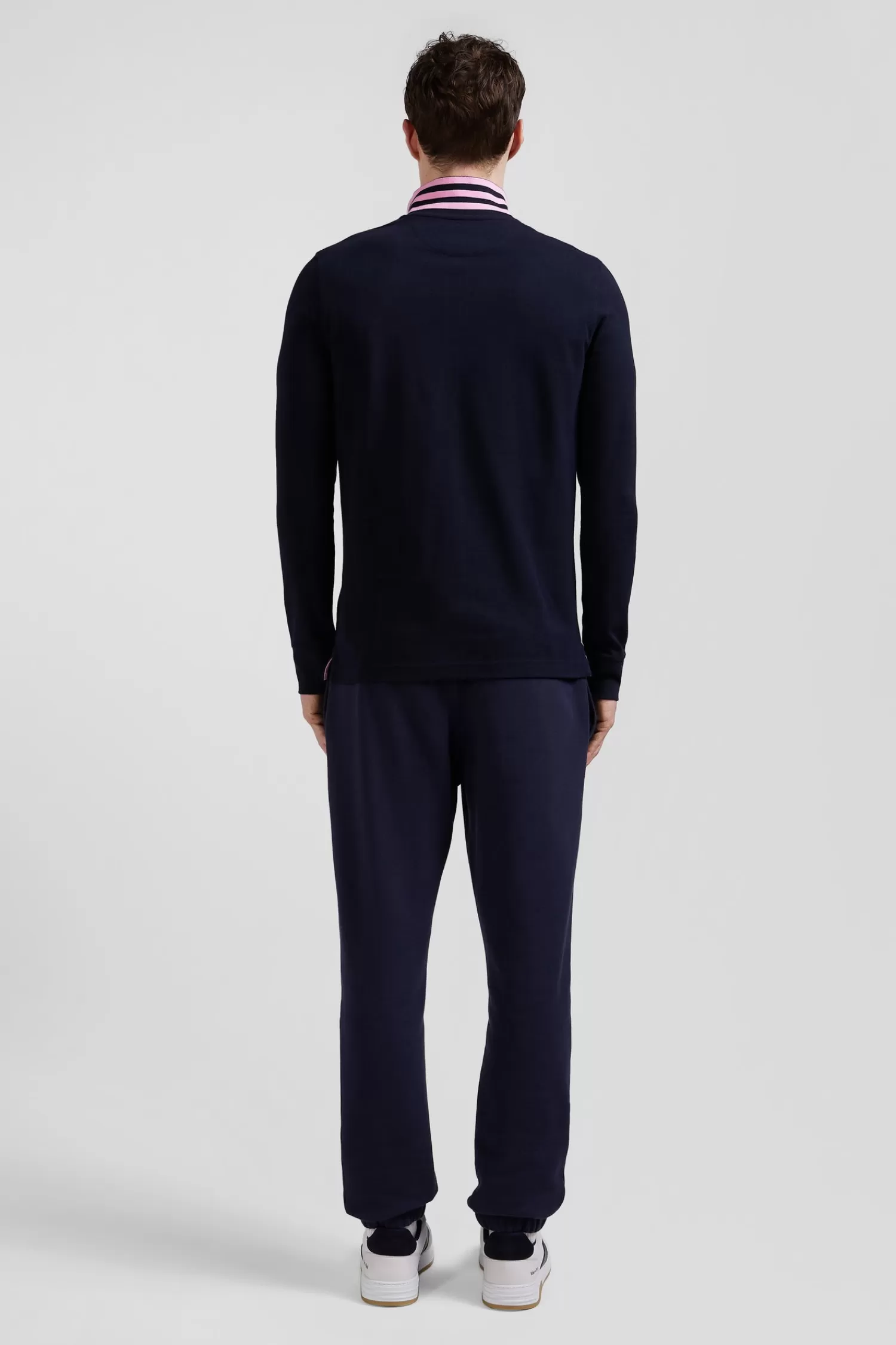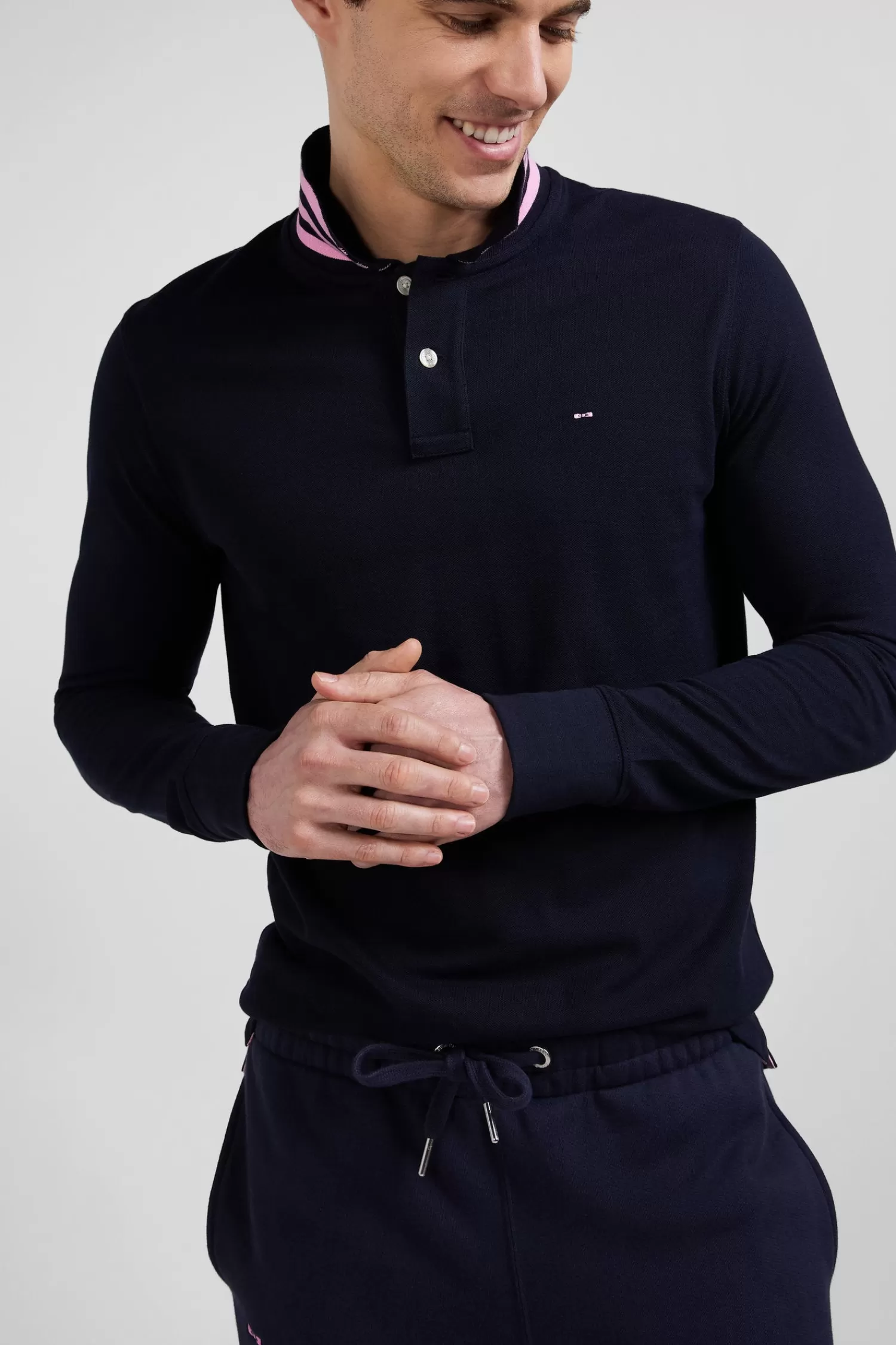 Eden Park Regular navy long-sleeved cotton piqué polo shirt< Polos