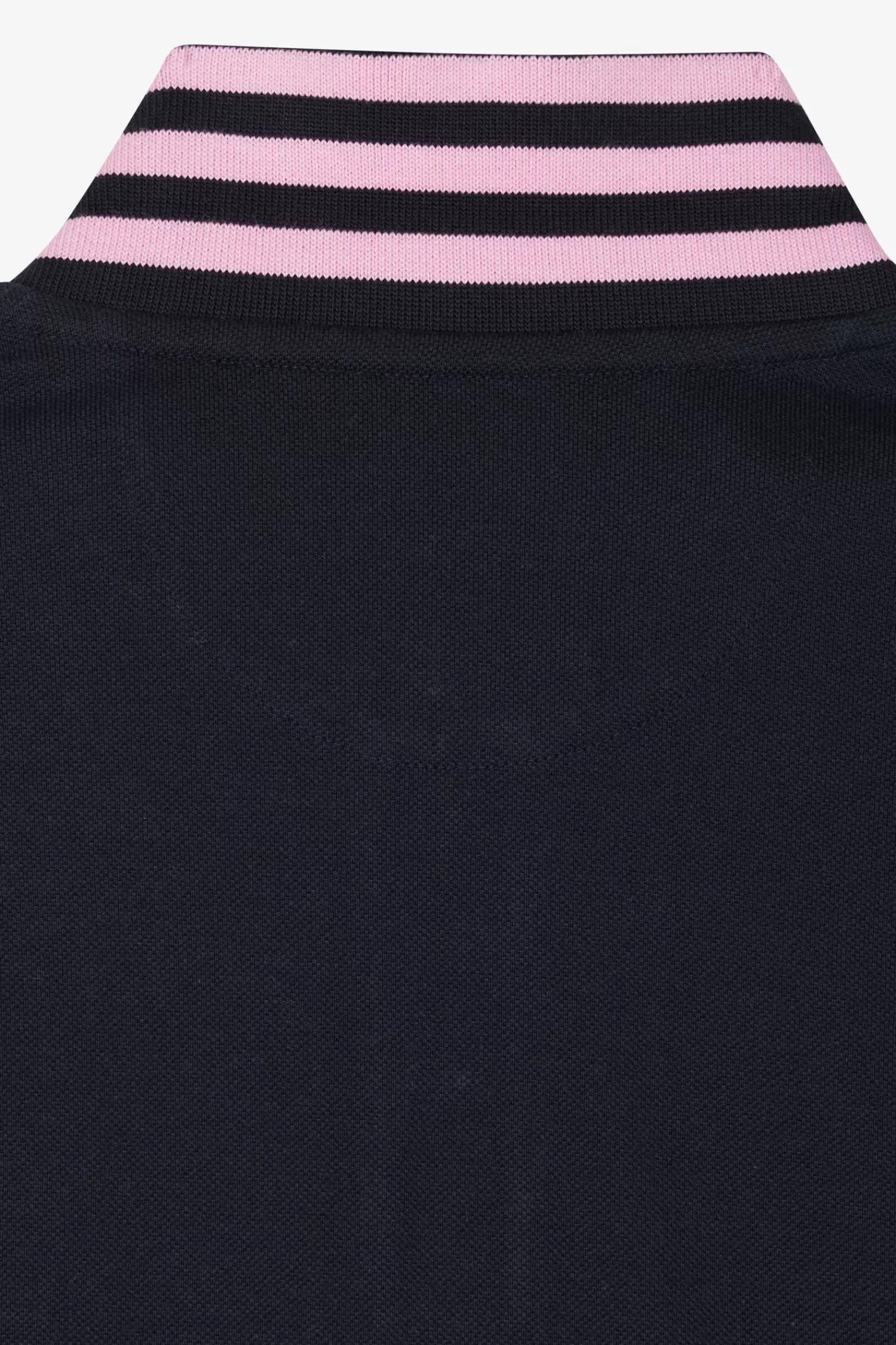 This men’s long-sleeved polo blends comfort and sophistication. Its breathable cotton pique ensures optimal comfort. The classic collar reveals navy and pink striped details, subtly highlighted when flipped. Its rugby buttons and bow tie logo embroidery carry the unmistakable mark of our Maison and its craftsmanship.