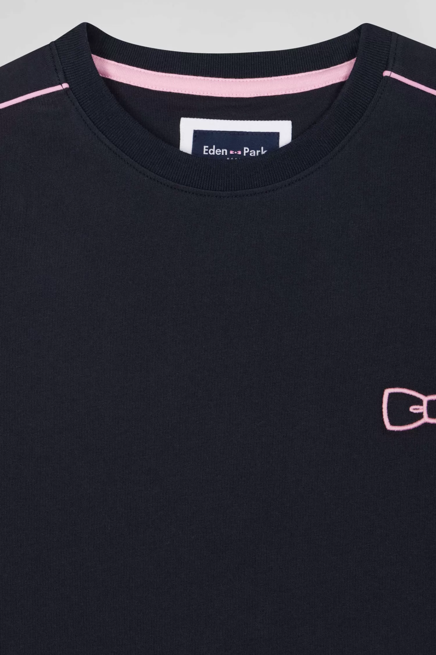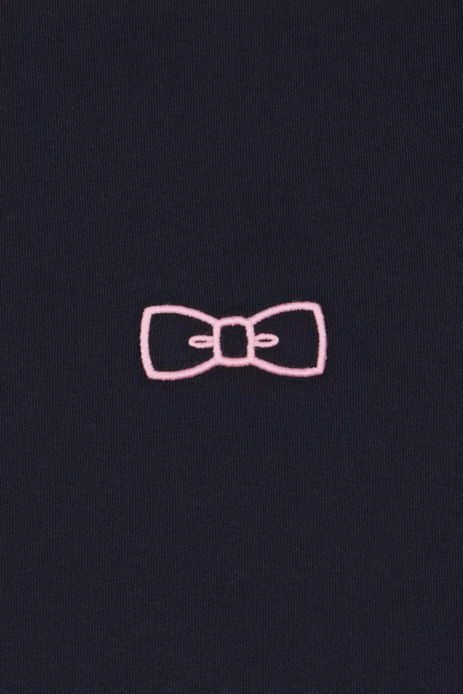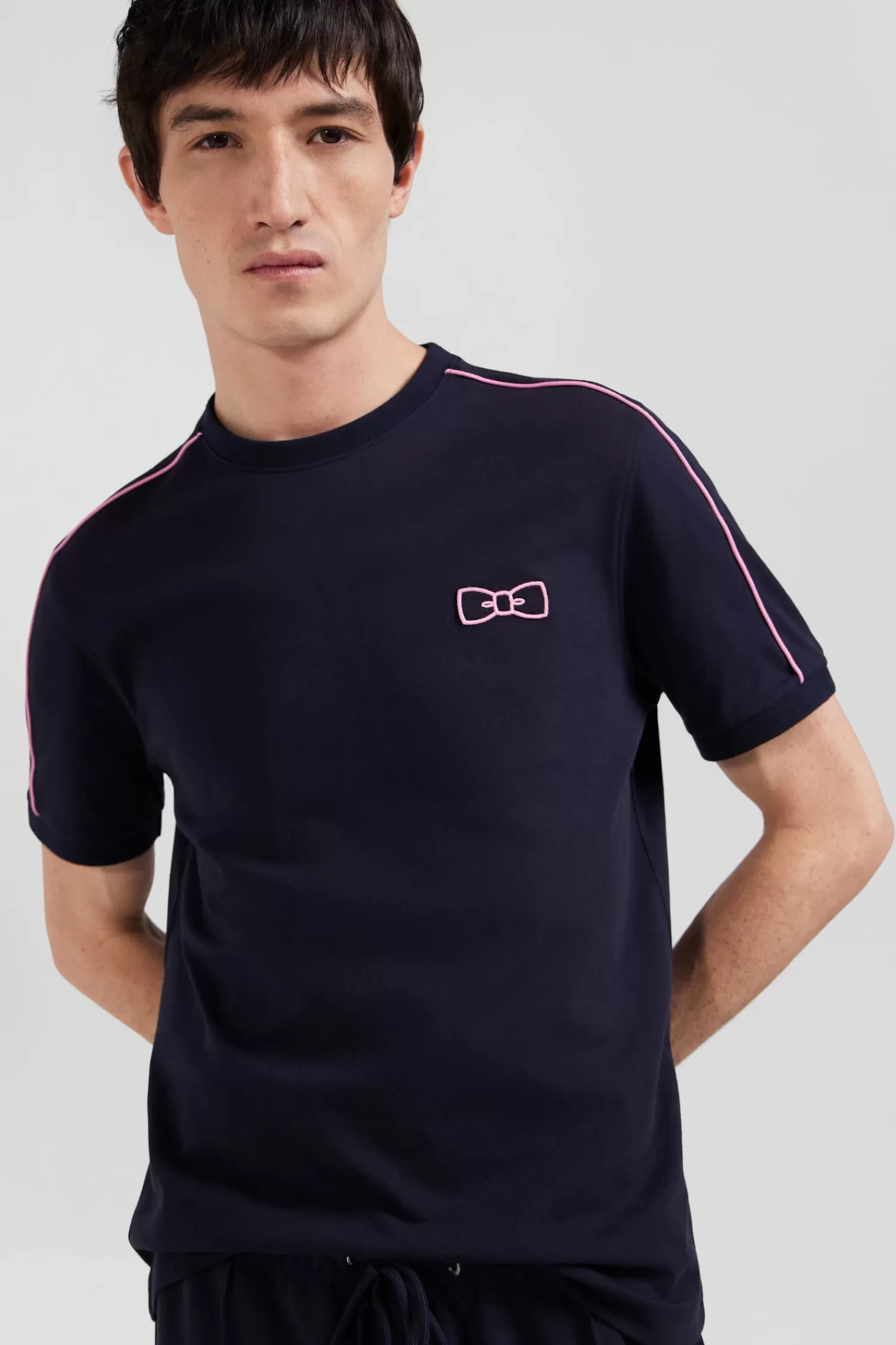 This navy blue cotton T-shirt in a straight fit is distinguished by its carefully crafted contrasting details. Piping highlights the shoulder line while a volumetric bow tie logo emblem marks this model.
