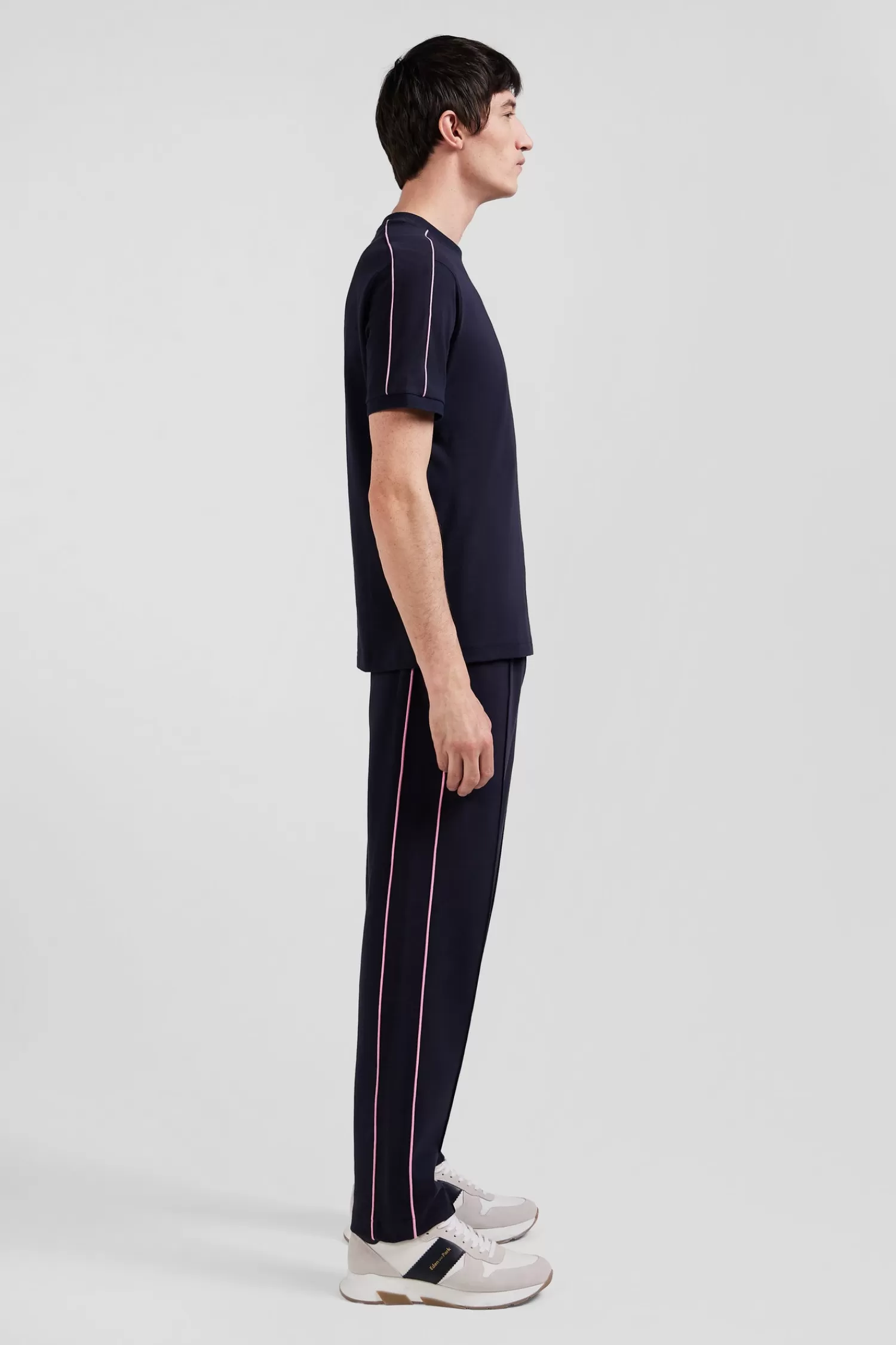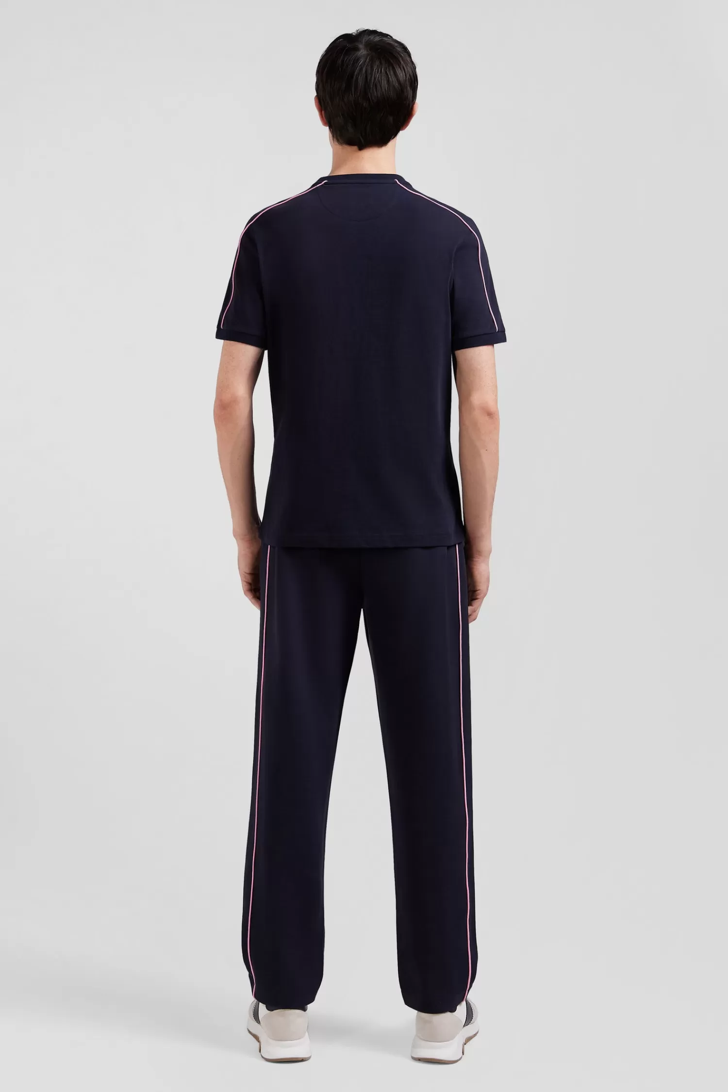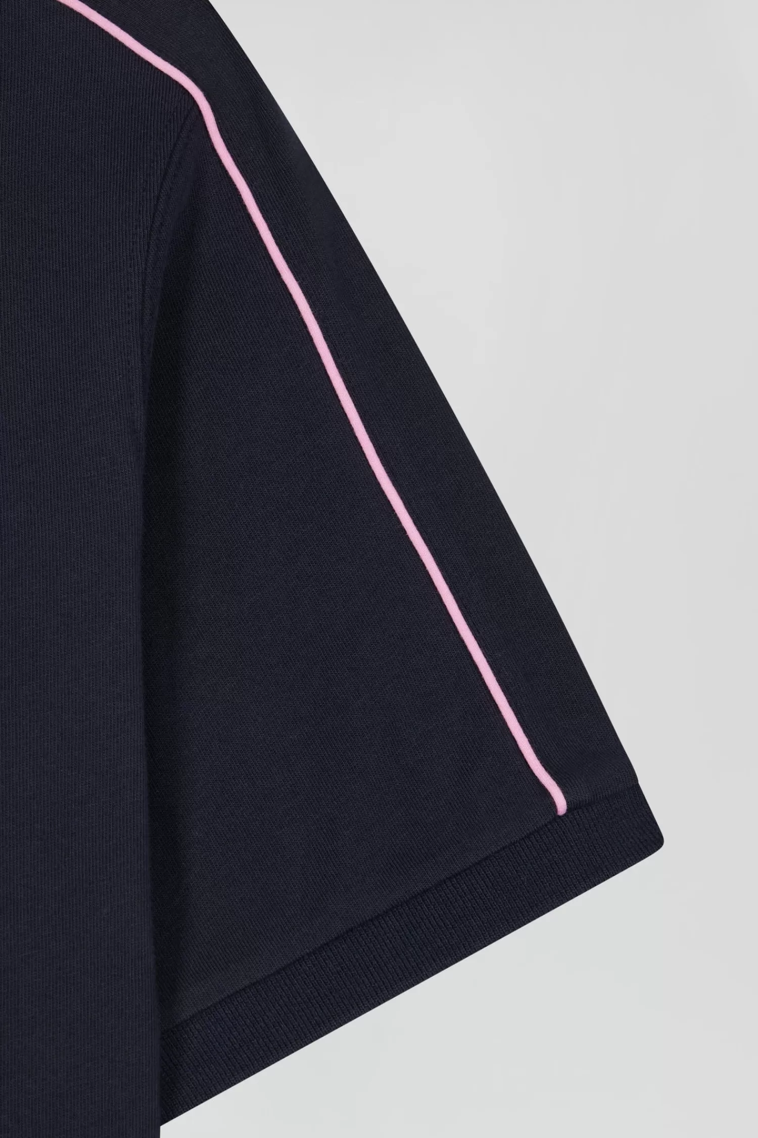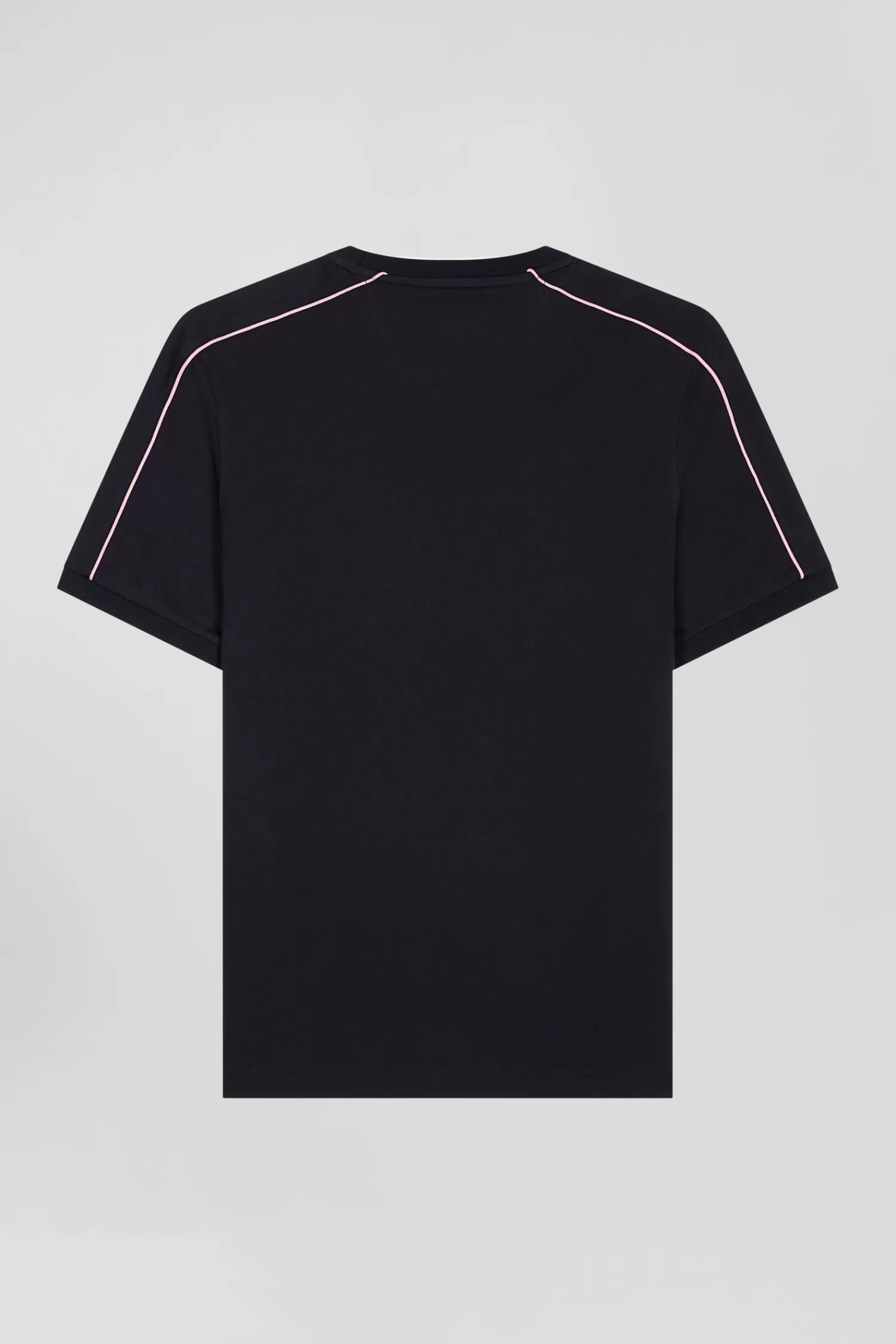 This navy blue cotton T-shirt in a straight fit is distinguished by its carefully crafted contrasting details. Piping highlights the shoulder line while a volumetric bow tie logo emblem marks this model.