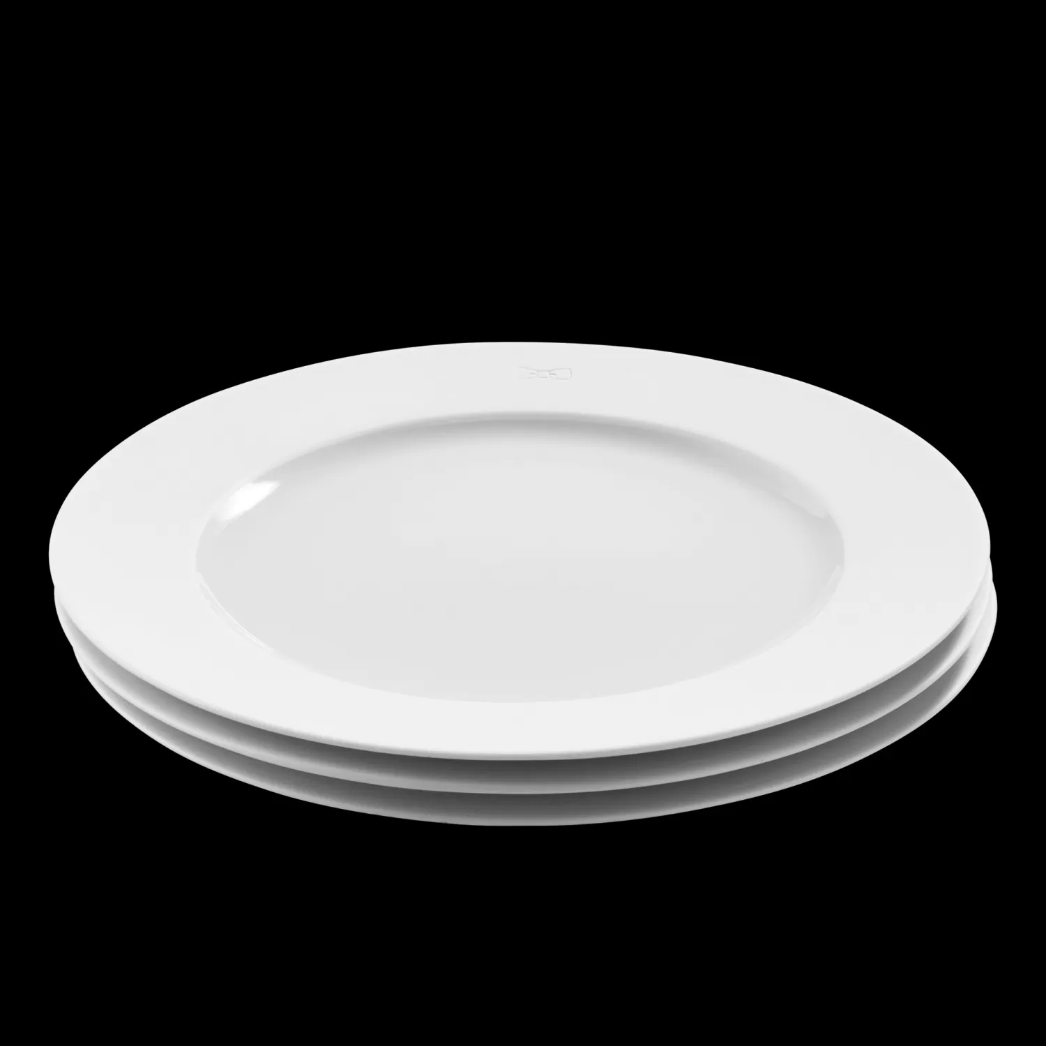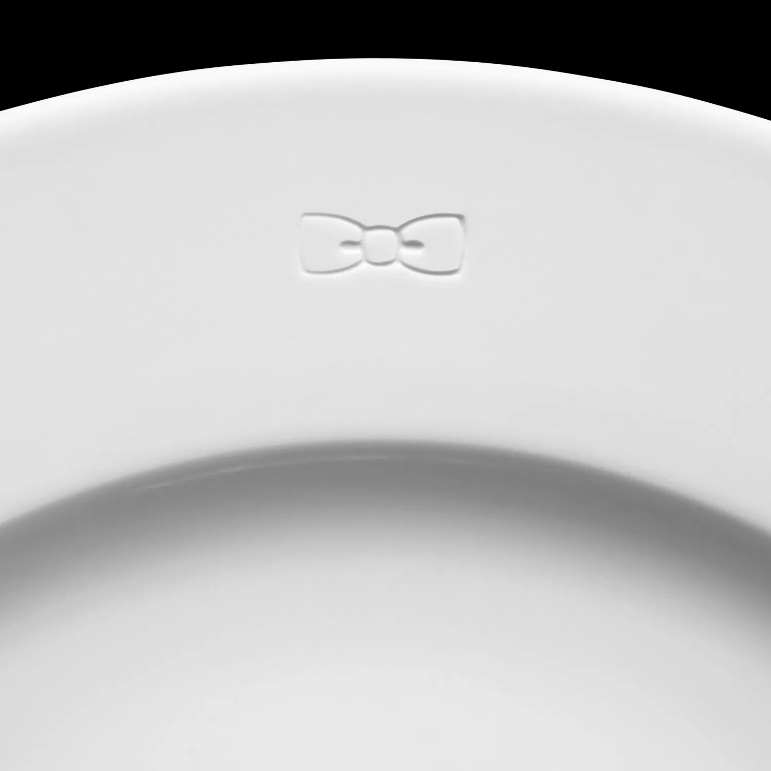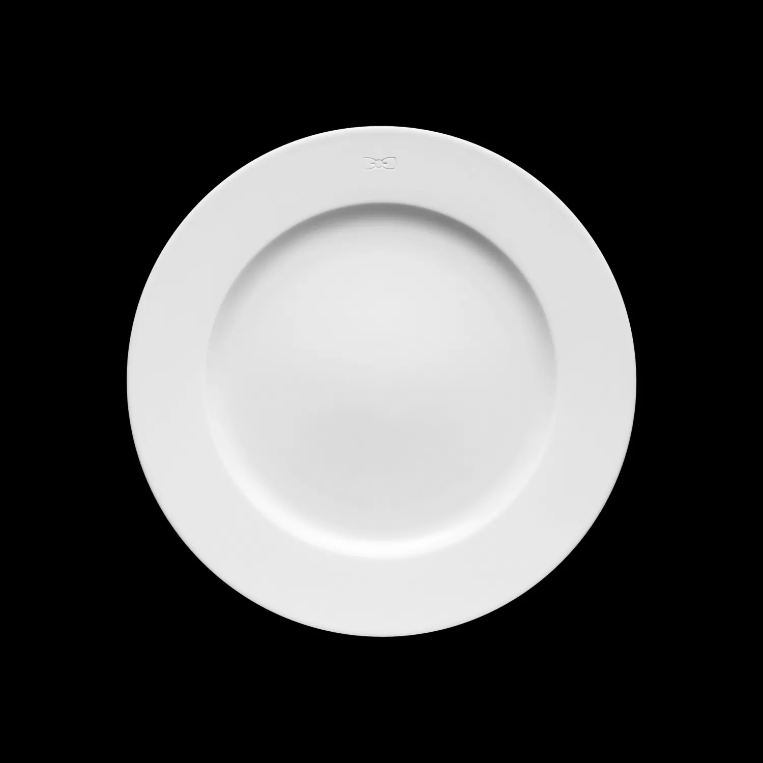 Get ready to set an elegant table with this round white plate made of real Limoges porcelain. A small tone-on-tone engraved bow tie logo decorates the French production. Streamlined and refined, its timeless silhouette readily fits into any kind of table decor.