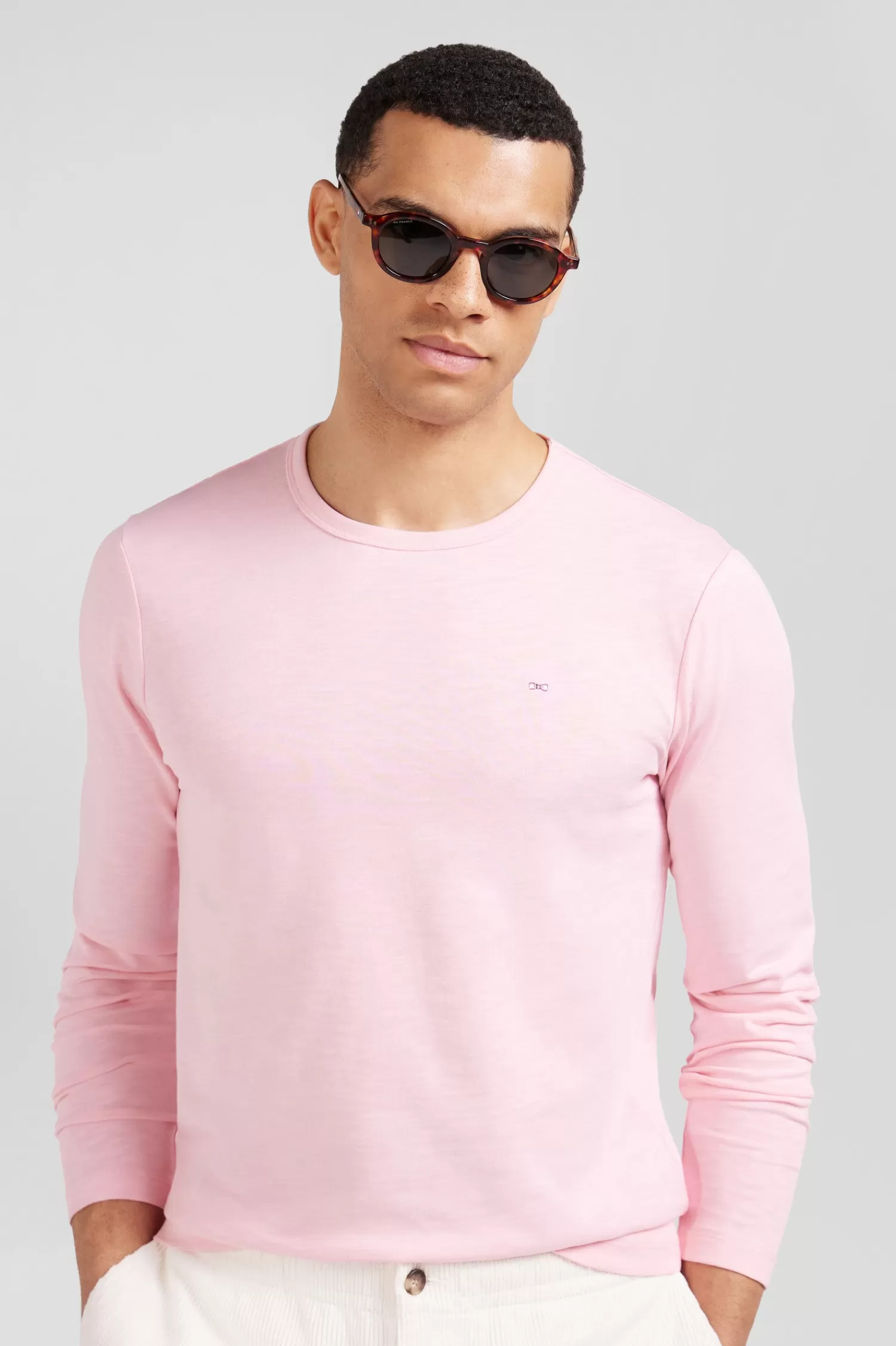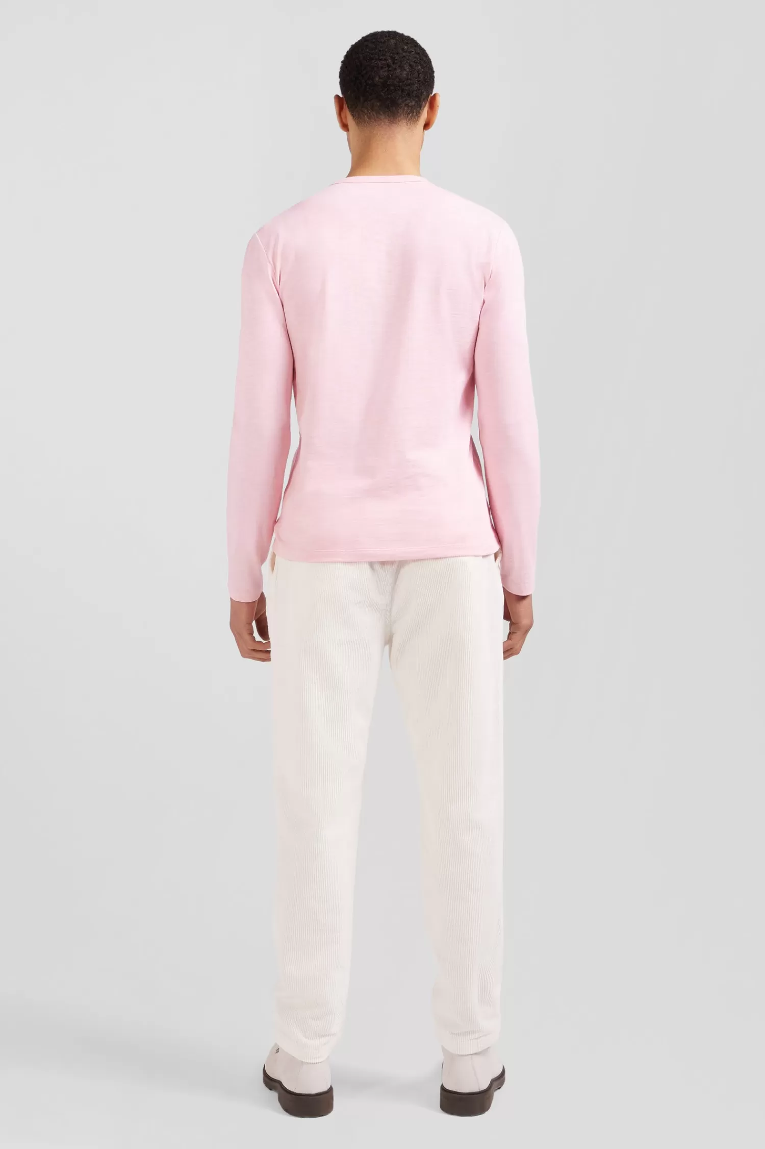 Offered in a range of pastel or timeless hues, this long-sleeved men’s T-shirt will quickly become a mid-season vestiaire staple. For added comfort, we’ve chosen a softly heathered cotton.